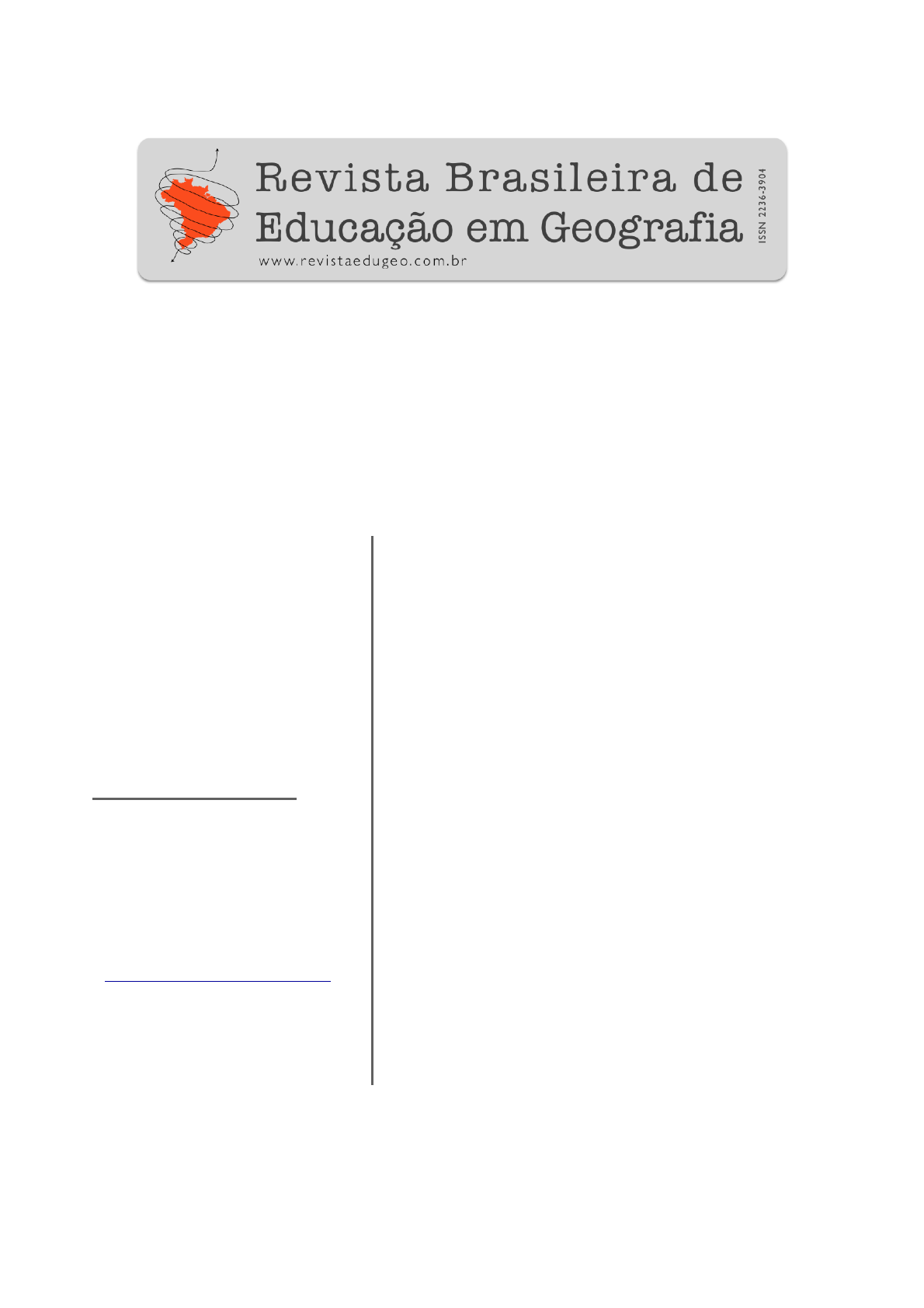 <p>GEOGRAFIA ESCOLAR, EDUCAÇÃO GEOGRÁFICA,</p><p>AUTONOMIA DOCENTE E QUESTÃO CONCEITUAL:</p><p>tecendo ligações</p><p>Revista Brasileira de Educação em Geografia, Campinas, v. 11, n. 21, p. 05-27, jan./dez., 2021</p><p>R E S U M O</p><p>Este artigo apresenta algumas reflexões teóricas acerca do ensino</p><p>de Geografia na educação básica, no intuito de problematizar a</p><p>Geografia escolar enquanto leitura espacial de mundo. Entende-</p><p>se que sua constituição requer que a atuação do professor e dos</p><p>alunos, nos processos de ensino e aprendizagem, ocorra segundo</p><p>as perspectivas da educação geográfica, cuja efetivação atrela-se</p><p>à construção de discursos e de um vocabulário geográficos</p><p>possíveis somente via apropriação conceitual. Identificou-se a</p><p>autonomia docente como o meio, o elemento propiciador das</p><p>possíveis ligações tecidas entre Geografia escolar, educação</p><p>geográfica e questão conceitual, e propôs-se um desenho para tal</p><p>tessitura. Espera-se que este texto contribua para a atuação</p><p>docente geográfica autônoma e autoral e para a assunção do</p><p>professor de Geografia enquanto sujeito epistêmico.</p><p>P A L A V R A S - C H A V E</p><p>Geografia escolar, Atuação docente, Professor, Autonomia</p><p>docente, Conceitos.</p><p>Edimar Eder Batista</p><p>edimarbat@gmail.com</p><p>Doutor em Geografia pela Universidade</p><p>Estadual de Londrina (UEL), Professor do</p><p>Quadro Próprio do Magistério da Secretaria</p><p>da Educação e do Esporte do estado do</p><p>Paraná.</p><p>ORCID: https://orcid.org/0000-0002-7806-873X</p><p>EDER BATISTA, E. . GEOGRAFIA ESCOLAR, EDUCAÇÃO GEOGRÁFICA, AUTONOMIA DOCENTE E QUESTÃO CONCEITUAL: tecendo ligações. Revista Brasileira de Educação em Geografia, [S. l.], v. 11, n. 21,</p><p>p. 05–27, 2021. DOI: 10.46789/edugeo.v11i21.1035. Disponível em: https://www.revistaedugeo.com.br/ojs/index.php/revistaedugeo/article/view/1035. Acesso em: 18 ago. 2021.</p><p>https://orcid.org/0000-0002-7806-873X</p><p>https://orcid.org/0000-0002-7806-873X</p><p>Geografia escolar, educação geográfica, autonomia docente e questão conceitual…</p><p>S C H O O L G E O G R A P H Y, G E O G R A P H I C E D U C A T I O N ,</p><p>T E A C H I N G A U T O N O M Y A N D C O N C E P T U A L I S S U E :</p><p>m a k i n g c o n n e c t i o n s</p><p>A B S T R A C T</p><p>This article presents some theoretical reflections about the teaching of Geography in basic</p><p>education, in order to discuss school Geography as a spatial reading of the world. It is</p><p>understood that its constitution requires that the performance of the teacher and the</p><p>students, in the teaching and learning processes, take place according to the perspectives of</p><p>geographic education, whose implementation is linked to the construction of speeches and</p><p>some geographical vocabulary possible only via conceptual appropriation. Teaching</p><p>autonomy was identified as the means, the element that facilitates the potential connections</p><p>made between school geography, geographic education and conceptual issues, and a</p><p>design was proposed for such organization. It is expected that this text will contribute to an</p><p>autonomous and authorial geographical teaching performance and to the assumption of the</p><p>Geography teacher as an epistemic subject.</p><p>K E Y W O R D S</p><p>School geography, Teaching performance, Teacher, Teaching autonomy, Concepts.</p><p>Introdução</p><p>A Geografia da universidade, do ensino superior, é distinta da Geografia da</p><p>escola, da educação básica. O que as distingue? Se atribuirmos à primeira o status de</p><p>conhecimento científico e institucionalizado, quais as implicações disso para a segunda?</p><p>Quais as relações entre o conhecimento científico geográfico e o conhecimento escolar</p><p>geográfico? Como definir ou delimitar a Geografia da educação básica? Tais</p><p>questionamentos são pertinentes a algumas das ideias e proposições apresentadas neste</p><p>texto, que pretende discorrer acerca das possíveis relações e ligações entre Geografia</p><p>escolar, educação geográfica, autonomia docente e a abordagem conceitual geográfica</p><p>na educação básica, no âmbito da atuação do professor.</p><p>A noção de Geografia escolar possibilita a interpretação dessa área do</p><p>conhecimento em suas especificidades no âmbito da educação básica. Concebendo-a</p><p>enquanto uma leitura espacial de mundo, entende-se que sua constituição como tal</p><p>requer que a atuação do professor e dos alunos nos processos de ensino e aprendizagem</p><p>ocorra segundo as perspectivas da educação geográfica, compreendida como</p><p>viabilizadora de formas de pensar espaciais possíveis via construção conceitual oriunda</p><p>de atuação profissional caracterizada pela autonomia do professor.</p><p>Revista Brasileira de Educação em Geografia, Campinas, v. 10, n. 20, p. 05-27, jan./dez., 2020 � 6</p><p>Batista, E.E.</p><p>Este artigo consiste numa reelaboração de parte do texto da tese de doutorado do</p><p>autor . Seu foco é construir considerações teóricas que fundamentem a constatação – 1</p><p>resultante dessa pesquisa – de que a autonomia docente possibilita a articulação entre</p><p>Geografia escolar, educação geográfica e questão conceitual, no âmbito da atuação ou</p><p>do trabalho do professor. Tal postura tem como objetivo contribuir para que a Geografia</p><p>escolar possa se constituir em uma forma de leitura espacial de mundo, tanto para alunos</p><p>quanto para professores.</p><p>O texto está organizado em três partes. A primeira contempla a Geografia escolar</p><p>enquanto leitura espacial de mundo, a segunda discorre sobre a atuação docente e a</p><p>educação geográfica, e a última aborda a autonomia intelectual docente e discente e a</p><p>questão concei