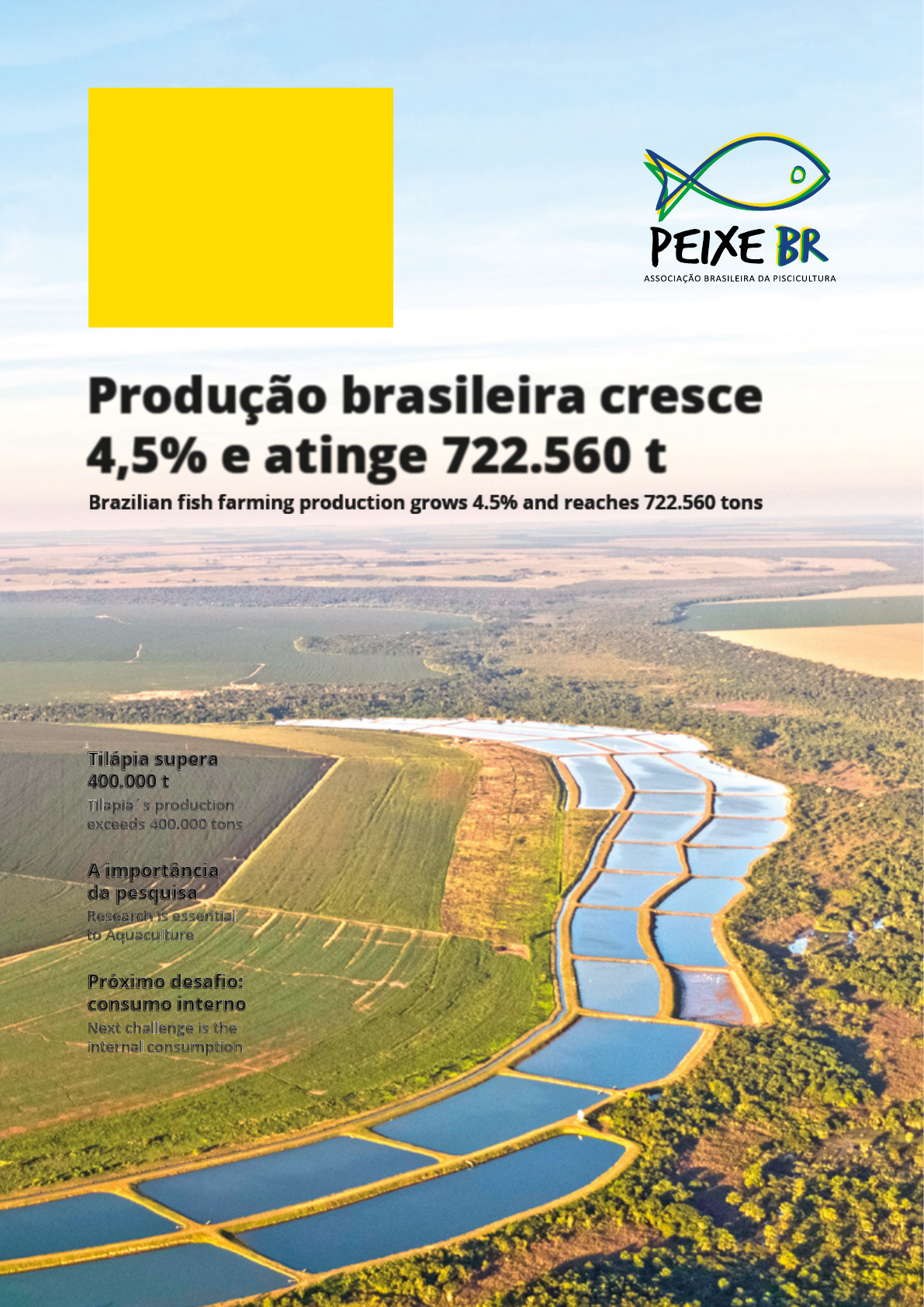 <p>1</p><p>ANUÁRIO PEIXE BR DA PISCICULTURA 2019</p><p>ANUÁRIO</p><p>PeixeBR da</p><p>Piscicultura</p><p>2019</p><p>Brazilian fish farming production grows 4.5% and reaches 722.560 tons</p><p>Produção brasileira cresce</p><p>4,5% e atinge 722.560 t</p><p>Tilapia´s production</p><p>exceeds 400.000 tons</p><p>Tilápia supera</p><p>400.000 t</p><p>Next challenge is the</p><p>internal consumption</p><p>Próximo desafio:</p><p>consumo interno</p><p>Research is essential</p><p>to Aquaculture</p><p>A importância</p><p>da pesquisa</p><p>2</p><p>ANUÁRIO PEIXE BR DA PISCICULTURA 2019</p><p>ESTA É A PEIXE BR, UMA ENTIDADE DE</p><p>ÂMBITO NACIONAL QUE DEFENDE E</p><p>VALORIZA A PISCICULTURA DO BRASIL</p><p>PISCICULTURA</p><p>BRASILEIRA,</p><p>UMA ATIVIDADE</p><p>EM CONSTANTE</p><p>EXPANSÃO</p><p>DEFESA DA</p><p>ATIVIDADE</p><p>FOMENTO DA</p><p>PISCICULTURA</p><p>PRESENÇA NOS</p><p>FÓRUNS SETORIAIS</p><p>FORTE E</p><p>REPRESENTATIVA</p><p>PRODUÇÃO</p><p>E CONSUMO</p><p>RECONHECIMENTO</p><p>peixebroficialpeixebroficialpeixebroficialpeixebr.com.br</p><p>3</p><p>ANUÁRIO PEIXE BR DA PISCICULTURA 2019</p><p>COORDENAÇÃO GERAL</p><p>Francisco Medeiros</p><p>JORNALISTA RESPONSÁVEL</p><p>Altair Albuquerque (MTb 17.291)</p><p>PRODUÇÃO EDITORIAL E EDIÇÃO</p><p>Texto Comunicação Corporativa</p><p>www.textoassessoria.com.br</p><p>REDAÇÃO</p><p>Dâmaris Dellova</p><p>Diogo França</p><p>Guilherme Donati</p><p>Gustavo Cezário</p><p>Henrique Marini</p><p>Juliana Villa Real</p><p>Juliete Lino</p><p>Karen Priebsch</p><p>Livia Albuquerque</p><p>Monique Oliveira</p><p>Rodolfo Vieira</p><p>PROJETO GRÁFICO E DESIGN</p><p>Rodrigo Bonaldo</p><p>DEPARTAMENTO COMERCIAL</p><p>Eder Benício</p><p>ADMINISTRAÇÃO</p><p>Kelly Borges</p><p>Sandra Albuquerque</p><p>FOTOS</p><p>Shutterstock, Bom Futuro, Empresas</p><p>Associadas, Entidades de Classe e Texto</p><p>www.peixebr.com.br</p><p>comunicacao@ peixebr.com.br</p><p>facebook.com/peixebroficial</p><p>instagram.com/peixebroficial</p><p>twitter.com/peixebroficial</p><p>Rua Claudio Soares, 72 - cj. 417</p><p>Pinheiros - São Paulo/SP</p><p>CEP 05422-030</p><p>Anuário Brasileiro da</p><p>Piscicultura PEIXE BR 2019</p><p>Veículo oficial da Associação</p><p>Brasileira da Piscicultura</p><p>EXPEDIENTE</p><p>3</p><p>ANUÁRIO PEIXE BR DA PISCICULTURA 2019</p><p>4</p><p>ANUÁRIO PEIXE BR DA PISCICULTURA 2019EDITORIAL</p><p>Francisco Medeiros</p><p>Presidente Executivo da</p><p>Associação Brasileira da</p><p>Piscicultura (PEIXE BR)</p><p>A Secretaria de Aquicultura e Pesca (SAP) no âmbito do Ministério da Agricultura, Pecuária e Abas-</p><p>tecimento é uma excelente notícia para iniciar bem o ano, avançar nas conquistas e superar gargalos</p><p>importantes da cadeia da produção de peixes de cultivo no Brasil.</p><p>Entre os pontos positivos da atividade, destaco o contínuo crescimento da produção, que supera</p><p>722.000 toneladas, a liberação da produção de Tilápia em tanques-rede em Tocantins e Mato Grosso,</p><p>a chegada do Pangasius em alguns estados e a crescente profissionalização do setor.</p><p>Além disso, estamos crescendo como cadeia produtiva, conquistando assentos em importantes fó-</p><p>runs e câmaras do agronegócio. Somos muito respeitados pelas demais atividades, instituições e</p><p>órgãos governamentais.</p><p>A PEIXE BR também está cada vez mais presente, defendendo a atividade, cobrando as autoridades e</p><p>fortalecendo a imagem da Piscicultura brasileira.</p><p>Entre os gargalos, alguns se sobressaem. A regulamentação ambiental é essencial para o contínuo avan-</p><p>ço da atividade. Estamos avançando nesse campo, mas é preciso evoluir mais, ter legislações eficientes e</p><p>desburocratizar o passo a passo. Mesmo com o crescimento da oferta, ano após ano, temos muito o que</p><p>fazer e incrementar a demanda de peixes de cultivo no Brasil, uma vez que a capacidade de produção é</p><p>muito maior que o consumo. Está aí uma ação importante a ser feita em 2019.</p><p>A questão de outorga de águas da União é outro desafio. São mais de 2.800 processos para análise da</p><p>SAP. Juntos, esses pedidos são suficientes para multiplicar por quatro a atual produção de peixes de</p><p>cultivo no Brasil.</p><p>A Piscicultura brasileira é um gigante adormecido. O potencial é imenso. Temos desafios, mas inteli-</p><p>gência, união e perseverança para superá-los. O importante é que trabalhamos para aumentar a oferta</p><p>de alimentos de qualidade, saudáveis, que ajudam a nutrir a crescente população mundial. O mundo</p><p>pode contar com a produção de peixes de cultivo do Brasil.</p><p>MUITAS VITÓRIAS,</p><p>DESAFIOS A SUPERAR</p><p>5</p><p>ANUÁRIO PEIXE BR DA PISCICULTURA 2019 EDITORIAL</p><p>Francisco Medeiros</p><p>CEO of the Brazilian Fish</p><p>Farming Association</p><p>(PEIXE BR)</p><p>The Secretary of Aquaculture and Fisheries (Secretaria de Aquicultura e Pesca - SAP), under the Mi-</p><p>nistry of Agriculture, Livestock, and Supply, will contribute to further advance of fish farming in Bra-</p><p>zil, tackling major bottlenecks that affect the production chain.</p><p>Fish farming in Brazil has been steadily growing during the last few years, and the current production</p><p>exceeds 722 thousand tons. Tilapia production in net cages has been approved in the States of Tocan-</p><p>tins and Mato Grosso, Pangasius is now being farmed in some of the Brazilian States, and the general</p><p>level of professionalism of the industry has grown significantly.</p><p>Furthermore, it is worth mentioning that our production chain is now being recognized and respected</p><p>by institutions and governmental agencies as an important player, being heard in major forums and</p><p>agribusiness chambers.</p><p>PEIXE BR has been very active, working close to the authorities, advocating, promoting, and streng-</p><p>thening the image of Brazilian fish farming.</p><p>However, there are still som
