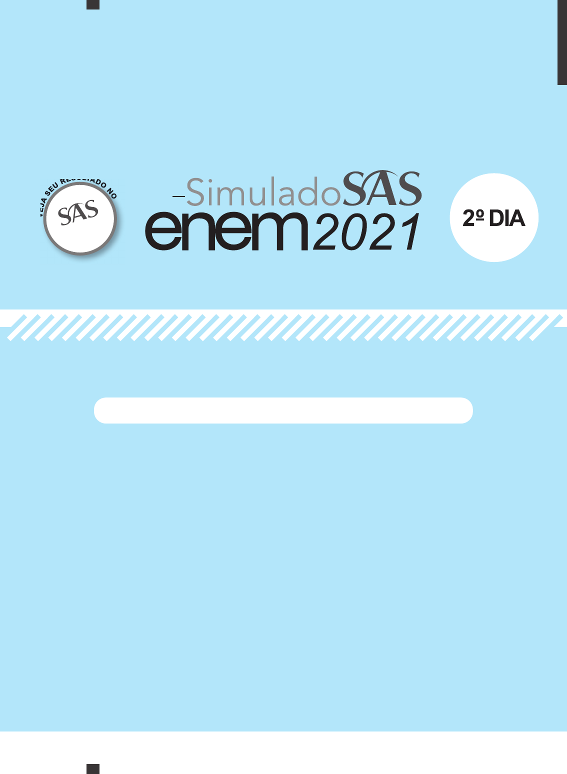 <p>EXAME NACIONAL DO ENSINO MÉDIO</p><p>LEIA ATENTAMENTE AS INSTRUÇÕES SEGUINTES:</p><p>ATENÇÃO: transcreva no espaço apropriado do seu CARTÃO-RESPOSTA,</p><p>com sua caligrafia usual, considerando as letras maiúsculas e minúsculas, a seguinte frase:</p><p>O primeiro dever da inteligência é desconfiar dela mesma</p><p>Período de aplicação: 14/10/2021 a 17/10/2021</p><p>6o</p><p>PROVA DE CIÊNCIAS DA NATUREZA E SUAS TECNOLOGIAS</p><p>PROVA DE MATEMÁTICA E SUAS TECNOLOGIAS</p><p>1. Verifique, no CARTÃO-RESPOSTA, se os seus dados estão registrados corretamente. Caso haja divergência, comunique-a</p><p>imediatamente ao aplicador da sala.</p><p>2. Este CADERNO DE QUESTÕES contém 90 questões numeradas de 91 a 180, dispostas da seguinte maneira:</p><p>a) as questões de número 91 a 135 são relativas à área de Ciências da Natureza e suas Tecnologias;</p><p>b) as questões de número 136 a 180 são relativas à área de Matemática e suas Tecnologias.</p><p>3. Confira se a quantidade e a ordem das questões do seu CADERNO DE QUESTÕES estão de acordo com as instruções</p><p>anteriores. Caso o caderno esteja incompleto, tenha defeito ou apresente qualquer divergência, comunique ao aplicador da</p><p>sala para que ele tome as providências cabíveis.</p><p>4. Para cada uma das questões objetivas, são apresentadas 5 opções. Apenas uma responde corretamente à questão.</p><p>5. O tempo disponível para estas provas é de cinco horas.</p><p>6. Reserve tempo suficiente para preencher o CARTÃO-RESPOSTA. Os rascunhos e as marcações assinaladas no CADERNO DE</p><p>QUESTÕES não serão considerados na avaliação.</p><p>7. Quando terminar as provas, acene para chamar o aplicador e entregue este CADERNO DE QUESTÕES e o CARTÃO-RESPOSTA.</p><p>8. Você não poderá se ausentar da sala de provas levando consigo o CADERNO DE QUESTÕES antes do prazo estabelecido</p><p>e/ou o CARTÃO-RESPOSTA a qualquer tempo.</p><p>VE</p><p>JA</p><p>SE</p><p>U R</p><p>ESULTADO NO</p><p>VE</p><p>JA</p><p>SE</p><p>U R</p><p>ESULTLTL ATAT DO NO</p><p>aluno</p><p>CN – 2o dia | 6o Simulado SAS ENEM – Página 2</p><p>20212021</p><p>CIÊNCIAS DA NATUREZA E SUAS</p><p>TECNOLOGIAS</p><p>Questões de 91 a 135</p><p>QUESTÃO 91</p><p>Há um período que se inicia no momento da exposição</p><p>a um agente infeccioso até o surgimento dos sinais e</p><p>sintomas de uma doença. Por exemplo, na catapora,</p><p>esse período é de 14 a 16 dias.</p><p>No contexto da medicina, o nome apropriado para esse</p><p>intervalo de tempo é</p><p>A A latência.</p><p>B B infecção.</p><p>C C incubação.</p><p>D D transmissão.</p><p>E E convalescença.</p><p>QUESTÃO 92</p><p>TEXTO I</p><p>Compostos de coordenação, ou complexos inorgânicos,</p><p>são moléculas que, geralmente, apresentam um átomo</p><p>metálico central, ou íon metálico, atuando como ácido</p><p>de Lewis, rodeado por íons ou moléculas, chamados de</p><p>ligantes, que são bases de Lewis.</p><p>TEXTO II</p><p>O emprego de compostos inorgânicos em quimioterapia,</p><p>principalmente aqueles contendo metais, foi muito</p><p>limitado até a demonstração da atividade anticancerígena</p><p>de compostos de coordenação contendo platina, que</p><p>agem em tumores localizados, como nos casos de câncer</p><p>testicular e ovariano. Esses complexos apresentam</p><p>dois grupos ligantes iguais do mesmo lado (ambos à</p><p>esquerda ou ambos à direta) na estrutura, ao ponto que</p><p>os complexos que apresentam grupos ligantes iguais</p><p>em lados opostos (um à direita e outro à esquerda) não</p><p>apresentam atividade anticancerígena.</p><p>Disponível em: https://www.scielo.br. Acesso em: 28 nov. 2020. (adaptado)</p><p>A interação do complexo de platina com o DNA é</p><p>mostrada a seguir.</p><p>H3N</p><p>Pt Pt</p><p>H3N G</p><p>G</p><p>DNA</p><p>H3N H3N</p><p>Cl</p><p>Cl</p><p>De acordo com os textos, a ação anticancerígena</p><p>dos complexos inorgânicos de platina se deve à sua</p><p>configuração</p><p>A A cis.</p><p>B B trans.</p><p>C C óptica.</p><p>D D metamérica.</p><p>E E tautomérica.</p><p>QUESTÃO 93</p><p>Em 16 de outubro de 2017, cientistas anunciaram</p><p>a detecção de ondas gravitacionais, ondulações no</p><p>espaço-tempo previstas por Einstein há mais de um</p><p>século. Tais ondulações são decorrentes da colisão entre</p><p>duas estrelas de nêutrons no espaço [...]. Esta descoberta,</p><p>inédita na história da Física, foi feita com o auxílio de uma</p><p>grande estrutura experimental chamada de LIGO. Suas</p><p>instalações consistem em dois detectores idênticos em</p><p>forma de L, um no estado de Washington e outro em</p><p>Louisiana. Ambos utilizam lasers e espelhos para medir</p><p>pequenas deformações no espaço-tempo causadas por</p><p>radiação gravitacional. O objetivo é que cada detector</p><p>registre alterações mínimas na distância percorrida no</p><p>túnel por cada uma das partes do feixe luminoso dividido.</p><p>Interferômetro LIGO</p><p>Túnel de 3 km</p><p>Espelho</p><p>semitransparente</p><p>Luz laser</p><p>Interferência</p><p>DetectorCanhão laser</p><p>Espelho Espelho</p><p>Disponível em: https://www.nationalgeographicbrasil.com. Acesso em: 16 ago. 2020.</p><p>(adaptado)</p><p>Pela figura, ao chegar no espelho semitransparente,</p><p>percebe-se que um feixe de laser é dividido em duas</p><p>partes que viajam para outros dois espelhos separados</p><p>por uma distância quilométrica. Após sofrer reflexão,</p><p>essas partes retornam e encontram-se no interferômetro,</p><p>gerando um padrão de interferência.</p><p>De acordo com o texto, esse experimento demonstra que</p><p>o(a)</p><p>A A interferência luminosa é uma prova da natureza</p><p>corpuscular da luz.</p><p>B B fenômeno da interferência está relacionado à natureza</p><p>eletromagnética das ondas, como a luz.</p><p>C C sobreposição entre vale e crista irá gerar interferência</p