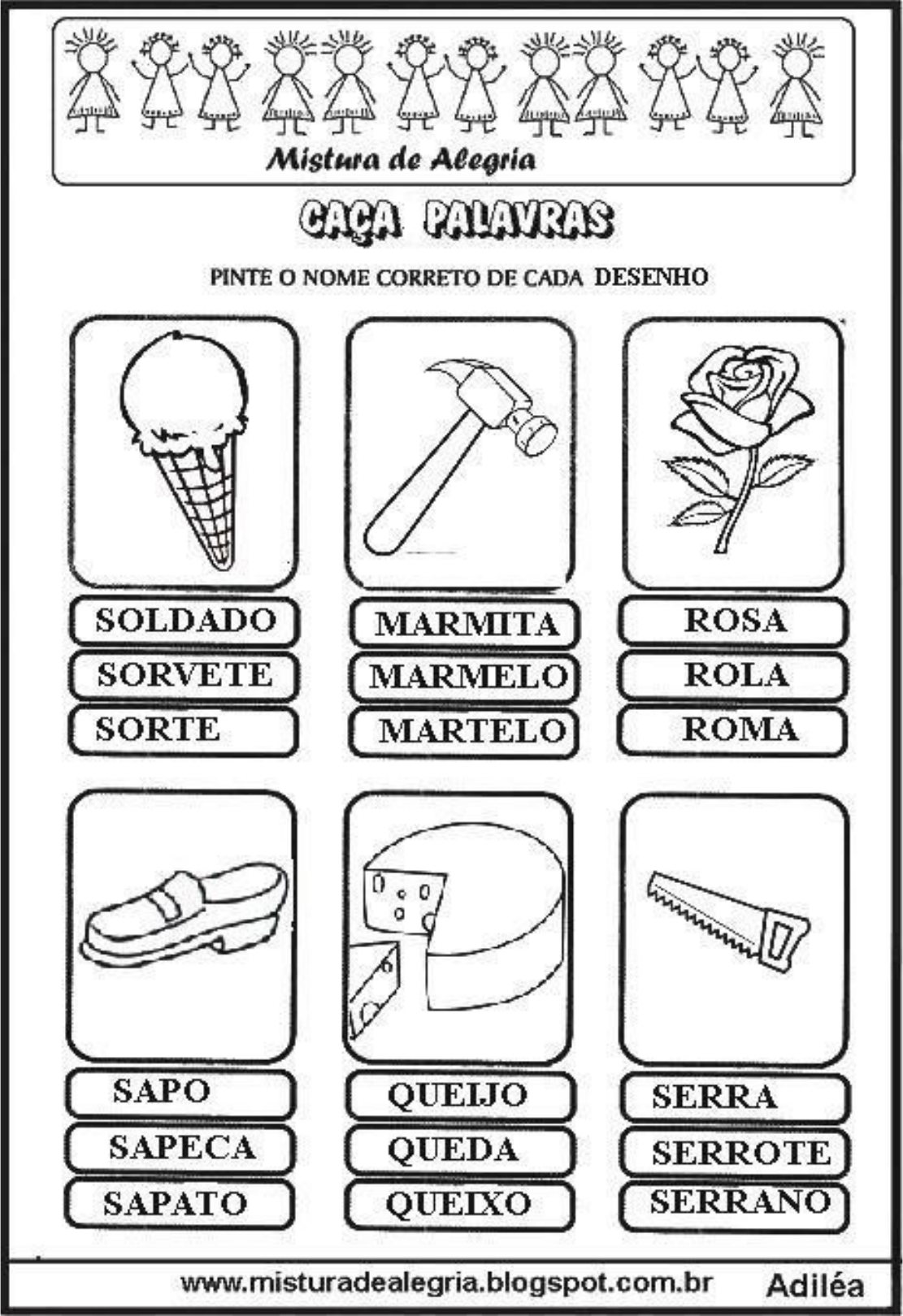 <p>JL JL J Mistura de Alegria CACA PALAVRAS PINTE o NOME CORRETO DE CADA DESENHO SOLDADO MARMITA ROSA SORVETE MARMELO ROLA SORTE MARTELO ROMA SAPO QUEIJO SERRA SAPECA QUEDA SERROTE SAPATO QUEIXO SERRANO www.misturadealegria.blogspot.com.br Adiléa</p>
