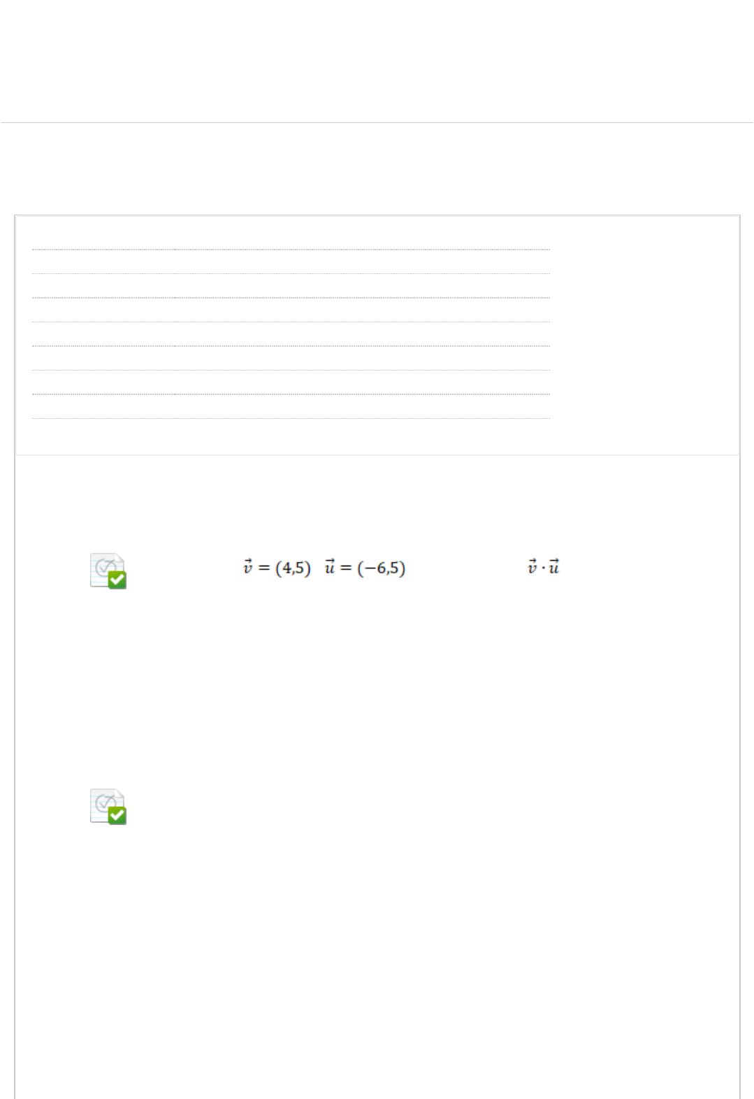 <p>Revisar envio do teste: QUESTIONÁRIO UNIDADE II</p><p>GEOMETRIA ANALÍTICA D50E_13701_R_20242 CONTEÚDO</p><p>Usuário HIGOR SANTOS DA SILVA</p><p>Curso GEOMETRIA ANALÍTICA</p><p>Teste QUESTIONÁRIO UNIDADE II</p><p>Iniciado 11/09/24 22:05</p><p>Enviado 11/09/24 22:15</p><p>Status Completada</p><p>Resultado da tentativa 5 em 5 pontos</p><p>Tempo decorrido 10 minutos</p><p>Resultados exibidos Respostas enviadas, Perguntas respondidas incorretamente</p><p>Pergunta 1</p><p>Resposta Selecionada: a.</p><p>Dados os vetores e , o produto escalar é igual a:</p><p>1.</p><p>Pergunta 2</p><p>Resposta Selecionada: b.</p><p>Analise as a�rmativas sobre o produto escalar:</p><p>I. O resultado do produto escalar entre dois vetores é um escalar;</p><p>II. O resultado do produto escalar entre dois vetores perpendiculares é igual a zero;</p><p>III.</p><p>A ordem dos vetores não altera o produto escalar.</p><p>É correto o que se a�rma em:</p><p>I, II e III.</p><p>UNIP BIBLIOTECAS MURAL DO ALUNOCONTEÚDOS ACADÊMICOS</p><p>0,5 em 0,5 pontos</p><p>0,5 em 0,5 pontos</p><p>11/09/2024, 22:15 Revisar envio do teste: QUESTIONÁRIO UNIDADE II – ...</p><p>https://ava.ead.unip.br/webapps/assessment/review/review.jsp?attempt_id=_107145692_1&course_id=_357790_1&content_id=_4076723_1&retu… 1/4</p><p>http://company.blackboard.com/</p><p>https://ava.ead.unip.br/webapps/blackboard/execute/courseMain?course_id=_357790_1</p><p>https://ava.ead.unip.br/webapps/blackboard/content/listContent.jsp?course_id=_357790_1&content_id=_4054255_1&mode=reset</p><p>https://ava.ead.unip.br/webapps/portal/execute/tabs/tabAction?tab_tab_group_id=_49_1</p><p>https://ava.ead.unip.br/webapps/portal/execute/tabs/tabAction?tab_tab_group_id=_27_1</p><p>https://ava.ead.unip.br/webapps/portal/execute/tabs/tabAction?tab_tab_group_id=_47_1</p><p>https://ava.ead.unip.br/webapps/portal/execute/tabs/tabAction?tab_tab_group_id=_25_1</p><p>https://ava.ead.unip.br/webapps/login/?action=logout</p><p>Pergunta 3</p><p>Resposta Selecionada: c.</p><p>Dados os vetores e , podemos a�rmar que:</p><p>São vetores perpendiculares.</p><p>Pergunta 4</p><p>Resposta Selecionada: a.</p><p>Dados os vetores e , podemos a�rmar que:</p><p>São vetores paralelos e de mesmo sentido.</p><p>Pergunta 5</p><p>Resposta Selecionada: b.</p><p>Dados os vetores e , podemos a�rmar que:</p><p>São vetores paralelos e de sentidos opostos.</p><p>Pergunta 6</p><p>Resposta Selecionada: c.</p><p>Dados os vetores e , podemos a�rmar que:</p><p>São vetores perpendiculares.</p><p>Pergunta 7</p><p>Analise as a�rmativas:</p><p>0,5 em 0,5 pontos</p><p>0,5 em 0,5 pontos</p><p>0,5 em 0,5 pontos</p><p>0,5 em 0,5 pontos</p><p>0,5 em 0,5 pontos</p><p>11/09/2024, 22:15 Revisar envio do teste: QUESTIONÁRIO UNIDADE II – ...</p><p>https://ava.ead.unip.br/webapps/assessment/review/review.jsp?attempt_id=_107145692_1&course_id=_357790_1&content_id=_4076723_1&retu… 2/4</p><p>Resposta Selecionada: c.</p><p>I. Há dependência linear entre dois vetores se ;</p><p>II. Dois vetores são linearmente dependentes se forem paralelos;</p><p>III. Dois vetores serão linearmente dependentes se o módulo da multiplicação</p><p>destes dois vetores for igual à multiplicação dos módulos destes vetores.</p><p>É correto o que se a�rma em:</p><p>I, II e III.</p><p>Pergunta 8</p><p>Resposta Selecionada: c.</p><p>Analise as a�rmativas sobre a projeção ortogonal do vetor sobre o vetor :</p><p>I. O vetor é decomposto em dois vetores, sendo um paralelo e outro</p><p>perpendicular ao vetor ;</p><p>II. A projeção paralela do vetor sobre o vetor representa a multiplicação de um</p><p>escalar pelo vetor ;</p><p>III. A projeção perpendicular do vetor sobre o vetor é obtida subtraindo-se a</p><p>projeção paralela do vetor sobre o vetor do vetor .</p><p>É correto o que se a�rma em:</p><p>I, II e III.</p><p>Pergunta 9</p><p>Resposta Selecionada: d.</p><p>Analise as a�rmativas sobre o produto vetorial vetor sobre o vetor :</p><p>I. O produto vetorial é um escalar;</p><p>II. O produto vetorial é um vetor perpendicular ao plano de�nido pelos vetores</p><p>envolvidos no produto vetorial;</p><p>III. O produto vetorial é anticomutativo.</p><p>É correto o que se a�rma em:</p><p>Apenas, em II e III.</p><p>Pergunta 10</p><p>0,5 em 0,5 pontos</p><p>0,5 em 0,5 pontos</p><p>0,5 em 0,5 pontos</p><p>11/09/2024, 22:15 Revisar envio do teste: QUESTIONÁRIO UNIDADE II – ...</p><p>https://ava.ead.unip.br/webapps/assessment/review/review.jsp?attempt_id=_107145692_1&course_id=_357790_1&content_id=_4076723_1&retu… 3/4</p><p>Quarta-feira, 11 de Setembro de 2024 22h15min46s GMT-03:00</p><p>Resposta Selecionada: a.</p><p>Considere as seguintes a�rmativas sobre os vetores e</p><p>:</p><p>I. Se e forem paralelos e de mesmo sentido, então, o produto vetorial é zero;</p><p>II. Se e forem paralelos e de sentidos opostos, então, o produto vetorial é zero;</p><p>III. Se e não forem paralelos, então, o produto vetorial representa a área do</p><p>triângulo de�nido pelos vetores e .</p><p>É correto o que se a�rma em:</p><p>Apenas, em I e II.</p><p>← OK</p><p>11/09/2024, 22:15 Revisar envio do teste: QUESTIONÁRIO UNIDADE II – ...</p><p>https://ava.ead.unip.br/webapps/assessment/review/review.jsp?attempt_id=_107145692_1&course_id=_357790_1&content_id=_4076723_1&retu… 4/4</p>