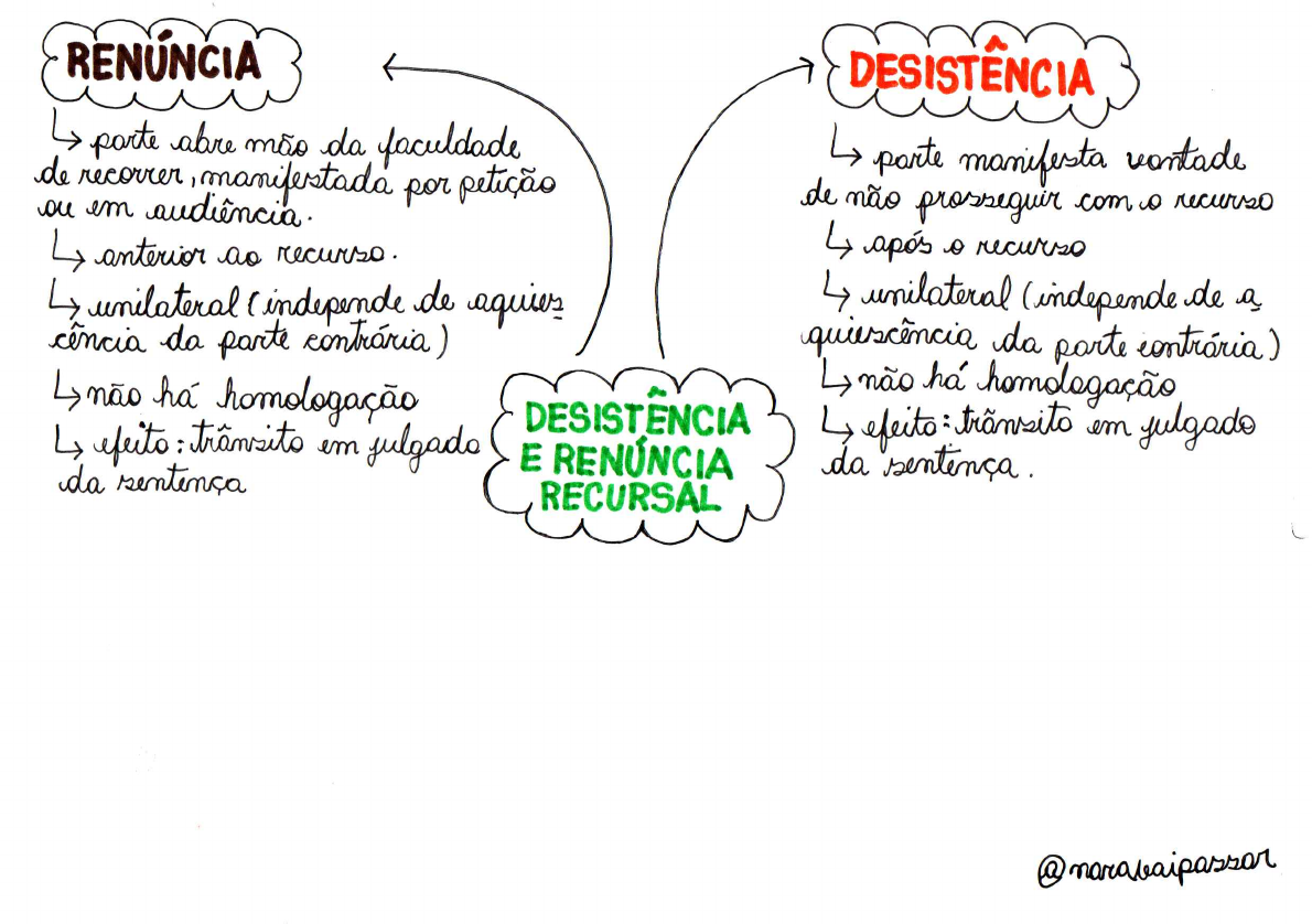 <p>RENUNCIA DESISTENCIA parte abre mão da faculdade de manifestada por petição parte manifesta vontade em de não prosseguir com recurso anterior ao recurso. o unilateral de unilateral (independe de a cincia da parte contrária) da parte contrária) não ha homologação não ha DESISTENCIA : em julgado tränsito em julgado da E RENUNCIA da RECURSAL a</p><p>CONCEITO NÃO ADMISSÃO DO RECURSO (por falta de preparo) do recurso + valor de porte e de ultimo não tem podera relevada quando a recurso for eletronico) parte a impossibilidade de efetuar preparo is DISPENSADOS DO PREPARO se justo a parte sera intima da para, no prazo de 5 dias, MP preparo ). Administração Bireta PREENCHIMENTO DA GUIA (União, DF, Estados l Munici PREPARO pios) O no Autarquias da guia não gerara deser no prazo de 5 dias, INSUFICIENCIA/AUSENCIA em earo de INDEPENDEM DE PREPARO pagamento do prepare no a parte sera intimada para pagar D de declaração em dobro, pena de em l RE set Pagamento a menor: a parte será intimada embargos infrigentes na LEF para complementar prepare no prazo de 5 recursos do ECA dias pena de deserção.</p><p>CONCEITO JUIZO DE RETRATABILIDADE que interpor das juizes de primeiro indeferimento de inicial grau de para a liminar do causa ao dos tribunair pedido de segundo visando uma reforma total ou parcialda impugnada, ou mes mo sua PRAZO APELAÇÃO CABIMENTO 15 dias de ADMITE de interlocutorias interposição na forma das não de instruments. COM A CHEGADA NO TRIBUNAL ORELATOR decide ou elabora</p><p>CONCEITO JUIZO DE RETRATABILIDADE recurso que interpõe das apenas dos juizes de primeiro de inicial de para a causa ao dos tribunais liminar do pedido de segundo grau, visando obter uma reforma total ou parcial da impugnada, PRAZO sua 15 dias APELAÇÃO ADMITE CABIMENTO RECURSO DE de na forma APELAÇÃO de interlocutorias COM A CHEGADA NO TRIBUNAL, das não agravo 0 RELATOR de instruments. decide elabora voto. @</p><p>DECIDIR 0 PROCESSO DEPOIS DE FACULTADA MONOCRATICAMENTE APRESENTAÇÃO DE ( cabe agravo não admiter o por (dar a decisão recorrida for contrária:) dos pressupostos de a) a do STF, do STJ ou do admissibilidade do recurso prejudicado ou proprio tribunal que faca parteo que não tiver impugnado relator; especificamente fundamen b) ao pelo STF ou pelo tos da decisão recorrida. STJ em julgamento de recursos repeti negar a twos; que for contrário RECURSO DE c) ao entendimento firmado em in a) a sumula do STF, do STJ APELAÇÃO cidente de resolução de demandas ou do proprio tribunal que (IRDR) ou de faca parte relator; competencia; ao proferido pelo STF ELABORAR SEU VOTO ou pelo STJem julgamento de re repetitivos; c ) ao em para julgaments do recurso pelo incidente de resolução de demandas do tribunal. (IRDR) ou de assunçãode @</p><p>APELAÇÃO - RECURSO DE APELAÇÃO EFEITO SUSPENSIVO LEGAL de divisão ou de condenação em alimentos do processo resolução de merito improcedincia dos embargos procedencia de pedido de instituição de arbitragem ou de tutela provisoria decreto de interdição EFEITO DEVOLUTIVO: todas as suscitadas l discutidas no processo, ainda que não tenham sido solucionadas, desde que ao capitulo impugnado ( @</p><p>AGRAVO DE INSTRUMENTO CONCEITO recurso adequado para atacar interlocutorias proferidas no curso do HIPÓTESES DE CABIMENTO tutelas merits do processo, que não fim ao processo da alegação de de arbitragem incidente de da personalidade do pedido de gratuidade da justica ou do pedido de revogação ou posse de documents ou exclusão de litisconsorte do pedido de do admissão ou inadimissão de intervenção de modificação ou revogação do suspensive aos embargos a resdistribuição do onus da decisões proferidos na fase de liquidação de sentenca oude de no processo de execução l no processo de casos expressamente referidos em</p><p>FORMAÇÃO DO INSTRUMENTO INTERPOSIÇÃO pecas ocorre diretamente no tribunal petição inicial informação do juizo "a quo "da petição que ensyou a decisão : ha uma obrigatoriedade agravada de informar de origem da interpo decisão agravada do mas a inadmissibili certidão de intimação das dade do recurso por falta de comunica partes da decisão agravada ou depende de da parte outro documents que comprove agravada. a La uma das partes agrava direta procurações mente no tribunal comunica juizo na ori das dos das AGRAVO DE gem. Nesse presentes or INSTRUMENTO agrareo será admitido presentes partes. Nada podera fazer a + declaração: parte contra quem a parte podera juntor outras peças umadas agrava devera declarar nos to no tribunal, não comunica juizo na ori- gem l a agravada nada alega Nesse ea autos algumas das pecas obriga so, devido a inercia do recurso de de sera admitide presentes or PRECLUSÃO CONSUMATIVA 3a uma das agrava direta não ha consumativa pela na origem a parte agravada a não CO mente no tribunal, não comunica juizo não juntada de algum dos documentos municação no prazo de 3digs. Nesse obrigatorios : parte ser intimada para de de instruments não sera admitido. @</p><p>NEGATIVO POSITIVO não conhecer de recurso inad Se não verificar uma dos hipo missivel prejudicado ou que não acima, D relator tera prazo de tenha impugnado te or fundamentos da decisão 5 dias para: atribuir efeito suspensive IMPROVIMENTO LIMINAR analison eventual requerimen to de antecipação de tutela; (negar provimento a determinar a intimação do recurso que for AGRAVO DE agravado para a contra a) do STF, do STJ minuta no prazo de 15 dias INSTRUMENTO ou do proprio tribunal; determinar a intimação do ) ao pelo Ministerio Publico para que, na CONHECIMENTO STF ou pelo STF ou pelo STJ qualidade de fiscal da ordem DO AGRAVO em julgamento de recursos juridica, manifeste no prazo de 15 dias c) ao entendimento firmado em incidente de resolução demandas repetitives ou de de compe</p><p>CONCEITO SUPRIR OMISSÃO : de omissão na analise de algum dos pedidos formulados não tem por finalidade a decisão