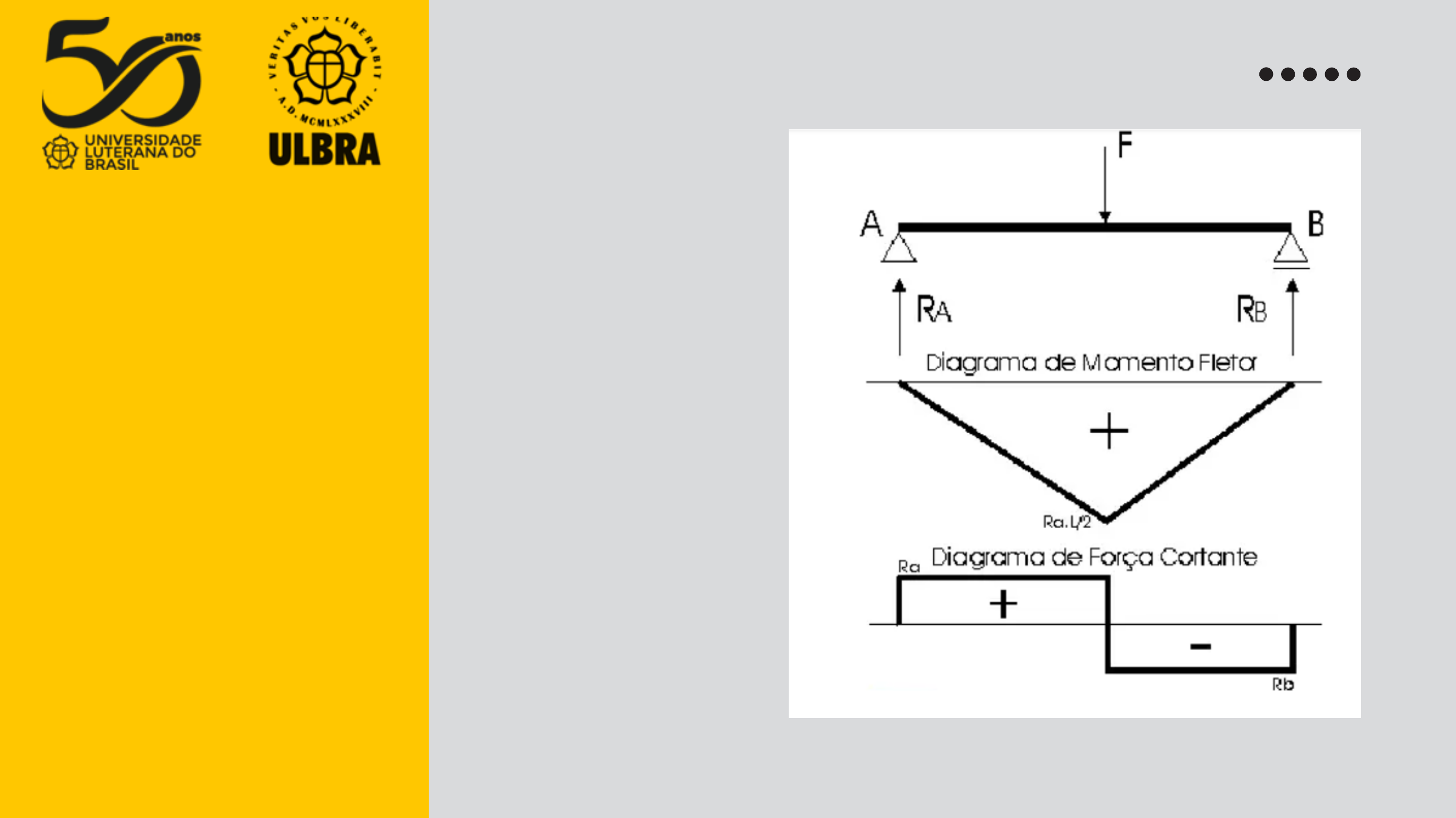 <p>ANÁLISE</p><p>ESTRUTURAL</p><p>AULA 03</p><p>O QUE É O DIAGRAMA DE</p><p>MOMENTOR FLETOR E</p><p>DIAGRAMA DE FORÇA</p><p>CORTANTE?</p><p>• A força cortante é outro conceito fundamental na análise</p><p>estrutural em engenharia civil, especialmente quando se trata de</p><p>vigas e outros elementos estruturais.</p><p>• Ela representa a força interna que atua perpendicularmente ao</p><p>eixo longitudinal de uma viga, causada pela ação de cargas</p><p>aplicadas ao longo da viga.</p><p>• Em termos simples, a força cortante tenta "cortar" a viga em</p><p>duas partes.</p><p>FORÇA CORTANTE</p><p>• O diagrama de força cortante é um gráfico que representa a</p><p>variação da força cortante ao longo do comprimento de uma</p><p>viga. Ele é construído a partir dos seguintes passos:</p><p>• Determinação das reações de apoio;</p><p>• Divisão da viga em segmentos;</p><p>• Cálculo da força cortante nos pontos de interesse;</p><p>• Traçado do diagrama.</p><p>DIAGRAMA DE FORÇA CORTANTE</p><p>• UMA GRANDEZA DE ANÁLISE ESTRUTURAL EM ENGENHARIA CIVIL,</p><p>ESPECIALMENTE NO CONTEXTO DE VIGAS E ESTRUTURAS</p><p>ISOESTÁTICAS;</p><p>• REPRESENTA A TENDÊNCIA DE UMA SEÇÃO DE UMA VIGA OU OUTRO</p><p>ELEMENTO ESTRUTURAL DE SE LOCOMOVER SOB FORÇAS EXTERNAS;</p><p>• ESSE MOMENTO É CAUSADO POR FORÇAS QUE ATUAM AO LONGO DA</p><p>ESTRUTURA, DISTRIBUÍDAS E/OU PONTUAIS, E RESULTA EM UMA</p><p>CURVATURA OU FLEXÃO DA VIGA.</p><p>MOMENTO FLETOR</p><p>é uma representação gráfica da variação do momento fletor ao longo</p><p>do comprimento de uma viga ou estrutura. Para construir esse</p><p>diagrama, é necessário:</p><p>• Determinar as reações de apoio;</p><p>• Dividir a viga em trechos;</p><p>• Calcular o momento fletor em pontos específicos;</p><p>• Plotar o diagrama.</p><p>DIAGRAMA DE MOMENTO FLETOR</p><p>EXEMPLOS</p><p>EXEMPLOS</p><p>EXEMPLOS</p><p>EXEMPLOS</p><p>EXEMPLOS</p><p>EXEMPLOS</p><p>EXEMPLOS</p><p>EXEMPLOS</p><p>EXEMPLOS</p><p>EXEMPLOS</p><p>EXEMPLOS</p><p>EXEMPLOS</p><p>EXEMPLOS</p><p>PRÓXIMA AULA</p><p>DIAGRAMA MOMENTO FLETO</p><p>E FORÇA CONTANTE</p><p>Slide 1</p><p>Slide 2</p><p>Slide 3</p><p>Slide 4</p><p>Slide 5</p><p>Slide 6</p><p>Slide 7</p><p>Slide 8</p><p>Slide 9</p><p>Slide 10</p><p>Slide 11</p><p>Slide 12</p><p>Slide 13</p><p>Slide 14</p><p>Slide 15</p><p>Slide 16</p><p>Slide 17</p><p>Slide 18</p><p>Slide 19</p><p>Slide 20</p>