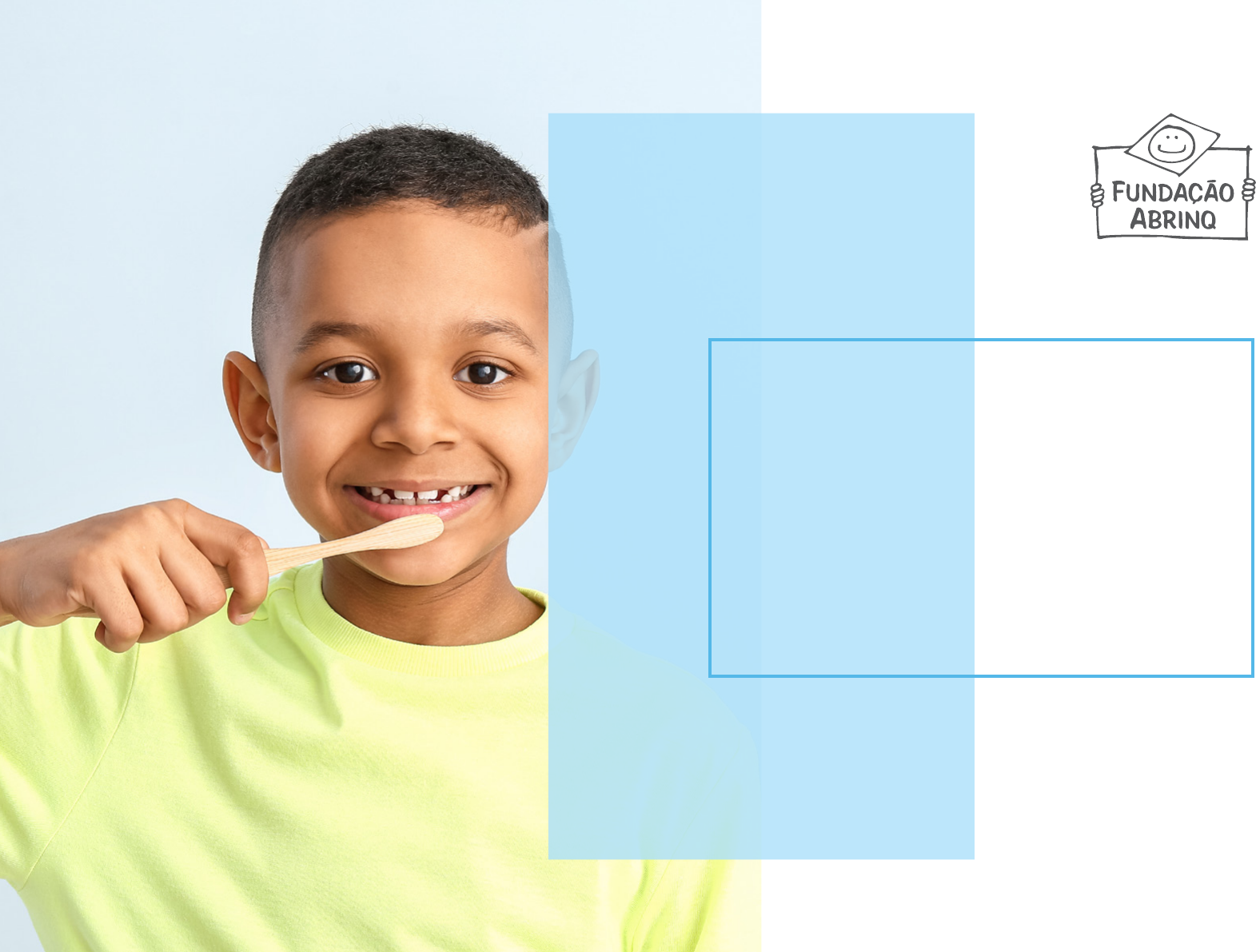 <p>Guia para Promoção da</p><p>de Crianças e Adolescentes</p><p>SAÚDE BUCAL</p><p>>></p><p>Página 2 Fundação AbrinqAA promoção da saúde bucal de crianças e adolescentes</p><p>ainda é um assunto que precisa ser discutido e</p><p>disseminado entre os pais, responsáveis e profissionais</p><p>que atendem esta faixa etária.</p><p>No Brasil, a negligência com os cuidados bucais</p><p>vem sendo motivada por vários fatores, no entanto,</p><p>apresenta-se com maior intensidade quando vinculada</p><p>à aspectos sociais, econômicos e culturais.</p><p>A fase mais importante para a prevenção de</p><p>enfermidades bucais ocorre durante a infância e</p><p>adolescência, quando os hábitos alimentares são</p><p>construídos, há formação permanente da arcada</p><p>dentária, inicia-se os cuidados com a higiene bucal</p><p>diária e o acompanhamento odontológico preventivo.</p><p>Para que crianças e adolescentes possam usufruir</p><p>de uma boa qualidade na saúde bucal, é necessário</p><p>que os adultos que permeiam o seu cotidiano sejam</p><p>orientados e informados sobre a sua própria saúde</p><p>bucal, pois a rotina do adulto será semelhante a rotina</p><p>da criança. Assim, se o adulto tem o hábito de consumir</p><p>alimentos açucarados, não escovar os dentes e não</p><p>frequentar o consultório odontológico para consultas</p><p>preventivas, a criança e o adolescente seguirá os</p><p>mesmos exemplos.</p><p>Este material tem por objetivo orientar, informar</p><p>e conscientizar profissionais de organizações da</p><p>sociedade civil, pais e responsáveis sobre a importância</p><p>da promoção da higiene bucal de crianças e</p><p>adolescentes.</p><p>Boa leitura!</p><p>Apresentação</p><p>>></p><p>Página 3 Fundação AbrinqS1. Fatores de risco para a promoção da saúde e higiene bucal de crianças e adolescentes ..................................................4</p><p>2. Promoção da saúde e higiene bucal na primeira infância ...............................................................................................................7</p><p>3. Uso de bicos e chupetas ............................................................................................................................................................................11</p><p>4. Cárie .................................................................................................................................................................................................................13</p><p>5. Dentes tortos, encavalados ou apinhamento dentário ................................................................................................................15</p><p>6. O papel das unidades de educação infantil para a promoção da saúde bucal na primeira infância ............................18</p><p>7. Promoção da saúde e higiene bucal dos 6 aos 12 anos de idade .............................................................................................20</p><p>8. Cuidados e promoção da saúde bucal na adolescência ................................................................................................................24</p><p>9. Passo a passo para a higiene bucal ........................................................................................................................................................26</p><p>10. Dicas importantes .......................................................................................................................................................................................30</p><p>Sumário</p><p>Página 4 Fundação Abrinq</p><p>Fatores de risco para a promoção</p><p>da saúde e higiene bucal de</p><p>crianças e adolescentes</p><p>01 >></p><p>Página 4 Fundação Abrinq</p><p>Página 5 Fundação AbrinqAA ausência de cuidados com a saúde bucal pode</p><p>apresentar problemas na qualidade de vida</p><p>de crianças e adolescentes, transcorrendo em</p><p>aspectos psicológicos como baixa autoestima,</p><p>insegurança, sensação de incapacidade; aspectos</p><p>físicos como dores, desconfortos durante a</p><p>alimentação, má qualidade do sono; e aspectos</p><p>sociais como interação social, irritabilidade e baixo</p><p>rendimento escolar.</p><p>Os aspectos culturais que fomentam a</p><p>precariedade da saúde bucal, dizem respeito a</p><p>costumes e tradições dos grupos familiares que</p><p>iniciam o tratamento odontológico somente após</p><p>a ocorrência de enfermidades bucais. Essa prática</p><p>é intensificada pela ausência ou, em alguns casos,</p><p>a inexistência de equipes qualificadas para a oferta</p><p>de atendimentos odontológicos pelo Sistema Único</p><p>de Saúde (SUS).</p><p>Um fator que corrobora para as ações da má</p><p>higiene bucal, está relacionado a ausência de</p><p>Página 6 Fundação Abrinq</p><p>informação, orientação e atendimento público de</p><p>qualidade, sendo estes, direitos assegurados em leis,</p><p>em especial no Estatuto da Criança e do Adolescente</p><p>(Lei nº 8.069/ 1990, Art. 11)1.</p><p>A fase mais importante para a prevenção de</p><p>enfermidades bucais, ocorre durante a infância e</p><p>adolescência, devido a transformação e formação</p><p>permanente da arcada dentária, além da ocorrência de</p><p>bons hábitos saudáveis que, quando bem transmitidos</p><p>nesta fase, contribuem para a formação de adultos com</p><p>maior consciência sobre os cuidados bucais necessários</p><p>para uma melhor qualidade de vida.</p><p>De acordo com uma pesquisa realizada em 2019 pelo</p><p>Instituto Brasileiro de Geografia e Estatística (IBGE)2,</p><p>51,2% de crianças e adolescentes, entre 0 e 17 anos,</p><p>passaram por consultas odontológicas nos últimos 12</p><p>meses. Ainda em relação a pesquisa, as famílias mais</p><p>afetadas pela ausência de atendimento odontológico,</p><p>são as que detêm menor poder aquisitivo,</p><p>