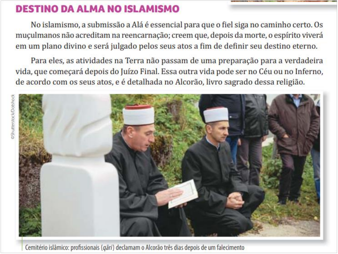 <p>DESTINO DA ALMA NO ISLAMISMO No islamismo, a submissão a Alá é essencial para que o fiel siga no caminho certo. Os não acreditam na reencarnação; creem que, depois da morte, o espírito viverá em um plano divino e será julgado pelos seus atos a fim de definir seu destino eterno. Para eles, as atividades na Terra não passam de uma preparação para a verdadeira vida, que começará depois do Juízo Final. Essa outra vida pode ser no Céu ou no Inferno, de acordo com os seus atos, e é detalhada no Alcorão, livro sagrado dessa religião. Cemitério islâmico: profissionais declamam 0 Alcorão três dias depois de um falecimento</p>
