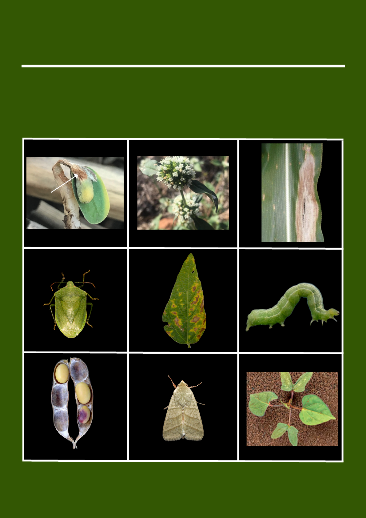 <p>O guia PRÁTICO mais COMPLETO para</p><p>agrônomos, técnicos e produtores rurais para a</p><p>cultura da soja e do milho</p><p>GUIA AGRONÔMICO</p><p>Edu Junius</p><p>GUIA DE ORDEM DE MISTURA NO</p><p>TANQUE DE PULVERIZAÇÃO</p><p>Água LÍQUIDO</p><p>WP - Granulado Dispersível</p><p>WP - Pó molhável</p><p>SC - Suspensão Concentrada</p><p>OD - Dispersão de Óleo</p><p>CS - Suspensão de Encapsulado</p><p>SUSPENSÃO</p><p>SÓLIDOS</p><p>SOLÚVEIS</p><p>SE - Suspo Emulsão</p><p>EC - Concentrado Emulsionável</p><p>EO - Emulsão de Água em Óleo</p><p>EW - Emulsão de Óleo em Água</p><p>ME - Micro Emulsão</p><p>INTERMEDIÁRIO</p><p>EMULSÃO</p><p>SG - Granulos Solúveis</p><p>SP - Pó Solúvel</p><p>SL - Solução Solúvel</p><p>FORMULAÇÕES</p><p>SOLÚVEIS</p><p>1°</p><p>2°</p><p>3°</p><p>4°</p><p>5°</p><p>6°</p><p>7°</p><p>8°</p><p>9°</p><p>10°</p><p>11°</p><p>12°</p><p>13°</p><p>14°</p><p>ADJUVANTES</p><p>ÓLEOS</p><p>Seguem os critérios</p><p>da EC</p><p>ESTABILIZANTES</p><p>E SURFACTANTES</p><p>No meio das adições</p><p>QUELATIZADORES E</p><p>CORRETORES DE PH</p><p>Depois da água</p><p>ORDEM FORMULAÇÃO OBSERVAÇÃO</p><p>A</p><p>D</p><p>IÇ</p><p>Ã</p><p>O A</p><p>G</p><p>IT</p><p>A</p><p>Ç</p><p>Ã</p><p>O</p><p>Página 1</p><p>GUIA DE CLASSIFICAÇÃO DAS</p><p>PONTAS DE PULVERIZAÇÃO</p><p>CATEGORIA</p><p>Extremamente fina</p><p>Muito fina</p><p>Fina</p><p>Média</p><p>Grossa</p><p>Muito grossa</p><p>Extremamente grossa</p><p>Ultra grossa</p><p>SÍMBOLO</p><p>XF</p><p>VF</p><p>F</p><p>M</p><p>C</p><p>VC</p><p>EC</p><p>UC</p><p>COR</p><p>Roxo</p><p>Vermelho</p><p>Laranja</p><p>Amarelo</p><p>Azul</p><p>Verde</p><p>Branca</p><p>Preto</p><p>DMV</p><p>(MICRONS)</p><p>< 60</p><p>60 - 145</p><p>146 - 225</p><p>226 - 325</p><p>326-400</p><p>401 - 500</p><p>501 - 650</p><p>> 650</p><p>Adaptado: Classificação de tamanho de gotas segundo a norma S-572 (ASAE, 1999)</p><p>POTENCIAL</p><p>DE DERIVA</p><p>ALTO</p><p>BAIXO</p><p>Página 2</p><p>GUIA DE DOENÇAS DA SOJA</p><p>Antracnose</p><p>Colletotrichum dematium</p><p>Mofo-branco</p><p>Sclerotinia sclerotiorum</p><p>Cercóspora</p><p>Cercospora kikuchii</p><p>Crestamento bacteriano</p><p>Pseudomonas savastanoi</p><p>PVR</p><p>Fusarium solanI</p><p>Ferrugem Asiática</p><p>Phakopsora pachyrhizi</p><p>Mela</p><p>Rhizoctonia solani</p><p>Oídio</p><p>Fusarium solanI</p><p>Míldio</p><p>Peronospora manshurica</p><p>Mancha Parda</p><p>Septoria glycines</p><p>Mancha alvo</p><p>Corynespora cassiicola</p><p>Mancha olho de rã</p><p>Cercospora sojina</p><p>Página 3</p><p>GUIA DE DOENÇAS DO MILHO</p><p>Mosaico comum do milho Cercospora</p><p>Ferrugem do milho Helmintosporiose</p><p>Mancha branca Mancha de diplodia</p><p>Enfezamento pálido Enfezamento vermelho</p><p>Página 4</p><p>GUIA DOS PRINCIPAIS</p><p>FUNGICIDAS</p><p>PRINCÍPIO ATIVO GRUPO QUÍMICO MECANISMO DE AÇÃO</p><p>Metalaxil-MAcilalaninato (A1) Inibe síntese de ácidos nucleicos</p><p>Carbendazin</p><p>Benzimidazol (B1) Inibe mitose e divisão celularTiofanato Metílico</p><p>Tiabendazol</p><p>CarboxinaCarboxanilida (C2) Inibe respiração mitocondrial</p><p>Fluxapiroxade</p><p>Carboxamida (C2) Inibe respiração mitocondrialBenzovindiflupir</p><p>Bixafen</p><p>Boscalida</p><p>Piraclostrobina</p><p>Estrobilurina (C3) Inibe respiração mitocondrial</p><p>Azoxistrobina</p><p>Trifloxistrobina</p><p>Picoxistrobina</p><p>Dimoxistrobina</p><p>Metaminostrobina</p><p>Cresoxim metílico</p><p>FluazinamFenilpiridilanina (C5) Desacopla fosforilação oxidativa</p><p>Dicarboxamida (E3) Transdução de sinal</p><p>Procimidona</p><p>Iprodiona</p><p>Página 5</p><p>PRINCÍPIO ATIVO GRUPO QUÍMICO MECANISMO DE AÇÃO</p><p>FenpropimorfeMorfolinas (G2) Bloqueia a biossíntese de ergosterol</p><p>Oxicloreto de cobre</p><p>Cúpricos (M1) Interferência das funções celulares,</p><p>inativa enzimas essenciais</p><p>Hidróxido de cobre</p><p>Óxido cuproso</p><p>MancozebDitiocarbamato (M3)</p><p>Interferência das funções celulares,</p><p>inativa enzimas essenciais</p><p>ClorotalonilIsoftalonitrila (M5)</p><p>Interferência das funções celulares,</p><p>inativa enzimas essenciais</p><p>Tebuconazol</p><p>Triazol (G1) Bloqueia a biossíntese</p><p>de ergosterol</p><p>Epoxiconazol</p><p>Difenoconazol</p><p>Propiconazol</p><p>Ciproconazol</p><p>Protioconazol</p><p>Tetraconazol</p><p>Página 5</p><p>GUIA DE IDENTIFICAÇÃO</p><p>DE MARIPOSAS</p><p>Lagarta-rosca</p><p>Agrotis ipsilon</p><p>Lagarta da espiga</p><p>Helicoverpa zea</p><p>Lagarta das maçãs</p><p>Chloridea virescens</p><p>Lagarta da soja</p><p>Anticarsia gemmatalis</p><p>Lagarta da espiga</p><p>Helicoverpa zea</p><p>Lagarta Elasmo</p><p>Elasmopalpus lignosellus</p><p>Lagarta do cartucho</p><p>Spodoptera frugiperda</p><p>Lagarta preta da soja</p><p>Spodoptera cosmioides</p><p>Página 6</p><p>GUIA DE IDENTIFICAÇÃO</p><p>DE LAGARTAS</p><p>Lagarta rosca</p><p>Agrotis ipsilon</p><p>Lagarta da espiga</p><p>Helicoverpa zea</p><p>Lagarta das maçãs</p><p>Chloridea virescens</p><p>Lagarta da soja</p><p>Anticarsia gemmatalis</p><p>Lagarta falsa medideira</p><p>Crysodeixis includens</p><p>Lagarta Elasmo</p><p>Elasmopalpus lignosellus</p><p>Página 7</p><p>GUIA DE IDENTIFICAÇÃO</p><p>DE SPODOPTERAS</p><p>Lagarta do cartucho</p><p>Spodoptera frugiperda</p><p>Pontuação preta no dorso</p><p>Y invertido na cabeça</p><p>4 pontuações pretas</p><p>no final do</p><p>abdômen, formando</p><p>um quadrado</p><p>Listra branca ou creme Listra lateral interrompida por uma</p><p>mancha escura que não chega até</p><p>a cabeça</p><p>Apresenta 3 listras alaranjadas</p><p>com pontuações brancas</p><p>Triângulos preto</p><p>Lagarta das folhas</p><p>Spodoptera eridania</p><p>Lagarta preta da soja</p><p>Spodoptera cosmioides</p><p>Página 8</p><p>GUIA DE IDENTIFICAÇÃO</p><p>DE PERCEVEJOS</p><p>Percevejo marrom</p><p>Euchistos heros</p><p>Percevejo barriga verde</p><p>Dichelops melacanthus</p><p>Percevejo verde</p><p>Nez