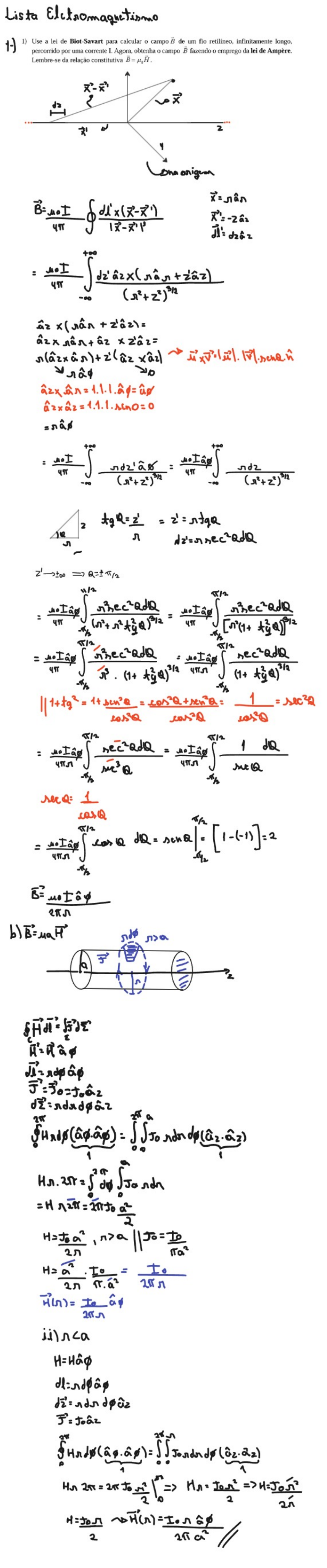 <p>Lista Use lei de Biot-Savart para calcular campo B de um fio infinitamente longo, percorrido por corrente Agora obtenha campo fazendo emprego lei de Ampère relação constitutiva 2 = r - 11/2 = = (1+ = = = casQ = Q a =H n>a I. 25 2 2</p>