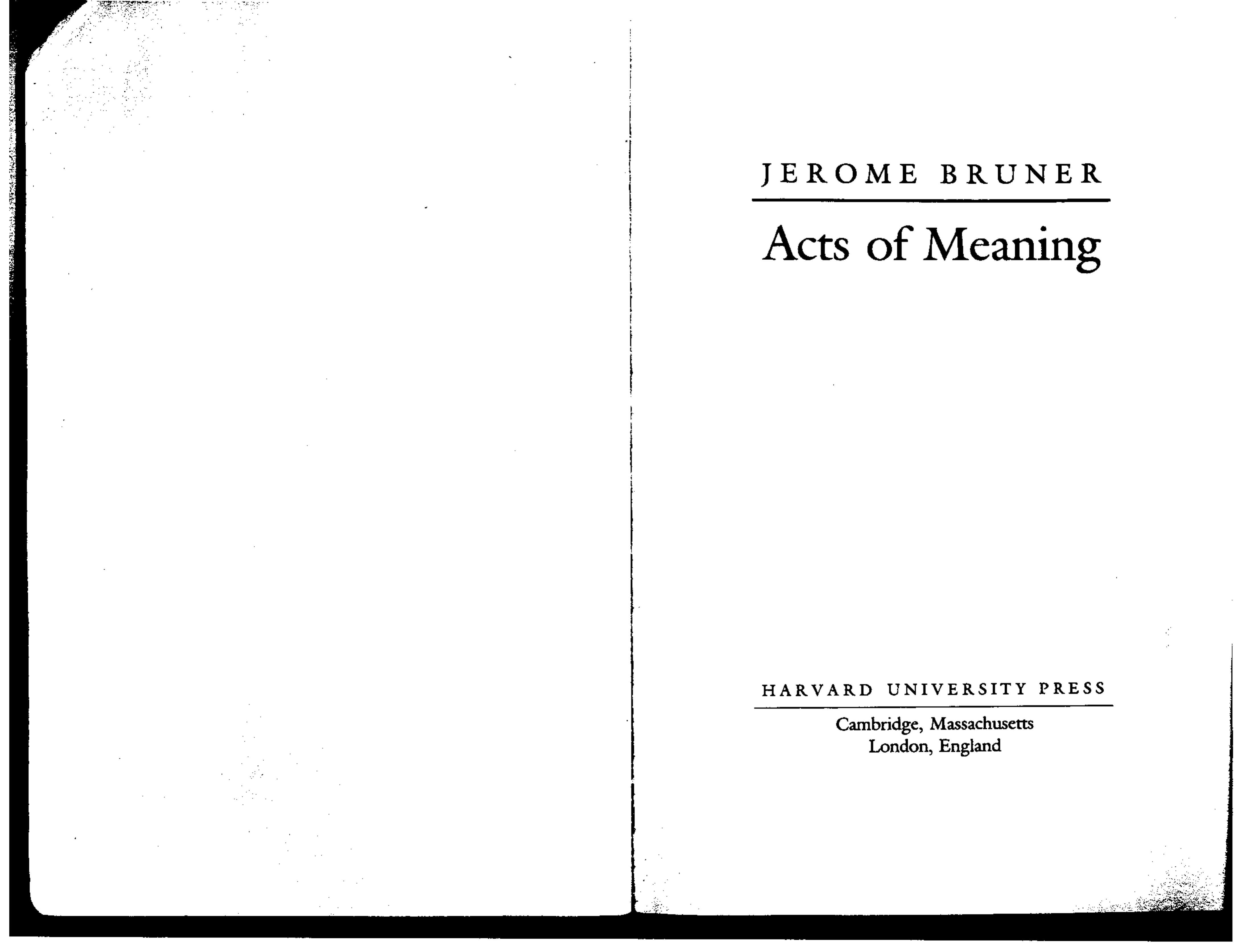 <p>JEROME BRUNER Acts of Meaning HARVARD UNIVERSITY PRESS Cambridge, Massachusetts London, England</p><p>Acts of Meaning from that kind of painter. 44 As Adrienne Rich puts it, "When someone with the authority of a teacher, say, describes the CHAPTER TWO world and you are not in it, there is a moment of psychic disequilibrium, as if you looked into a mirror and saw nothing. Folk Psychology as an Instrument Intellectuals in a democratic society constitute a community of cultural critics. Psychologists, alas, have rarely seen them- of Culture selves that way, largely because they are caught up in the self-image generated by positivist science. Psychology, on this view, deals only in objective truths and eschews cultural criti- cism. But even scientific psychology will fare better when it I N THE FIRST CHAPTER I recounted how the cognitive recognizes that its truths, like all truths about the human revolution had been diverted from its originating impulse condition, are relative to the point of view that it takes toward by the computational metaphor, and I argued in favor of a that condition. And it will achieve a more effective stance renewal and refreshment of the original revolution, a revolu- toward the culture at large when it comes to recognize that tion inspired by the conviction that the central concept of a the folk psychology of ordinary people is not just a set of self- human psychology is meaning and the processes and transac- assuaging illusions, but the culture's beliefs and working tions involved in the construction of meanings. hypotheses about what makes it possible and fulfilling for peo- This conviction is based upon two connected arguments. ple to live together, even with great personal sacrifice. It is The first is that to understand man you must understand how where psychology starts and wherein it is inseparable from his experiences and his acts are shaped by his intentional states, anthropology and the other cultural sciences. Folk psychology and the second is that the form of these intentional states is needs explaining, not explaining away. realized only through participation in the symbolic systems of the culture. Indeed, the very shape of our lives-the rough and perpetually changing draft of our autobiography that we carry in our minds-is understandable to ourselves and to others only by virtue of those cultural systems of interpreta- tion. But culture is also constitutive of mind. By virtue of this actualization in culture, meaning achieves a form that is public and communal rather than private and autistic. Only by replac- ing this transactional model of mind with an isolating individ- ualistic one have Anglo-American philosophers been able to 32 33</p><p>Acts of Meaning Folk Psychology as an Instrument of Culture make Other Minds seem opaque and impenetrable. When Those are the bare bones of the argument in favor of what we enter human life, it is as if we walk on stage into a play I have called a "cultural" psychology-an effort to recapture whose enactment is already in progress-a play whose some- not only the originating impulse of the Cognitive Revolution what open plot determines what parts we may play and to- but also the program that Dilthey a century ago called the ward what denouements we may be heading. Others on stage the sciences of mental In this chap- already have a sense of what the play is about, enough of a ter, we shall be principally concerned with one crucial feature sense to make negotiation with a newcomer possible. of cultural psychology. I have called it "folk psychology," or The view I am proposing reverses the traditional relation you may prefer "folk social science" or even, simply, "common of biology and culture with respect to human nature. It is the sense." All cultures have as one of their most powerful consti- character of man's biological inheritance, I asserted, that it tutive instruments a folk psychology, a set of more or less does not direct or shape human action and experience, does connected, more or less normative descriptions about how not serve as the universal cause. Rather, it imposes constraints human beings "tick," what our own and other minds are like, on action, constraints whose effects are modifiable. Cultures what one can expect situated action to be like, what are possi- characteristically devise "prosthetic devices" that permit us to ble modes of life, how one commits oneself to them, and so transcend "raw" biological limits-for example, the limits on on. We learn our culture's folk psychology early, learn it as memory capacity or the limits on our auditory range. The we learn to use the very language we acquire and to conduct reverse view I am proposing is that it is culture, not biology, the interpersonal transactions required in communal life. that shapes human life and the human mind, that gives mean- Let me give you the bare bones of the argument I shall ing to action by situating its underlying intentional states in develop. I want first to explain what I mean by "folk psychol- an interpretive system. It does this by imposing the patterns as a system by which people organize their experience inherent in the culture's symbolic systems-its language and in, knowledge about, and transactions with the social world. discourse modes, the forms of logical and narrative explica- I shall have to say a little about the history of the idea to make tion, and the patterns of mutually dependent communal life. clearer its role in a cultural psychology. Then I shall turn to Indeed, neuroscientists and physical anthopologists are com- some of the crucial constituents of folk psychology, and that ing increasingly to the view that cultural requirements and will eventually lead me to consider what kind of a cognitive opportunities played a critical role in selecting neural charac- system is a folk psychology. Since its organizing principle is teristics in the evolution of man-a view most recently es- narrative rather than c