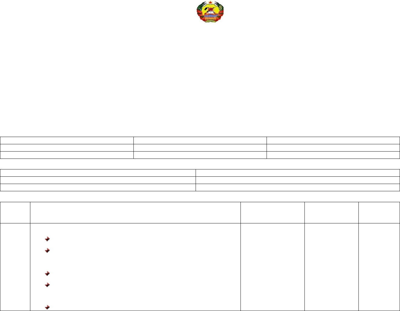 <p>REPÚBLICA DE MOÇAMBIQUE</p><p>MINISTÉRIO DE EDUCAÇÃO E DESENVOLVIMENTO HUMANO</p><p>ESCOLA SECUNDÁRIA DE CATEME</p><p>TETE</p><p>FICHA DE PLANIFICAÇÃO QUINZENAL</p><p>Número de Ficha: 02/2020</p><p>O grupo de disciplina de Química 2º Ciclo</p><p>Curso Diurno Trimestre unico</p><p>1.0. Esteve reunido no dia 30/ 10/ 2020, na sala dos professores, este grupo de disciplina onde estavam presentes os seguintes membros:</p><p>Nome do Professor</p><p>Classe/Turma</p><p>Assinatura</p><p>1. Alberto Zabibe</p><p>2. Casseano Marcelino</p><p>1.1. Faltaram neste encontro do grupo os seguintes membros:</p><p>Nome do Professor</p><p>Classe/Turma</p><p>1.</p><p>2.</p><p>1.2. Conteúdos temáticos para o período quinzenal nas semanas de 19/10/2020 à 30/10/2020</p><p>Classe e semana</p><p>Conteúdos</p><p>Competências</p><p>Métodos</p><p>No de aulas</p><p>12ª</p><p>3ª semana</p><p>Equilíbrio Químico em Solução Aquosa</p><p>· Conceito histórico de ácido e base</p><p>· Teoria ácido/base segundo Bronsted - Lowry. Ião hidrónio. Reacção protolítica.</p><p>· Pares conjugados de ácido/base –</p><p>· Forças de ácidos e de bases. Constantes de ácidos (Ka) e de base (Kb).</p><p>·</p><p>2</p><p>12ª</p><p>4ª semana</p><p>Equilíbrio Químico – II</p><p>· Grau de ionização. Relação entre o grau de ionização e constante de ionização (Ki). Lei da diluição de Ostwald.</p><p>· Soluções ácidas e básicas.</p><p>· Produto iónico da água (Kw), relação entre Ka, Kb e Kw.</p><p>· Exercícios de consolidação.</p><p>30/10/2020 30/10/2020</p><p>O Delegado de disciplina O DAP 2º Ciclo/CD</p><p>__________________________ _____________________________</p><p>Alberto Zabibe João Octávio Rufino</p><p>/DN1/ /DN1/</p><p>image2.jpeg</p>