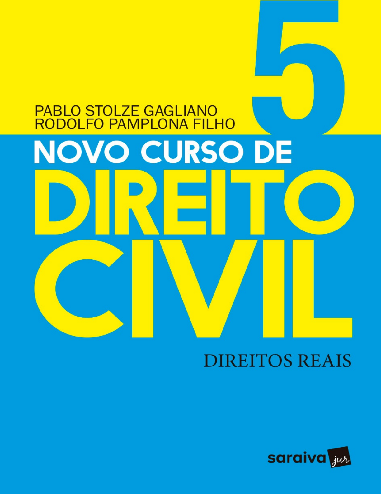 <p>ISBN 9788553609413</p><p>Gagliano, Pablo Stolze</p><p>Novo curso de direito civil, volume 5 : direitos reais / Pablo Stolze Gagliano, Rodolfo Pamplona</p><p>Filho. – São Paulo: Saraiva Educação, 2019.</p><p>1. Direito civil - Brasil 2. Direitos reais - Brasil I. Pamplona Filho, Rodolfo. II. Título.</p><p>18-2002</p><p>CDU 347.6(81)</p><p>Índices para catálogo sistemático:</p><p>1. Brasil : Direito de família : Direito civil 347.6(81)</p><p>Diretoria executiva Flávia Alves Bravin</p><p>Diretora editorial Renata Pascual Müller</p><p>Gerência editorial Roberto Navarro</p><p>Consultoria acadêmica Murilo Angeli Dias dos Santos</p><p>Edição Eveline Gonçalves Denardi (coord.) | Aline Darcy Flôr de Souza</p><p>Produção editorial Ana Cristina Garcia (coord.) | Carolina Massanhi | Luciana Cordeiro</p><p>Shirakawa | Rosana Peroni Fazolari</p><p>Arte e digital Mônica Landi (coord.) | Claudirene de Moura Santos Silva | Guilherme H. M.</p><p>Salvador | Tiago Dela Rosa | Verônica Pivisan Reis</p><p>Planejamento e processos Clarissa Boraschi Maria (coord.) | Juliana Bojczuk Fermino | Kelli</p><p>Priscila Pinto | Marília Cordeiro | Fernando Penteado | Mônica Gonçalves Dias | Tatiana dos</p><p>Santos Romão</p><p>Novos projetos Fernando Alves</p><p>Diagramação (Livro Físico) NSM Soluções Gráficas Ltda.</p><p>Revisão Lílian Moreira</p><p>Capa Paulo Caetano</p><p>Livro digital (E-pub)</p><p>Produção do e-pub Guilherme Henrique Martins Salvador</p><p>Data de fechamento da edição: 10-12-2018</p><p>Dúvidas?</p><p>Acesse www.editorasaraiva.com.br/direito</p><p>Nenhuma parte desta publicação poderá ser reproduzida por qualquer meio ou forma sem a prévia</p><p>autorização da Editora Saraiva.</p><p>A violação dos direitos autorais é crime estabelecido na Lei n. 9.610/98 e punido pelo artigo 184 do</p><p>Código Penal.</p><p>http://www.editorasaraiva.com.br/direito</p><p>Sumário</p><p>Agradecimentos</p><p>Prefácio</p><p>Apresentação</p><p>Nota dos Autores</p><p>Capítulo I</p><p>Noções introdutórias sobre Direitos Reais</p><p>1. Direitos Reais: denominação e conceito</p><p>2. Objeto dos Direitos Reais</p><p>3. Compreensão dos Direitos Reais no diálogo das fontes do Direito</p><p>4. Natureza da relação jurídica real e a distinção entre “direitos reais” e</p><p>“direitos pessoais”</p><p>5. Obrigação propter rem: conceito e distinções (ônus real e obrigação</p><p>com eficácia real)</p><p>6. Classificação dos direitos reais</p><p>Capítulo II</p><p>Principiologia dos Direitos Reais</p><p>1. Introdução</p><p>2. Função social</p><p>3. Tipicidade</p><p>4. Publicidade</p><p>5. Vedação ao abuso de direito</p><p>6. Boa-fé objetiva</p><p>Capítulo III</p><p>Noções gerais sobre posse</p><p>1. Conceito e natureza jurídica</p><p>2. Teorias da posse</p><p>3. Teoria adotada pelo Código Civil</p><p>4. Detenção</p><p>5. Posse de direitos (possessio juris)</p><p>6. Classificação da posse</p><p>6.1. Quanto ao exercício e gozo (posse direta e posse indireta)</p><p>6.2. Quanto à existência de vício (posse justa e posse injusta)</p><p>6.3. Quanto à legitimidade do título ou ao elemento subjetivo (posse</p><p>de boa-fé e posse de má-fé)</p><p>6.4. Quanto ao tempo (posse nova e posse velha)</p><p>6.5. Quanto à proteção (posse ad interdicta e posse ad usucapionem)</p><p>7. Composse</p><p>Capítulo IV</p><p>Aquisição e perda da posse</p><p>1. Introdução</p><p>2. Momento de aquisição da posse</p><p>3. Legitimidade para aquisição da posse</p><p>4. Modalidades de perda da posse</p><p>Capítulo V</p><p>Efeitos da posse</p><p>1. Introdução</p><p>2. Percepção dos frutos e produtos</p><p>3. Responsabilidade pela perda ou deterioração da coisa</p><p>4. Indenização pelas benfeitorias realizadas</p><p>Capítulo VI</p><p>Sistema de proteção possessória</p><p>1. Considerações introdutórias</p><p>2. Compreensão da proteção possessória como um sistema</p><p>2.1. Proteção possessória de direito material</p><p>2.2. Tutela processual da posse</p><p>Capítulo VII</p><p>Noções gerais sobre propriedade</p><p>1. Introdução</p><p>2. Conceito</p><p>3. Propriedade, domínio e direito à propriedade</p><p>4. Elementos constitutivos (poderes inerentes à propriedade)</p><p>5. Características</p><p>6. Extensão</p><p>7. Objeto</p><p>8. Classificação</p><p>8.1. Quanto à extensão do direito do titular (alcance subjetivo)</p><p>8.2. Quanto à perpetuidade do domínio (alcance temporal)</p><p>8.3. Quanto à localização e destinação da propriedade (alcance</p><p>finalístico)</p><p>9. Algumas palavras sobre a função social da propriedade</p><p>10. Tutela processual da propriedade</p><p>Capítulo VIII</p><p>Propriedade fiduciária</p><p>1. Introdução</p><p>2. Conceito e distinção necessária (propriedade resolúvel x</p><p>propriedade ad tempus)</p><p>3. Alienação fiduciária em garantia</p><p>3.1. Conceito</p><p>3.2. Disciplina codificada</p><p>3.3. Alienação fiduciária e adimplemento substancial</p><p>3.4. Noções fundamentais sobre a alienação fiduciária de bens</p><p>imóveis</p><p>Capítulo IX</p><p>Uma visão geral sobre as formas de aquisição de propriedade</p><p>1. Considerações iniciais</p><p>2. Classificação das formas de aquisição de propriedade em originária</p><p>e derivada</p><p>3. Modo de aquisição comum da propriedade mobiliária e imobiliária</p><p>4. Modos de aquisição exclusivos da propriedade imobiliária</p><p>5. Modos de aquisição exclusivos da propriedade mobiliária</p><p>6. Propriedade aparente</p><p>Capítulo X</p><p>Usucapião</p><p>1. Introdução</p><p>2. Conceito e pressupostos</p><p>3. Principais espécies de usucapião</p><p>3.1. Usucapião extraordinária (art. 1.238, CC)</p><p>3.2. Usucapião ordinária (art. 1.242, CC)</p><p>3.3. Usucapião constitucional (ou especial) rural ou pro labore (art.</p><p>191, CF; art. 1.239, CC)</p><p>3.4. Usucapião constitucion