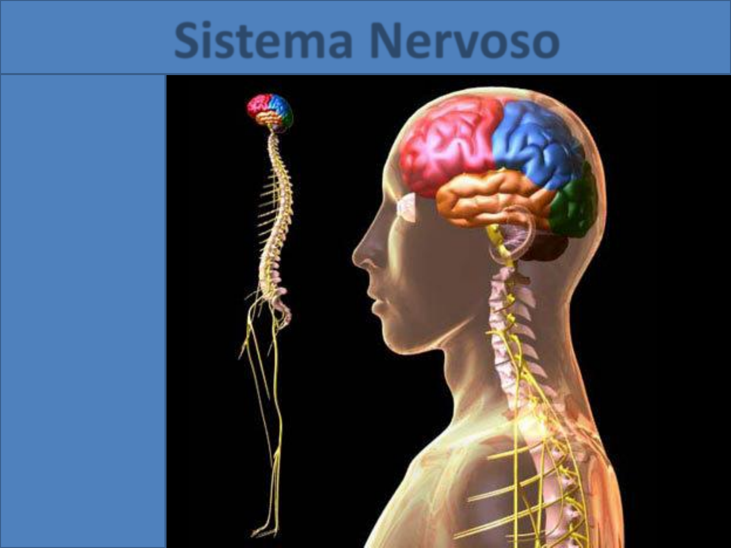 <p>Profº Esp.</p><p>Jean</p><p>Sistema Nervoso</p><p>2</p><p>Sistema Nervoso</p><p>• Função: ajustar o organismo animal ao</p><p>ambiente.</p><p>• Perceber e identificar as condições ambientais</p><p>externas e as condições internas do organismo</p><p>4</p><p>Sentido do Impulso: DENDRITO CORPO CELULAR AXÔNIO</p><p>DENDRITO</p><p>AXÔNIO</p><p>NEURÔNIO: capacidade de gerar</p><p>e propagar sinais elétricos (impulsos).</p><p>5</p><p>TIPOS DE NEURÔNIOS</p><p>DENDRITOS</p><p>CORPO CELULAR CORPO CELULAR</p><p>CORPO CELULAR</p><p>DENDRITOS</p><p>Direção da</p><p>condução AXÔNIO</p><p>AXÔNIO</p><p>AXÔNIO</p><p>NEURÔNIO SENSORIAL</p><p>NEURÔNIO</p><p>ASSOCIATIVO</p><p>NEURÔNIO</p><p>MOTOR</p><p>7</p><p>SINAPSE: região de conexão (sem contato)</p><p>entre dois neurônios: axônio (1) e dendrito (2).</p><p>Extremidade axônica</p><p>dilatada</p><p>Citoplasma contém bolsas</p><p>Bolsas ou vesículas</p><p>se fundem à membrana</p><p>Liberação dos</p><p>neurotransmissores</p><p>na fenda sináptica</p><p>• Transmissão do impulso se dá pela liberação de substâncias químicas:</p><p>ex. acetilcolona</p><p>ex. noradrenalina</p><p>ex. dopamina</p><p>➢ Neuro-hormônios ou Neurotransmissores</p><p>8</p><p>Sinapses</p><p>• Interneuronais: neurônio – neurônio</p><p>• Neuromusculares: neurônio – músculo</p><p>• Neuroglandulares: neurônio – célula glandular</p><p>9</p><p>SINAPSE</p><p>NEURONEURAL</p><p>Vesículas sinápticas</p><p>contém</p><p>NEUROTRANSMISSORES.</p><p>AXÔNIO</p><p>DENDRITO</p><p>Doença de Parkinson</p><p>Sistema Nervoso</p><p>1) Introdução</p><p>O sistema nervoso é responsável pelo ajustamento do organismo ao ambiente. Sua</p><p>função é perceber e identificar as condições ambientais externas, bem como as</p><p>condições reinantes dentro do próprio corpo e elaborar respostas que adaptem a essas</p><p>condições.</p><p>2) Organização do sistema nervoso humano</p><p>Sistema Nervoso Central</p><p>(SNC)</p><p>Encéfalo</p><p>Cérebro</p><p>Cerebelo</p><p>Tronco Encefálico</p><p>Mesencéfalo</p><p>Ponte</p><p>Bulbo</p><p>Medula</p><p>Sistema Nervoso Periférico</p><p>(SNP)</p><p>Nervos cranianos (12 pares)</p><p>Nervos raquidianos (31 pares)</p><p>Terminações nervosas</p><p>12</p><p>Órgãos do SNC</p><p>Sistema Nervoso</p><p>3) Sistema nervoso central (SNC)</p><p>a) Encéfalo</p><p>▪ Possui cerca de 1,4 kg nos adultos</p><p>▪ Está localizado na caixa craniana</p><p>▪ Dividido em 3 partes: cérebro, cerebelo e tronco encefálico</p><p>Encéfalo</p><p>cérebro</p><p>cerebelo</p><p>Tronco encefálico</p><p>Sistema Nervoso</p><p>3) Sistema nervoso central (SNC)</p><p>a) Encéfalo</p><p>I) Cérebro</p><p>▪ Constitui cerca de 90% da massa encefálica</p><p>▪ Sua superfície é bastante pregueada (aumento da superfície)</p><p>▪ Dividido em dois hemisférios (esquerdo e direito)</p><p>▪ Dividido em duas partes:</p><p>o Córtex (externo) – substância cinzenta (corpos neuronais)</p><p>o Região interna – substância branca (dendritos e axônios)</p><p>Sistema Nervoso</p><p>3) Sistema nervoso central (SNC)</p><p>a) Encéfalo</p><p>I) Cérebro</p><p>▪ Funções:</p><p>o Sensações</p><p>o Atos conscientes e voluntários (movimentos)</p><p>o Pensamento</p><p>o Memória</p><p>o Inteligência</p><p>o Aprendizagem</p><p>o Sentidos</p><p>o Equilíbrio</p><p>Sistema Nervoso</p><p>3) Sistema nervoso central (SNC)</p><p>a) Encéfalo</p><p>I) Cérebro</p><p>▪ Tálamo e Hipotálamo (presentes na região inferior do cérebro)</p><p>▪ Tálamo</p><p>o Reorganização dos estímulos nervosos</p><p>o Percepção sensorial (consciência)</p><p>▪ Hipotálamo</p><p>o Regulador da homeostase corporal</p><p>o Temperatura</p><p>o Apetite</p><p>o Balanço hídrico</p><p>o Controle da hipófise e outras glândulas</p><p>Sistema Nervoso</p><p>3) Sistema nervoso central (SNC)</p><p>I) Cérebro</p><p>Tálamo e Hipotálamo</p><p>Tálamo</p><p>Hipotálamo</p><p>Sistema Nervoso</p><p>3) Sistema nervoso central (SNC)</p><p>II) Cerebelo</p><p>▪ Responsável pelo equilíbrio do corpo</p><p>▪ Tônus e vigor muscular</p><p>▪ Orientação espacial</p><p>▪ Coordenação dos movimentos</p><p>Cerebelo</p><p>Sistema Nervoso</p><p>3) Sistema nervoso central (SNC)</p><p>III) Tronco encefálico</p><p>3 divisões:</p><p>▪ Mesencéfalo</p><p>▪ Ponte</p><p>▪ Bulbo</p><p>Mesencéfalo</p><p>Ponte</p><p>Bulbo</p><p>Sistema Nervoso</p><p>3) Sistema nervoso central (SNC)</p><p>III) Tronco encefálico</p><p>▪ Mesencéfalo</p><p>o Recepção e coordenação da contração muscular</p><p>o Postura corporal</p><p>Mesencéfalo</p><p>Sistema Nervoso</p><p>3) Sistema nervoso central (SNC)</p><p>III) Tronco encefálico</p><p>▪ Ponte</p><p>o Manutenção da postura corporal, equilíbrio do corpo e tônus muscular.</p><p>Ponte</p><p>Sistema Nervoso</p><p>3) Sistema nervoso central (SNC)</p><p>III) Tronco encefálico</p><p>▪ Bulbo</p><p>o Controle dos batimentos cardíacos</p><p>o Controle dos movimentos respiratórios</p><p>o Controle da deglutição (engolir)</p><p>Bulbo</p><p>Sistema Nervoso</p><p>3) Sistema nervoso central (SNC)</p><p>b) Medula Espinhal (raque)</p><p>▪ Cordão cilíndrico que parte da base do encéfalo e percorre toda a coluna</p><p>vertebral.</p><p>▪ Aloja-se dentro das perfurações das vértebras.</p><p>▪ Da medula espinhal partem 31 pares de nervos raquidianos</p><p>Sistema Nervoso</p><p>3) Sistema nervoso central (SNC)</p><p>b) Medula Espinhal (raque)</p><p>▪ Funções da medula</p><p>o Recebe as informações de diversas partes do corpo e as enviam para o encéfalo</p><p>e vice-versa.</p><p>o Responsável pelos atos reflexos (reflexo medular).</p><p>Sistema Nervoso</p><p>3) Sistema nervoso central (SNC)</p><p>b) Medula Espinhal (raque)</p><p>▪ Reflexo Medular</p><p>A medula espinhal é capaz de elaborar respostas rápidas em</p><p>situações de emergência, sem a interferência do encéfalo.</p><p>Sistema