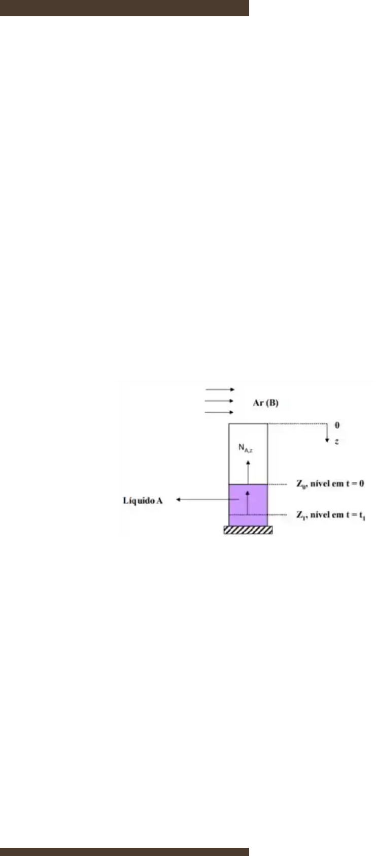 <p>DETERMINAÇÃO DA DIFUSIVIDADE ATRAVAÉS DE UM</p><p>MEIO GASOSO ESTAGNADO</p><p>FENÔMENOS DE TRANSPORTE I I I</p><p>PROFESSORES: ANDREA PEREIRA</p><p>1. INTRODUÇÃO</p><p>Um método simples e bastante preciso para determinação da difusividade em sistemas</p><p>gasosos binários consiste em encher um tubo fino (transparente) com um líquido puro volátil (A) até</p><p>certo nível e fixá-lo verticalmente em uma sala onde o ar é continuamente renovado e a</p><p>temperatura constante. Esta experiência é conhecida como experiência de Stefan (Sherwood et</p><p>al., 1975).</p><p>A determinação da difusividade por este método requer o conhecimento da concentração</p><p>do vapor de A junto à interface e na extremidade superior da coluna de difusão. A concentração</p><p>junto à interface gás-líquido é obtida admitindo o equilíbrio de fase e que os gases A e o ar sejam</p><p>ideais.</p><p>Figura 1. Sistema de difusividade</p><p>2. OBJETIVOS</p><p>• Geral: Estimar o coeficiente de difusão</p><p>• Específicos:</p><p>- Construir dispositivo físico para a estimativa experimental da difusividade.</p><p>- Comparar o coeficiente de difusão experimental com o valor encontrado na literatura.</p><p>2</p><p>3. MATERIAIS E MÉTODOS</p><p>3.1. Materiais</p><p>- Dispositivo físico para a estimativa experimental da difusividade</p><p>- Líquidos: acetona</p><p>3.2. Método experimental</p><p>Após a introdução do líquido no tubo, inicia-se a medida da posição da interface em</p><p>relação a extremidade superior, em função do tempo, anotando em cada medida os valores da</p><p>temperatura e pressão.</p><p>Nos conjuntos montados no laboratório, sem controle de temperatura, convém efetuar as</p><p>medidas de 3:00 em 3:00 horas como objetivo de determinar a curva de temperatura em função</p><p>do tempo. Essa medida servirá para correções devido a influência da temperatura. Entretanto,</p><p>recomenda-se realizar os experimentos em ambiente com temperatura controlada. Para difusão de</p><p>um componente A em um meio estagnado B, tem-se:</p><p>em que z é a distância da extremidade superior da coluna de difusão até a interface gás-líquido; z0</p><p>é o valor de z no instante inicial; C é a concentração da mistura, C = P/RT; t é o tempo do</p><p>experimento; xA é a fração molar de A.</p><p>Dica: Construir uma tabela para anotações das variáveis de medida do laboratório, na sala com</p><p>controle de temperatura.</p><p>4. REFERÊNCIAS</p><p>Sherwood, T. K., Pigford, R. L., Wilke, C. R. “Mass Transfer”, McGraw Kogakusha, LTD., 1975.</p><p>Bird, R.B., Stewart E., Lightfoot, E. N. “Fenômenos dos Transportes”. Primeira edição, Editora LTC, São</p><p>Paulo, 2004.</p><p>Welty, J. R., Wicks, C. E., Wilson, R. E. “Fundamentals of Momentum, Heat, and Mass Transfer”, 4th</p><p>edition, Jonh Wiley & Sons, Inc., New Jersey, 2001.</p>