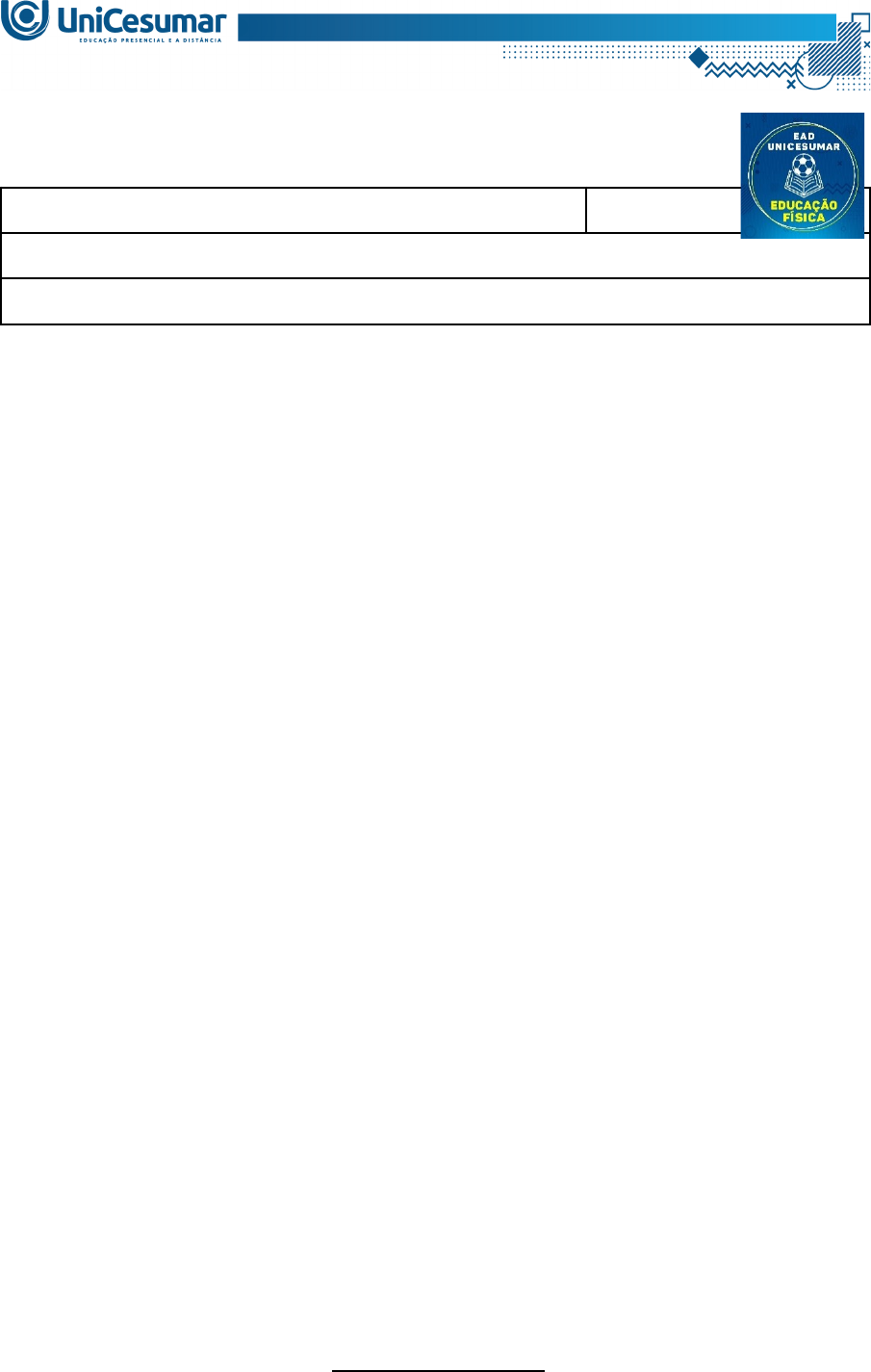 <p>MAPA – Material de Avaliação Prática da Aprendizagem</p><p>Acadêmico:</p><p>R.A.</p><p>Curso: Educação Física</p><p>Disciplina: Esportes Coletivos: Futsal e Futebol</p><p>Instruções para Realização da Atividade</p><p>1. Todos os campos acima deverão ser devidamente preenchidos;</p><p>2. É obrigatória a utilização deste formulário para a realização do MAPA Substitutivo;</p><p>3. Esta é uma atividade individual. Caso identificado cópia de colegas, o trabalho de ambos sofrerá decréscimo de nota;</p><p>4. Utilizando este formulário, realize sua atividade, salve em seu computador, renomeie e envie em forma de anexo;</p><p>5. Formatação exigida para esta atividade: documento Word, Fonte Arial ou Times New Roman tamanho 12, Espaçamento entre linhas 1,5, texto justificado;</p><p>6. Ao utilizar quaisquer materiais de pesquisa referencie conforme as normas da ABNT;</p><p>7. Critérios de avaliação: Utilização do template; Atendimento ao Tema; Constituição dos argumentos e organização das Ideias; Correção Gramatical e atendimento às normas ABNT.</p><p>8. Procure argumentar de forma clara e objetiva, de acordo com o conteúdo da disciplina.</p><p>Em caso de dúvidas, entre em contato com seu Professor Mediador.</p><p>Bons estudos!</p><p>ATIVIDADE MAPA</p><p>ESPORTES COLETIVOS: FUTSAL E FUTEBOL</p><p>Como futuro professor de Educação Física e treinador esportivo, conhecer e vivenciar os aspectos práticos (lógica interna) associados às modalidades esportivas é essencial para que você possa acumular experiências autênticas, possibilitando, então, que esses conhecimentos sejam, posteriormente, transferidos aos alunos durante as aulas de Educação Física e sessões de treinamento. Essas vivências permitem que o processo de ensino-aprendizagem e treinamento ocorra de maneira satisfatória. Freire (2003) apresenta quatro princípios pedagógicos norteadores para o ensino do futebol, sendo eles: ensinar futebol a todos; ensinar futebol bem a todos; ensinar mais que futebol a todos; e ensinar a gostar do esporte.</p><p>Fonte: FREIRE, J. B. Pedagogia do Futebol. Campinas: Autores Associados, 2003.</p><p>Com base no texto, para a proposta da Atividade MAPA, você deverá planejar (descrever em texto e imagem) DUAS atividades para uma AULA/um TREINO da modalidade FUTSAL, sendo uma que contemple o princípio pedagógico “ensinar mais que futebol todos” e outra que contemple “ensinar a gostar do esporte”.</p><p>As atividades deverão conter:</p><p>a) Faixa etária (idade dos alunos/atletas que a atividade proposta pode ser realizada);</p><p>b) Local (onde a atividade será realizada. Ex: campo);</p><p>c) Objetivo (objetivo principal da atividade);</p><p>d) Material (material que será utilizado para realização da atividade. Ex: bolas, cones, etc.);</p><p>e) Organização do espaço e da turma (como a atividade será organizada. Ex: Dois grupos, duas fileiras, etc.);</p><p>f) Desenvolvimento (como a atividade acontece/é realizada);</p><p>g) Variação (outra forma de realizar a atividade);</p><p>h) Imagem da atividade (imagem que auxilia no entendimento da atividade. A imagem pode ser elaborada por você ou disponível na internet);</p><p>Passo a passo:</p><p>· 1. Acesse o livro da disciplina para entender os dois princípios (Ensinar mais que futebol a todos e Ensinar a gostar do esporte) para poder elaborar as atividades.</p><p>· 2. Elabore uma atividade para cada princípio solicitado. Ou seja, serão DUAS atividades no total.</p><p>· 3. Siga a organização das atividades descrita anteriorrmente.</p><p>ATIVIDADE 1</p><p>Princípio pedagógico:</p><p>Ensinar mais que futebol todos</p><p>Nome da atividade:</p><p>Faixa etária:</p><p>Local</p><p>Objetivo:</p><p>Materiais:</p><p>Organização do espaço da turma:</p><p>Desenvolvimento:</p><p>Variação:</p><p>Imagem:</p><p>[Cole a imagem aqui]</p><p>ATIVIDADE 2</p><p>Princípio pedagógico:</p><p>Ensinar a gostar do esporte</p><p>Nome da atividade:</p><p>Faixa etária:</p><p>Local</p><p>Objetivo:</p><p>Materiais:</p><p>Organização do espaço da turma:</p><p>Desenvolvimento:</p><p>Variação:</p><p>Imagem:</p><p>[Cole a imagem aqui]</p><p>Orientações finais:</p><p>· Cópias parciais ou totais serão zeradas.</p><p>· Poste seu arquivo em formato word (.doc) ou PDF. Outros formatos não serão aceitos.</p><p>· Certifique-se se o arquivo enviado está correto. Em caso de problemas, envie sua dúvida para o seu professor mediador.</p><p>· Todas as atividades do curso são avaliadas conforme a solicitação. Sendo assim, o descumprimento dessas orientações pode acarretar algum desconto na nota.</p><p>image1.jpeg</p><p>image2.png</p>