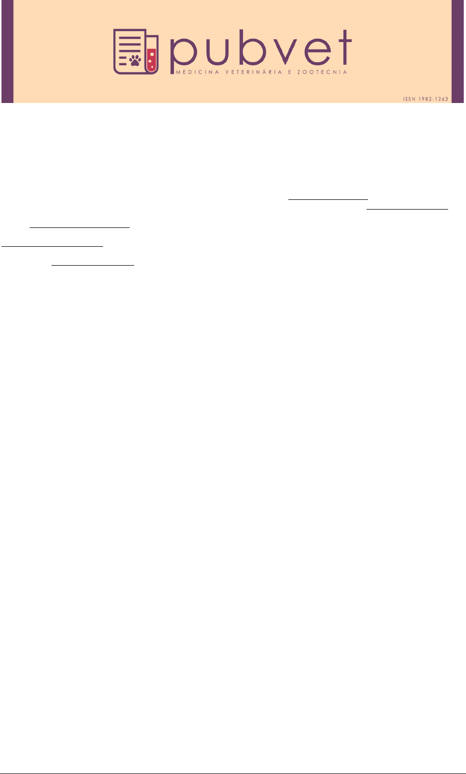 <p>H T T P : / / D X . D O I . O R G / 1 0 . 2 2 2 5 6 / P U B V E T . V 1 1 N 8 . 7 8 1 - 7 8 8</p><p>PUBVET v.11, n.8, p.781-788, Ago., 2017</p><p>Estado físico e risco anestésico em cães e gatos: Revisão</p><p>Nhirneyla Marques Rodrigues1*, Ana Maria Quessada2, Aeyphanny Carlandy Moraes3,</p><p>Sávio Soares Barbosa Dantas4, Karina de Kássia da Silva Sales5</p><p>1Mestre em Ciência Animal da Universidade Federal do Piauí, Teresina, Piauí, Brasil – nhirneyla@hotmail.com*Autor para correspondência</p><p>2Professora na área de Ciência Animal da Universidade Paranaense – UNIPAR, Umuarama, Paraná, Brasil – quessadavet@gmail.com</p><p>3Residente Multiprofissional em Medicina Veterinária – Área: Anestesiologia Veterinária. Universidade de Brasília, Brasília, Distrito Federal,</p><p>Brasil – phanny_moraes@hotmail.com</p><p>4Residente Multiprofissional em Medicina Veterinária – Área: Patologia Clínica. Universidade Federal do Piauí, Teresina Piauí, Brasil –</p><p>savioveterinario@hotmail.com</p><p>5Médica Veterinária, formada pela Universidade Federal do Piauí. Especialista em Clínica e Cirurgia de Cães e Gatos – Qualittas, Teresina,</p><p>Piauí, Brasil – carinaksales@gmail.com</p><p>RESUMO. Grande valia é dada à anestesia desde a sua descoberta. Fato que revolucionou</p><p>diversas áreas médicas, incluindo a Medicina Veterinária. Para que a anestesia possa ser</p><p>conduzida de modo adequado e satisfatório, exige-se uma avaliação prévia do paciente a</p><p>ser submetido à cirurgia, como revisão ao histórico clínico, exame físico, exames</p><p>complementares e por fim, uma avaliação de risco e estado físico. Sendo importante para</p><p>direcionar o paciente para um protocolo anestésico condizente ao seu estado de saúde, bem</p><p>como predizer o prognóstico do mesmo. Esta classificação de risco e estado físico, adotada</p><p>pela Sociedade Americana de Anestesiologistas (ASA) é aceita e utilizada mundialmente</p><p>por médicos humanos e veterinários, e amplamente abordada em trabalhos científicos que</p><p>envolvem a anestesiologia, justificando-se assim, a grande importância da mesma, sendo o</p><p>objetivo de estudo desta revisão.</p><p>Palavras chave: Anestesia, cirurgia, canino, felino</p><p>Physical state and anesthetic risk in dogs and cats: Review</p><p>ABSTRACT. Great value has been given to anesthesia since its discovery. A fact that has</p><p>revolutionized several medical areas, including Veterinary Medicine. In order for</p><p>anesthesia to be conducted adequately and satisfactorily, a prior evaluation of the patient</p><p>to be submitted to surgery, such as a review of the clinical history, physical examination,</p><p>complementary exams and, finally, a risk assessment and physical condition is required. It</p><p>is important to direct the patient to an anesthetic protocol appropriate to their state of health,</p><p>as well as to predict the prognosis of the same. This classification of risk and physical</p><p>status, adopted by the American Society of Anesthesiologists (ASA), is accepted and used</p><p>worldwide by human and veterinary doctors, and is widely discussed in scientific works</p><p>involving anesthesiology, justifying its great importance, being the objective of this review.</p><p>Keywords: Anesthesia, surgery, canine, feline</p><p>Estado físico y riesgo anestésico en perros y gatos: Revisión</p><p>RESUMEN. Gran validez se ha dado a la anestesia desde su descubrimiento. Hecho que</p><p>revolucionó diversas áreas médicas, incluyendo la Medicina Veterinaria. Para que la</p><p>anestesia pueda ser conducida de manera adecuada y satisfactoria, se requiere una</p><p>evaluación previa del paciente a ser sometido a la cirugía, como revisión del historial</p><p>clínico, examen físico, exámenes complementarios y por fin, una evaluación de riesgo y</p><p>estado físico. Es importante para dirigir al paciente a un protocolo anestésico que concuerde</p><p>http://dx.doi.org/10.22256/PUBVET.V11N8.781-788</p><p>http://www.pubvet.com.br/</p><p>http://lattes.cnpq.br/1176828629981109</p><p>http://lattes.cnpq.br/6606231521367871</p><p>http://lattes.cnpq.br/7805112808314039</p><p>http://lattes.cnpq.br/6873901750413983</p><p>mailto:nhirneyla@hotmail.com</p><p>mailto:quessadavet@gmail.com</p><p>mailto:phanny_moraes@hotmail.com</p><p>mailto:savioveterinario@hotmail.com</p><p>mailto:carinaksales@gmail.com</p><p>Rodrigues et al. 782</p><p>PUBVET v.11, n.8, p.781-788, Ago., 2017</p><p>con su estado de salud, así como predecir el pronóstico del mismo. Esta clasificación de</p><p>riesgo y estado físico, adoptada por la Sociedad Americana de Anestesiólogos (ASA) es</p><p>aceptada y utilizada mundialmente por médicos humanos y veterinarios, y ampliamente</p><p>abordada en trabajos científicos que involucran la anestesiología, justificándose así, la gran</p><p>importancia de la misma, siendo el objetivo de estudio de esta revisión.</p><p>Palabras clave: anestesia, canino, cirugía, felino</p><p>Introdução</p><p>Há muito tempo, a cirurgia era considerada</p><p>como algo impiedoso. Assim, um grande salto foi</p><p>dado ao se descobrir a anestesia, que é tida até hoje</p><p>como uma das invenções mais valorizadas e</p><p>importantes para a humanidade (Santos et al.,</p><p>2015). Cirurgia e anestesia, que passaram então a</p><p>ser modalidades clínicas indissociáveis, foram</p><p>utilizadas primariamente em seres humanos, por</p><p>profissionais da área médica, alquimistas e</p><p>dentistas, que à época, usavam técnicas</p><p>rudimentares em anestesia de modo a tentar</p><p>minimizar a dor produzida em procedimentos</p><p>cirúrgicos (Aguiar, 2002).</p><p>O primeiro profissional a utilizar a anestesia</p><p>com propósitos cirúrgicos foi o médico Crawford</p><p>Williamson Long no ano de 1842. No entanto, só</p><p>teve seus casos publicados apenas em 1849. Deste</p><p>modo, o dentista Wi