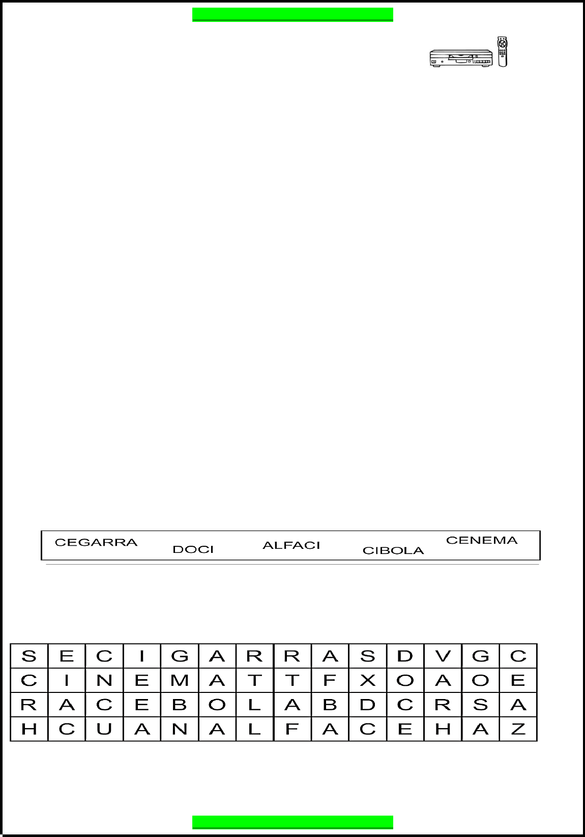 <p>ATIVIDADES DE CASA- 05/08/2024</p><p>1) LEIA O TEXTO SEGUINTE: CINEMA EM CASA (GRAÇA BOQUET)</p><p>CIBELE GANHOU UM APARELHO DE DVD NO SEU ANIVERSÁRIO. DONA CECÍLIA,</p><p>SUA MÃE, ALUGOU O FILME CINDERELA, NA LOCADORA DA CIDADE.</p><p>CIBELE CONVIDOU SUA AMIGA ALICE PARA ASSISTIREM AO FILME JUNTAS.</p><p>ALICE LEVOU DELICIOSAS BALAS DE CEREJAS E CIBELE FEZ PIPOCA DOCE.</p><p>DONA CECÍLIA DISSE:</p><p>SEMANA QUE VEM VOU ALUGAR PARA VOCÊS O FILME: ALICE NO PAÍS</p><p>DAS MARAVILHAS.</p><p>- OBA! E VOCÊ, AMIGA, É A MINHA CONVIDADA DE NOVO - DISSE CIBELE À ALICE.</p><p>2) CIRCULE NO TEXTO DE AMARELO TODAS AS PALAVRAS ESCRITAS COM CE-CI.</p><p>3) INTERPRETAÇÃO DO TEXTO:</p><p>A) QUAL É O NOME DO FILME QUE AS MENINAS ASSISTIRAM? __________________________</p><p>B) O QUE CIBELE ALUGOU? _________________________________________________________</p><p>B) O QUE CIBELE FEZ PARA COMER? ________________________________________________</p><p>C) QUAL É O PRÓXIMO FILME QUE AS MENINAS IRÃO ASSISTIR? ________________________</p><p>_________________________________________________________________________________</p><p>4) AS PALAVRAS ABAIXO ESTÃO ESCRITAS ERRADAS, CORRIJA-AS E PROCURE AS NO</p><p>CAÇA-PALAVRAS, CIRCULANDO-AS USANDO CORES DIFERENTES.</p><p>_____________________________________________________________________________</p><p>_____________________________________________________________________________</p><p>5) SEPARE AS SÍLABAS DAS PALAVRAS DO CAÇA-PALAVRAS E CLASSIFIQUE-AS QUANTO</p><p>AO NÚMERO DE SÍLABAS.</p><p>ATIVIDADES DE CASA- 06/08/2024</p><p>1) COMPLETE A SEQUÊNCIA NUMÉRICA ATÉ O 399:</p><p>A) QUAL É O MAIOR NUMERAL DA SEQUÊNCIA ACIMA? ____________________________</p><p>B) QUAL É O MENOR NUMERAL DA SEQUÊNCIA ACIMA? ___________________________</p><p>C) COLORIR DE AMARELO OS NÚMEROS PARES DA SEQUÊNCIA.</p><p>2) ESCREVA POR EXTENSO:</p><p>3) ESCREVA O ANTECESSOR E O SUCESSOR:</p><p>ATIVIDADES DE CASA- 07/08/2024</p><p>1) LEIA O TEXTO SEGUINTE: O FOGUETE</p><p>O FOGUETE FOI LANÇADO PARA CHEGAR EM MARTE.</p><p>A MISSÃO É A SEGUINTE: ENCONTRAR ÁGUA E VIDA EM MARTE.</p><p>UM ROBÔ VAI GUIAR O FOGUETE PELO ESPAÇO.</p><p>TODOS NÓS AGUARDAREMOS ANSIOSOS AQUI NA TERRA.</p><p>SERÁ QUE O FOGUETE VAI CONSEGUIR CHEGAR LÁ EM MARTE?</p><p>2) RESPONDA COM ATENÇÃO:</p><p>A) QUAL É O NOME DO TEXTO? _____________________________________________________</p><p>B) PARA ONDE O FOGUETE FOI LANÇADO? __________________________________________</p><p>C) QUAL É A MISSÃO? ____________________________________________________________</p><p>D) QUEM VAI GUIAR O FOGUETE? ___________________________________________________</p><p>E) QUEM VAI AGUARDAR NA TERRA? ________________________________________________</p><p>3) SIGA AS SETAS E FORME AS PALAVRAS:</p><p>4) COMPLETE AS PALAVRAS COM AS SÍLABAS ABAIXO E FORME AS PALAVRAS:</p><p>ATIVIDADES DE CASA- 08/08/2024</p><p>1) RESOLVER AS SUBTRAÇÕES E COLORIR OS RESULTADOS:</p><p>2) ESCREVA OS RESULTADOS ACIMA POR EXTENSO.</p><p>3) ESCREVA NAS ETIQUETAS OS VALORES DOS PRODUTOS EM PROMOÇÃO E DEPOIS RESPONDA:</p><p>A) QUAL É O PRODUTO MAIS CARO? ________________________________________________</p><p>B) QUAL É O PRODUTO MAIS BARATO? ______________________________________________</p><p>image6.jpeg</p><p>image7.jpeg</p><p>image8.png</p><p>image10.jpeg</p><p>image11.png</p><p>image1.jpeg</p><p>image2.png</p><p>image4.png</p>