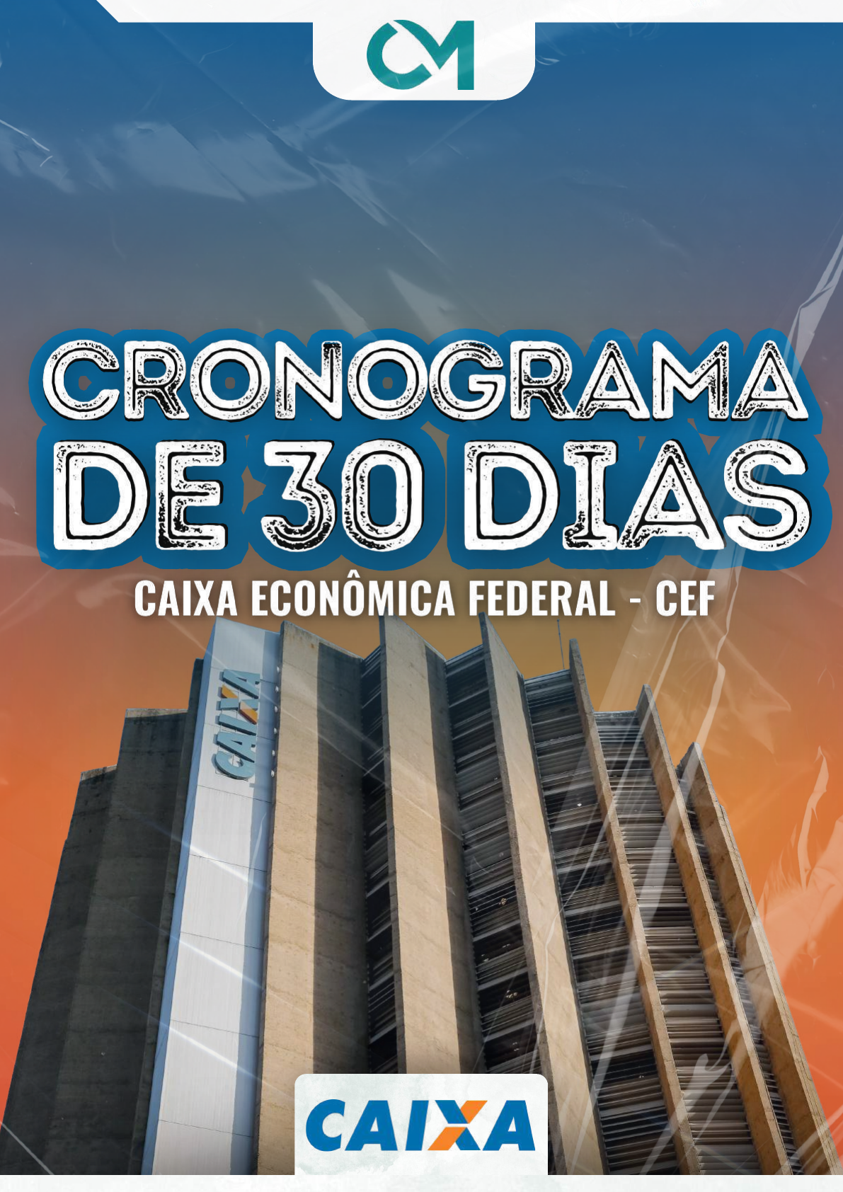 <p>CRONOGRAMACRONOGRAMA</p><p>DE 30 DIASDE 30 DIAS</p><p>MAXWILLER N BARBOSA - maxwiller.20@gmail.com - CPF: 052.369.063-00</p><p>Parabéns futuro(a) aprovado, por ter dado esse passo importante para</p><p>sua aprovação. Temos a plena convicção de que este material irá</p><p>facilitar a sua organização e memorização nos estudos.</p><p>Você acaba de ter acesso ao cronograma 30 dias do Caderno</p><p>Mapeado da concurso da Caixa Econômica Federal - CEF. Esse</p><p>material tem como objetivo traçar um plano de leitura de todos os eixos</p><p>cobrados nesse certame, de modo que o aluno consiga vencer todo o</p><p>edital no prazo estipulado.</p><p>A constância e organização nos estudos é fundamental, uma vez que</p><p>esses fatores irão facilitar a sua jornada de concurseiro, fazendo com</p><p>que o seu aproveitamento nos estudos eleve cada vez mais.</p><p>Caso tenha qualquer dúvida, você pode entrar em contato conosco</p><p>enviando seus questionamentos para o seguinte e-mail:</p><p>cadernomapeado@gmail.com</p><p>Bora pra cima!</p><p>Bons estudos</p><p>02</p><p>Seja muito bem-vindoSeja muito bem-vindo</p><p>MAXWILLER N BARBOSA - maxwiller.20@gmail.com - CPF: 052.369.063-00</p><p>DIA DISCIPLINA ASSUNTO ESTUDO R1 R2 R3</p><p>01</p><p>CONHECIMENTOS</p><p>BANCÁRIOS</p><p>Estatuto social da caixa (pag. 13 a 21)</p><p>Sistema Financeiro Nacional</p><p>(pag. 21 a 41)</p><p>Mercado financeiro e seus desdobramentos</p><p>(pag. 41 a 48)</p><p>02 PORTUGUÊS</p><p>Compreensão e interpretação de textos</p><p>(pag. 8 a 14)</p><p>Tipologia textual (pag. 14 a 22)</p><p>Classe de palavras (pag. 22 a 44)</p><p>03</p><p>COMPORTAMENTOS</p><p>ÉTICOS E</p><p>COMPLIANCE</p><p>Prevenção à lavagem de dinheiro</p><p>(pag. 9 a 29)</p><p>Conceitos e medidas de enfrentamento ao</p><p>assédio moral e sexual (pag. 29 a 33)</p><p>04</p><p>CONHECIMENTOS DE</p><p>TECNOLOGIA DA</p><p>INFORMAÇÃO E</p><p>COMUNICAÇÃO</p><p>Conhecimento de edição de textos,</p><p>planilhas e apresentações (pag. 8 a 27)</p><p>Segurança da informação (pag. 27 a 37)</p><p>05</p><p>CONHECIMENTOS</p><p>BANCÁRIOS</p><p>Atualidades do mercado financeiro</p><p>(pag. 48 a 50)</p><p>Internet Banking (pag. 50 a 50)</p><p>Mobile Banking (pag. 50 a 51)</p><p>Open banking (pag. 51 a 54)</p><p>Novos modelos de negócios (pag. 54 a 56)</p><p>Fintechs, Startups e Big Techs</p><p>(pag. 56 a 56)</p><p>Sistemas de banco-sombra - Shadow</p><p>banking (pag. 56 a 57)</p><p>O dinheiro na era digital (pag. 57 a 58)</p><p>Correspondentes bancários (pag. 60 a 60)</p><p>Sistema de pagamentos instantâneos</p><p>(pag. 60 a 61)</p><p>Transformação digital no sistema financeiro</p><p>(pag. 61 a 62)</p><p>Moeda e política monetária (pag. 62 a 66)</p><p>03</p><p>"Toda ação humana, quer se torne positiva ou negativa, precisa depender de motivação."</p><p>Dalai Lama</p><p>cronogramacronograma</p><p>MAXWILLER N BARBOSA - maxwiller.20@gmail.com - CPF: 052.369.063-00</p><p>DIA DISCIPLINA ASSUNTO ESTUDO R1 R2 R3</p><p>06</p><p>ATENDIMENTO</p><p>BANCÁRIO</p><p>Ações para aumentar o valor percebido</p><p>pelo cliente (pag. 11 a 20)</p><p>Gestão da experiência do cliente</p><p>(pag. 20 a 23)</p><p>Técnicas de vendas (pag. 23 a 26)</p><p>07</p><p>CONHECIMENTOS E</p><p>COMPORTAMENTOS</p><p>DIGITAIS</p><p>Leitura completa da parte 1 do material</p><p>08</p><p>ATENDIMENTO</p><p>BANCÁRIO</p><p>Noções de marketing digital (pag. 26 a 32)</p><p>Ética e conduta profissional em vendas</p><p>(pag. 32 a 33)</p><p>Clientecentrismo (pag. 33 a 35)</p><p>Padrões de qualidade do atendimento ao</p><p>cliente (pag. 35 a 36)</p><p>Atendimento qualificado por canais</p><p>remotos (pag. 36 a 38)</p><p>09</p><p>COMPORTAMENTOS</p><p>ÉTICOS E</p><p>COMPLIANCE</p><p>Atitudes éticas (pag. 33 a 42)</p><p>Segurança da informação (pag. 42 a 57)</p><p>10</p><p>CONHECIMENTOS</p><p>BANCÁRIOS</p><p>Orçamento público, títulos do tesouro</p><p>nacional e dívida pública (pag. 66 a 84)</p><p>Produtos bancários (pag. 84 a 114)</p><p>11</p><p>CONHECIMENTOS DE</p><p>TECNOLOGIA DA</p><p>INFORMAÇÃO E</p><p>COMUNICAÇÃO</p><p>Organização e gerenciamento de</p><p>informações (pag. 37 a 40)</p><p>Rede de computadores (pag. 40 a 47)</p><p>Navegador web (pag. 47 a 56)</p><p>Correio eletrônico (pag. 56 a 61)</p><p>12 PORTUGUÊS</p><p>Ortografia oficial e acentuação gráfica</p><p>(pag. 44 a 50)</p><p>Uso do sinal indicativo de crase</p><p>(pag. 50 a 53)</p><p>Sintaxe da oração e do período</p><p>(pag. 53 a 68)</p><p>04</p><p>"Toda ação humana, quer se torne positiva ou negativa, precisa depender de motivação."</p><p>Dalai Lama</p><p>cronogramacronograma</p><p>MAXWILLER N BARBOSA - maxwiller.20@gmail.com - CPF: 052.369.063-00</p><p>DIA DISCIPLINA ASSUNTO ESTUDO R1 R2 R3</p><p>13</p><p>CONHECIMENTOS</p><p>BANCÁRIOS</p><p>Noções de mercado de capitais</p><p>(pag. 114 a 115)</p><p>Noções de mercado de câmbio</p><p>(pag. 115 a 116)</p><p>Regimes de taxas de câmbio fixas,</p><p>flutuantes e regimes intermediários</p><p>(pag. 116)</p><p>Taxa de câmbio nominais e reais</p><p>(pag. 118 a 119)</p><p>Impactos das taxas de câmbio sobre as</p><p>exportações e importações</p><p>(pag. 119 a 120)</p><p>Diferencial de juros interno e externo</p><p>(pag. 120 a 120)</p><p>14</p><p>LÍNGUA INGLESA</p><p>Itens gramaticais relevantes para a</p><p>compreensão de textos semânticos</p><p>(pag. 8 a 8)</p><p>Classe de palavras (pag. 8 a 37)</p><p>Pronomes pessoais e preposição</p><p>(pag. 37 a 43)</p><p>15</p><p>ATENDIMENTO</p><p>BANCÁRIO</p><p>Comportamento do consumidor e sua</p><p>relação com vendas e negociações</p><p>(pag. 38 a 39)</p><p>Política de relacionamento com o cliente</p><p>(pag. 39 a 44)</p><p>Constituição e funcionamento de</p><p>componente organizacional da ouvidoria</p><p>(pag. 44 a 51)</p><p>Diversidade e inclusão (pag. 51 a 72)</p><p>16</p><p>MATEMÁTICA</p><p>FINANCEIRA Leitura do material completo</p><p>17</p><p>COMPORTAMENTOS