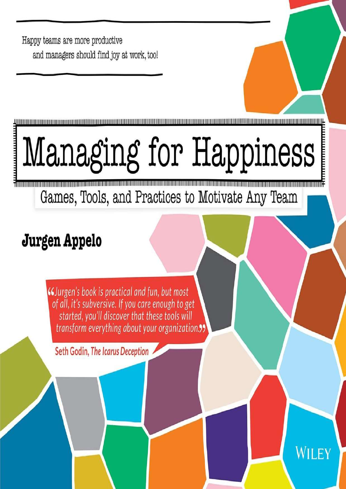 <p>Engage people, improve work, and delight clients: These are the tenets of this</p><p>amazing book, which will show you how to transform the entire layer of</p><p>management in your organization</p><p>into a wellspring of creativity, productivity, and engagement. Excellent!</p><p>Marshall Goldsmith</p><p>A Thinkers Top 50 Expert, Top Ten Global Business Thinker, and top-</p><p>ranked Executive Coach Jurgen’s book is practical and fun, but most of all,</p><p>it’s subversive. If you care enough to get started, you’ll discover that these</p><p>tools will transform everything about your organization.</p><p>Today, all managers are marketers. You need to sell your ideas, your plans,</p><p>and your solutions.</p><p>Seth Godin</p><p>Managing for Happiness sets you on a path to success in a world where we</p><p>are each responsible Author of The Icarus Deception</p><p>for managing our own career and our own contribution to the world.</p><p>Penelope Trunk</p><p>Brilliant, counterintuitive, and creative approach to management. Very</p><p>insightful and hu</p><p>Author of Brazen Careerist: The New Rules for Success</p><p>manistic. Highly recommended!</p><p>Derek Sivers</p><p>How do you become one of the best managers in the world? Sports</p><p>professionals would hire</p><p>Founder of CD Baby, TED speaker, author of Anything You Want</p><p>a good coach and exercise daily. Managing for Happiness from Jurgen</p><p>Appelo is your personal coach who gives you tons of exercises and practical</p><p>advice for the modern manager. The only Managing for Happiness is the best</p><p>walkabout in a constantly evolving landscape of thing you need to add is the</p><p>daily exercising.</p><p>management.</p><p>Tobias Leisgang</p><p>Tomas Rybing</p><p>Systems Engineering Manager at Texas Instruments</p><p>Director Project Management at Aptilo Networks</p><p>In a rapidly changing world where predictable Newtonian doctrine is no</p><p>longer up to the chal In our always-on, real-time world, the nature of work</p><p>has changed, potentially for the</p><p>lenges being placed on managers, Jurgen Appelo’s timely book provides an</p><p>incredibly accessi better. While people can be more autonomous and more</p><p>productive, they can also self-de</p><p>ble leap into the thinking that is likely to define the manager of tomorrow.</p><p>struct easier. Jurgen tackles these important changes in his fun and interesting</p><p>book.</p><p>Deane Sloan</p><p>David Meerman Scott</p><p>Chief Technology Officer at Equinox IT</p><p>Bestselling author of The New Rules of Marketing and PR</p><p>Want to know what the next stage of management may look like? Do yourself</p><p>a favor and take</p><p>Don t wait for managers to fix management problems around you. Be the</p><p>manager of your</p><p>a look at Managing for Happiness by Jurgen Appelo. Chock full of</p><p>management nuggets as well own fate and take action instead! This insightful</p><p>book will not only help you get on the right as exercises and activities,</p><p>Managing for Happiness provides insights into how to engage the track, but</p><p>will also teach you how to enable people around you so that you can create a</p><p>next-generation workforce.</p><p>better working environment for yourself.</p><p>John Baldoni</p><p>Kamil Posiadała</p><p>Author of MOXIE: The Secret to Bold and Gutsy Leadership, Chair of</p><p>Leadership Development at Agile Software Developer</p><p>N2Growth</p><p>Do you want a feel-good book about management? Enjoy reading Managing</p><p>for Happiness.</p><p>Every chapter is full of aha! moments. I read it in public transport, and I</p><p>reached the office with a smile and great ideas to improve the workplace.</p><p>Jeanne Estelle Thebault</p><p>If management is too important to leave it to managers only, then the agile</p><p>management</p><p>President of Montreal IIBA Chapter</p><p>practices described by Jurgen Appelo in this book are way too valuable to</p><p>apply them only to the IT environment. Motivated, nimble, and versatile</p><p>teams are a pillar of success in today’s Steering a software factory team of</p><p>700 people, I’m confronted every day with the challenge world of financial</p><p>services. You will find out how to build them from this book!</p><p>to unleash the best out of our people and our teams in order for happy</p><p>customers to receive Tomasz Sitkowski</p><p>high-quality software every two weeks. This book provides our teams with</p><p>insights, tools,</p><p>Acting CRO at mBank CZ/SK</p><p>stories, games . . . to keep our people doing the right thing right, with passion.</p><p>Johan Lybaert</p><p>As the current generation enjoys work-life integration, people will look and</p><p>respond to “lean Director of Applications Europe at Cegeka</p><p>forward” management. Managing for Happiness will provide a complete</p><p>guide to step out of the office and contribute to a culture of success as a goal</p><p>while having fun as your journey.</p><p>Do you dream of a management more adapted to the complexity of our</p><p>world? Great news,</p><p>Sebastián Diéguez</p><p>this is a reality! Managing for Happiness by Jurgen Appelo is the toolbox of</p><p>the agile gardener Agile Coach and Evangelist</p><p>who promotes collaboration, builds the team around common values, grows</p><p>skills, and moti</p><p>vates his coworkers. You now have the keys to change the world. Like me,</p><p>read this inspiring Many authors make claims, but Jurgen Appelo delivers on</p><p>them. He offers a combination of</p><p>book and cultivate happiness in your organization.</p><p>crisp, articulate thoughts in an easy, engaging read. If you’re looking for</p><p>actionable advice Loïc Leofold</p><p>that will help you build a better, stronger, and more productive relationship</p><p>with those you AGILE and Management Consultant at Astrakhan</p><p>lead, then I’d highly recommend you read Jurgen s book.</p><p>Mike Myatt</p><p>Leadership is hard to get