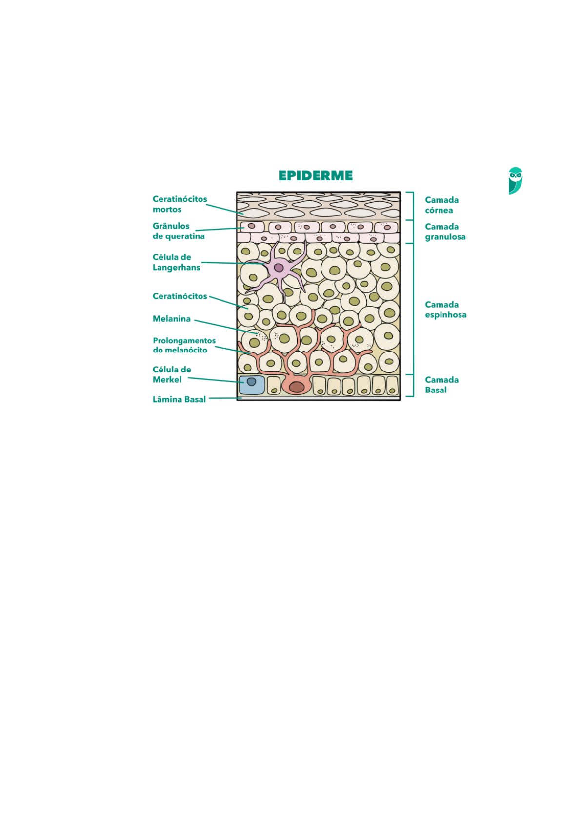 <p>Apo���l� His����gi�</p><p>Tecido Epitelial</p><p>● Ao lado do tecido epitelial sempre teremos um tecido conjuntivo frouxo.</p><p>● Os plexos nervosos, que garantem a sensibilidade do epitélio, vêm do conjuntivo frouxo. Além disso, o</p><p>epitelial vai ser nutrido de todas as maneiras pelo tecido adicional, garantindo assim sua vitalidade.</p><p>● As células da camada basal liberam entactina e laminina em suas bases (compostas de matriz</p><p>extracelular). Essas substâncias ( sinalizadoras), interagem e formam a lâmina lúcida, que estão</p><p>diretamente ligadas às células e influem diretamente no metabolismo dessas mesmas células.</p><p>● A lâmina lúcida, comunica com a lâmina basal para que ocorra diferenciação de células (Células de</p><p>Merkel)</p><p>● Com o metabolismo completo elas liberam o colágeno tipo 4, que dá origem a lâmina densa (em trama</p><p>tridimensional- como uma peneira) logo em seguida da lâmina lúcida. A lâmina densa atua no processo</p><p>de “filtração” de substâncias</p><p>- A lâmina densa não precisa estar em contato com as células pois não atua diretamente sobre elas.</p><p>● A junção da lâmina lúcida com a lâmina densa da origem a lâmina basal ( que é uma matriz extracelular</p><p>do tecido epitelial) (MEC)</p><p>- Influencia a filtração molecular, metabolismo e interações.</p><p>● A lâmina reticular( ancoragem) vem logo abaixo da lâmina basal. O colágeno 3 e as fibras reticulares</p><p>são formados pelo tecido conjuntivo (matriz extracelular do tecido conjuntivo)</p><p>● A união das três lâminas (lúcida, densa e reticular) dão origem à MEMBRANA BASAL ( não é lâmina</p><p>basal)</p><p>● A lâmina própria (vêm dps da lâmina basal) delimita o tecido conjuntivo. Conjuntivo e lâmina própria</p><p>são sinônimos</p><p>Origem embrionária e estruturação</p><p>● os três folhetos podem produzir o tecido epitelial</p><p>● Suas funções envolvem;</p><p>Revestimento e proteção das superfícies; Revestimento dos tratos, respiratórios, urogenitais,</p><p>digestivos; Revestimento interno dos vasos (endotélio); Revestimento da cavidade pleural, pericárdica e</p><p>peritoneal (mesotélio); Absorção; Secretora; Percepção de estímulos; Contração.</p><p>● As células do epitélio estão coesas e se comunicam devido às junções intercelulares.</p><p>● A vedação das células (zônula de oclusão) se deve a um conjunto específico de proteínas ( ocludina e</p><p>claudina) que interagem com a células látero-apical.</p><p>● A zônula de adesão (formada pela Vinculina e Catenina) são junções aderentes que conectam as</p><p>células umas às outras.</p><p>● As junções comunicantes são proteínas que servem apenas para o estabelecimento de comunicações</p><p>diretas com as células justapostas.</p><p>● Hemidesmossomos unem as células á sua lâmina (ex. lâmina basal + células do epitélio)</p><p>● Desmossomos unem uma célula à outra</p><p>Especialização de superfície</p><p>● As microvilosidades fazem com que as células epiteliais se tornem especializadas em absorção. O</p><p>aumento da superfície de contato simplifica o processo de absorção.</p><p>● Os cílios garantem o tráfego de moléculas com o arrebatamento e sua movimentação coordenada e</p><p>também possuem funções sensitivas.</p><p>● Metaplasia: o tecido epitelial é o único tecido que faz metaplasia. Quando um tecido é agredido ele é</p><p>substituído por outro tecido adulto mais resistente. Mas é da mesma espécie, talvez não com as</p><p>mesmas funções. Geralmente estratificado pavimentoso não queratinizado.</p><p>● Displasia: proliferação de células exacerbadas</p><p>● Neoplasia: estágio avançado de displasia</p><p>● Depois da metaplasia temos a displasia, que não é reversível.</p><p>Revestimento</p><p>● Quanto às camadas:</p><p>Epitélio simples = 1 camada</p><p>epitélio estratificado = mais de uma camada, mas apenas 1 está em contato com a lâmina basal</p><p>epitélio pseudoestratificado= uma camada, todas elas estão conectadas à lâmina basal, mas a</p><p>desorganização dos núcleos está alterada</p><p>● Quanto ao formato: ( observação apenas nas células da última camada)</p><p>- pavimentoso ( formato achatado, onde largura e comprimento são maiores que a altura)</p><p>- cúbico ( medidas iguais)</p><p>- prismático/ cilíndrico/ colunar ( altura maior que comprimento e largura)</p><p>● O plexo nervoso do conjuntivo se liga às células de Merkel, que são receptores táteis responsáveis pela</p><p>excitação do tecido epitelial (células de comunicação nervosa)</p><p>● Células de Langerhans são células conjuntivas que fagocitam substâncias indesejadas por todo o</p><p>organismo.</p><p>● Endotélio: tecido epitelial dos vasos sanguíneos</p><p>● Camada espinhosa: onde fica os melanócitos</p><p>● Melanócitos, diferenciação do tecido epitelial que produz melanina. a melanina adentra os</p><p>queratinócitos (1 melanina para 36 queratinócitos)</p><p>● Os queratinócitos armazenam a melanina para aguentar as radiações,</p><p>● Células de langerhans são do tecido conjuntivo.</p><p>Epitélio Glandular</p><p>Exócrinas:</p><p>- A lâmina lúcida sinaliza para que as células do tecido epitelial se envaginem e formem tubulos com</p><p>uma porção secretora.</p><p>- É uma glândula que secreta para fora do corpo ou dentro de cavidades</p><p>- Merócrina: secreta através de grânulos secretores (Lágrima)</p><p>- Apócrina: secreta com parte do citoplasma (Leite)</p><p>- Holócrina: o produto é eliminado junto com toda a célula. (Secreção mais grossa (Sebo))</p><p>Endócrinas</p><p>- Secreta dentro de correntes sanguíneas, logo após o desaparecimento dos túbulos.</p><p>- Não são fixadas a lâmina originária. Perdem o contato com a superfície</p><p>- Cordonal: A sua porç