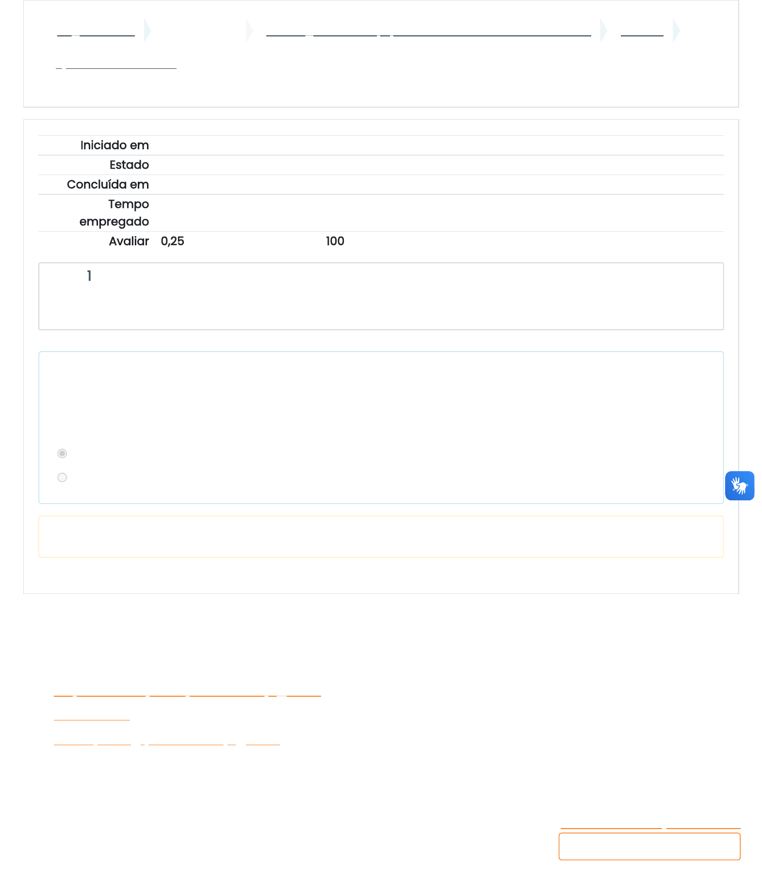 <p>Página inicial Meus cursos Como gerenciar equipes com o Microsoft Planner – EAD Aula 07</p><p>Questionário Aula 07</p><p>Iniciado em Wednesday, 11 Sep 2024, 07:17</p><p>Estado Finalizada</p><p>Concluída em Wednesday, 11 Sep 2024, 07:17</p><p>Tempo</p><p>empregado</p><p>12 segundos</p><p>Avaliar 0,25 de um máximo de 0,25(100%)</p><p>Questão 1</p><p>Correto</p><p>Atingiu 0,25 de 0,25</p><p>É possível adicionar um link de um documento compartilhado na tarefa?</p><p>Escolha uma opção:</p><p>Verdadeiro </p><p>Falso</p><p>A resposta correta é 'Verdadeiro'.</p><p>Manter contato</p><p>Escola Municipal de Administração Pública de São Paulo - EMASP</p><p> https://emaspead.prefeitura.sp.gov.br</p><p> 3396-7060</p><p> emaspead@prefeitura.sp.gov.br</p><p> </p><p>Resumo de retenção de dados</p><p> Baixar o aplicativo móvel.</p><p>11/09/2024, 07:17 Questionário Aula 07</p><p>https://emaspead.prefeitura.sp.gov.br/mod/quiz/review.php?attempt=750106&cmid=2250 1/1</p><p>https://emaspead.prefeitura.sp.gov.br/</p><p>https://emaspead.prefeitura.sp.gov.br/course/view.php?id=54</p><p>https://emaspead.prefeitura.sp.gov.br/course/view.php?id=54#section-10</p><p>https://emaspead.prefeitura.sp.gov.br/mod/quiz/view.php?id=2250</p><p>https://emaspead.prefeitura.sp.gov.br/</p><p>tel:3396-7060</p><p>mailto:emaspead@prefeitura.sp.gov.br</p><p>https://pt-br.facebook.com/emasppmsp</p><p>https://www.youtube.com/@emasp.prefsp</p><p>https://emaspead.prefeitura.sp.gov.br/admin/tool/dataprivacy/summary.php</p><p>https://download.moodle.org/mobile?version=2018120301&lang=pt_br&iosappid=633359593&androidappid=com.moodle.moodlemobile</p>