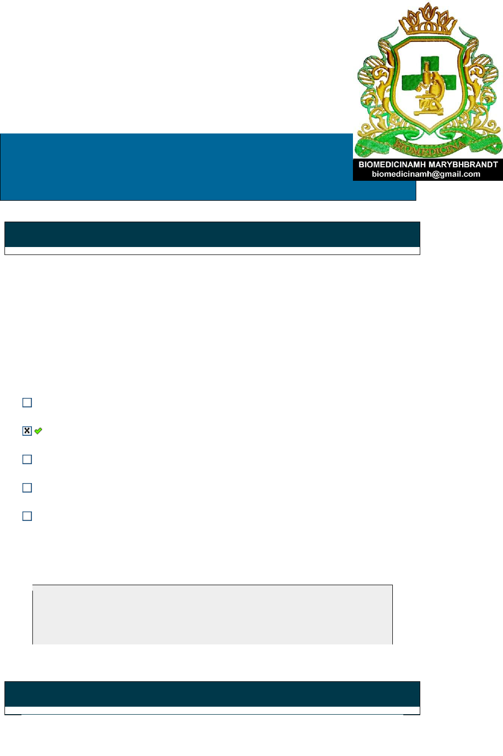 <p>Disc.: FUNDAMENTOS E APLICAÇÕES DA ESTÉTICA BIOMÉDICA</p><p>Aluno(a):</p><p>Acertos: 10,0 de 10,0 08/04/2022</p><p>1a</p><p>Questão</p><p>Acerto: 1,0 / 1,0</p><p>Numa clínica de estética, o biomédico responsável</p><p>pelos procedimentos estéticos costuma fazer indicação de</p><p>tratamentos para uso domiciliar para seus pacientes. Essa prática é</p><p>importante e deve ser seguida pelo paciente de acordo com as</p><p>orientações e indicações terapêuticas do profissional, evitando</p><p>resultados drásticos com produtos sem conhecimento e por conta</p><p>própria por parte do paciente.</p><p>Desta forma, todas as alternativas a seguir apresentam características</p><p>da prescrição estética, exceto:</p><p>O tratamento domiciliar complementa e potencializa os</p><p>resultados.</p><p>É facultativo colocar a quantidade total da substância e o</p><p>intervalo entre as doses na prescrição.</p><p>É importante que os pacientes sigam e respeitem as orientações</p><p>determinadas pelo profissional.</p><p>O profissional segue os conceitos da farmacologia para realizar a</p><p>prescrição.</p><p>O profissional realiza a avaliação estética e então identifica o</p><p>melhor tratamento.</p><p>Respondido em 08/04/2022 13:44:20</p><p>Explicação:</p><p>A resposta correta é: É facultativo colocar a quantidade total da</p><p>substância e o intervalo entre as doses na prescrição.</p><p>2a</p><p>Questão</p><p>Acerto: 1,0 / 1,0</p><p>Um biomédico, recém-formado e habilitado em Estética, tornou-se</p><p>empreendedor e responsável técnico de uma clínica especializada nessa</p><p>área. Ele contratou uma empresa de marketing para divulgar seus</p><p>serviços na mídia, anunciando preços, modalidade de pagamento e</p><p>outras formas de comercialização das suas atividades. Considerando o</p><p>Código de Ética Profissional Biomédico, avalie as afirmações a seguir.</p><p>I. É direito do biomédico oferecer seus serviços profissionais por</p><p>meio de mídia para se promover profissionalmente e para</p><p>reconhecimento da classe biomédica.</p><p>II. É vedado ao biomédico anunciar preços de serviços, modalidade</p><p>de pagamento e outras formas de comercialização.</p><p>III. É direito do biomédico utilizar-se dos meios de comunicação</p><p>para conceder entrevistas ou palestras sobre assuntos da</p><p>Biomedicina, com finalidade educativa científica e de interesse</p><p>social.</p><p>É correto apenas o que se afirma em:</p><p>I.</p><p>III.</p><p>I e II.</p><p>II e III.</p><p>II.</p><p>Respondido em 08/04/2022 13:47:37</p><p>Explicação:</p><p>A resposta correta é: II e III.</p><p>3a</p><p>Questão</p><p>Acerto: 1,0 / 1,0</p><p>A resolução nº 241 do CFBM de 29 de maio de 2014 dispõe sobre atos</p><p>do profissional biomédico com habilitação em biomedicina estética, e</p><p>regulamenta a prescrição de substâncias pelo mesmo.</p><p>De acordo com esta resolução, todas alternativas abaixo</p><p>apresentam substâncias que podem ser prescritas pelo biomédico</p><p>esteta, exceto:</p><p>Toxina botulínica</p><p>Cosmecêuticos.</p><p>Fórmulas magistrais</p><p>Polimetilmetacrilato (PMMA).</p><p>Preenchedores a base de ácido hialurônico.</p><p>Respondido em 08/04/2022 13:48:17</p><p>Explicação:</p><p>A resposta correta é: Polimetilmetacrilato (PMMA).</p><p>4a</p><p>Questão</p><p>Acerto: 1,0 / 1,0</p><p>A acne vulgar ou juvenil é uma patologia inflamatória da</p><p>unidade pilossebácea caracterizada por hipersecreção</p><p>sebácea, hiperqueratinização folicular, proliferação bacteriana e</p><p>liberação de mediadores químicos inflamatórios dérmicos. O seu</p><p>diagnóstico é clínico e está relacionado à identificação de lesões</p><p>elementares. Com base nas informações apresentadas a respeito das</p><p>lesões e sequelas da acne, avalie as afirmações a seguir.</p><p>I. Os comedões abertos e fechados são lesões elementares não</p><p>inflamatórias que correspondem, respectivamente, ao acúmulo de</p><p>sebo e queratina em um folículo piloso dilatado e ao acúmulo</p><p>de corneócitos agrupados no infundíbulo folicular.</p><p>II. As pápulas eritematosas e as pústulas são lesões inflamatórias</p><p>superficiais e ocorrem em virtude da mudança da flora bacteriana</p><p>e da proliferação da bactéria Propionibacteriun acnes.</p><p>III. Os nódulos são lesões elementares sólidas inflamatórias</p><p>profundas, comumente mais palpáveis do que visíveis, que</p><p>consistem em graus mais graves de acne.</p><p>IV. A acne deverá ser tratada precocemente e sua</p><p>terapêutica independe da anamnese e da avaliação das lesões</p><p>elementares identificadas, visto que essa patologia poderá originar</p><p>sequelas, como cicatrizes e hipercromias.</p><p>É correto o que se afirma em:</p><p>I, III e IV, apenas.</p><p>II, III e IV, apenas.</p><p>I e III, apenas.</p><p>I, II, III, apenas.</p><p>I, II e IV, apenas.</p><p>Respondido em 08/04/2022 13:51:29</p><p>Explicação:</p><p>A resposta correta é: I, II, III, apenas.</p><p>5a</p><p>Questão</p><p>Acerto: 1,0 / 1,0</p><p>A cicatrização é uma sequência coordenada de eventos celulares e</p><p>moleculares que promovem a reconstituição do tecido. Existem dois</p><p>tipos de cicatrização: a cicatrização por primeira intenção e a</p><p>cicatrização por segunda intenção.</p><p>No primeiro tipo, considerado o mais simples, a pele é cortada de</p><p>maneira asséptica e as bordas são aproximadas por suturas ou outros</p><p>meios.</p><p>Essas feridas geralmente cicatrizam-se sem complicações, a partir da</p><p>formação de discreto tecido cicatricial, em que estão presentes as três</p><p>fases do processo de cicatrização, com modesta reparação e</p><p>regeneração tecidual.</p><p>No segundo tipo de cicatrização, observa-se o processo que ocorre em</p><p>feridas abertas de grande espessura ou com perda tecidual total, em