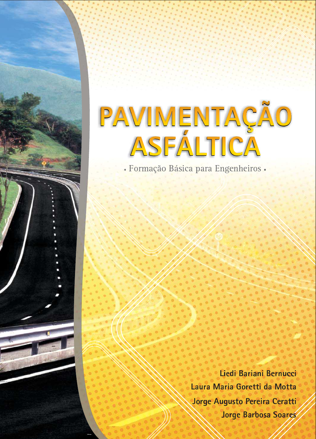 <p>�✁✂✄✁ ☎✆✝✁✆✞✁ ☎✂✝✞✟✠✠✁</p><p>✡☛✝☞✂ ✌✟☞✟✍✎☛ ✏✂✝✂✁✝✆ ✑✂✝✆✎✎✁</p><p>✡☛✝☞✂ ☎✆✝✒☛✍✆ ✓☛✆✝✂✍</p><p>✔✕✖✗✕ ✘✕✗✙✕ ✚✛✗✜✢✢✙ ✣✕ ✘✛✢✢✕</p><p>✥ ✤✦✧★✩✪✫✦ ✬✭✮✯✰✩ ✱✩✧✩ ✲✳✴✵✳✶✵✯✧✦✮ ✥</p><p>✷ ✸ ✹✺✻ ✼</p><p>✽✾ ✿✻✸❀</p><p>Rio de Janeiro</p><p>2008</p><p>Liedi Bariani Bernucci</p><p>Laura Maria Goretti da Motta</p><p>Jorge Augusto Pereira Ceratti</p><p>Jorge Barbosa Soares</p><p>Pavimentação asfáltica</p><p>Formação básica para engenheiros</p><p>3ª. Reimpressão</p><p>2010</p><p>PATROCINADORES</p><p>Petrobras – Petróleo Brasileiro S. A.</p><p>Petrobras Distribuidora</p><p>Abeda – Associação Brasileira das Empresas Distribuidoras de Asfaltos</p><p>Copyright © 2007 Liedi Bariani Bernucci, Laura Maria Goretti da Motta,</p><p>Jorge Augusto Pereira Ceratti e Jorge Barbosa Soares</p><p>P338 Pavimentação asfáltica : formação básica para engenheiros / Liedi</p><p>Bariani Bernucci... [et al.]. – Rio de Janeiro : PETROBRAS: ABEDA,</p><p>2006.</p><p>504 f. : il.</p><p>Inclui Bibliografias.</p><p>Patrocínio PETROBRAS</p><p>1. Asfalto. 2. Pavimentação. 3. Revestimento asfáltico. 4. Mistura.</p><p>I. Bernucci, Liedi Bariani. II. Motta, Laura Maria Goretti da. III. Ceratti,</p><p>Jorge Augusto Pereira. IV. Soares, Jorge Barbosa.</p><p>CDD 625.85</p><p>COORDENAÇÃO DE PRODUÇÃO</p><p>Trama Criações de Arte</p><p>PROJETO GRÁFICO E DIAGRAMAÇÃO</p><p>Anita Slade</p><p>Sonia Goulart</p><p>DESENHOS</p><p>Rogério Corrêa Alves</p><p>REVISÃO DE TEXTO</p><p>Mariflor Rocha</p><p>CAPA</p><p>Clube de Idéias</p><p>IMPRESSÃO</p><p>Gráfica Imprinta</p><p>Ficha catalográfica elaborada pela Petrobras / Biblioteca dos Serviços Compartilhados</p><p>APRESENTAÇÃO</p><p>Tendo em vista a necessidade premente de melhoria da qualidade das rodovias</p><p>brasileiras e a importância da ampliação da infra-estrutura de transportes, a Pe-</p><p>tróleo Brasileiro S.A., a Petrobras Distribuidora S.A. e a Associação Brasileira das</p><p>Empresas Distribuidoras de Asfaltos – Abeda vêm investindo no desenvolvimento</p><p>de novos produtos asfálticos e de modernas técnicas de pavimentação. Para efeti-</p><p>vamente aplicar estes novos materiais e a recente tecnologia, é preciso promover a</p><p>capacitação de recursos humanos.</p><p>Assim, essas empresas, unidas em um empreendimento inovador, conceberam</p><p>uma ação para contribuir na formação de engenheiros civis na área de pavimenta-</p><p>ção: o Proasfalto – Programa Asfalto na Universidade. Este projeto arrojado foi criado</p><p>para disponibilizar material didático para aulas de graduação de pavimentação visan-</p><p>do oferecer sólidos conceitos teóricos e uma visão prática da tecnologia asfáltica.</p><p>Para a elaboração do projeto didático, foram convidados quatro professores de</p><p>renomadas instituições de ensino superior do Brasil. Iniciou-se então o projeto que,</p><p>após excelente trabalho dos professores Liedi Bariani Bernucci, da Universidade de</p><p>São Paulo, Laura Maria Goretti da Motta, da Universidade Federal do Rio de Janei-</p><p>ro, Jorge Augusto Pereira Ceratti, da Universidade Federal do Rio Grande do Sul, e</p><p>Jorge Barbosa Soares, da Universidade Federal do Ceará, resultou no lançamento</p><p>deste importante documento.</p><p>O livro Pavimentação Asfáltica descreve os materiais usados em pavimentação</p><p>e suas propriedades, além de apresentar as técnicas de execução, de avaliação e</p><p>de restauração de pavimentação. A forma clara e didática como o livro apresenta</p><p>o tema o transforma em uma excelente referência sobre pavimentação e permite</p><p>que ele atenda às necessidades tanto dos iniciantes no assunto quanto dos que já</p><p>atuam na área.</p><p>A Universidade Petrobras, co-editora do livro Pavimentação Asfáltica, sente-se</p><p>honrada em participar deste projeto e cumprimenta os autores pela importante ini-</p><p>ciativa de estabelecer uma bibliografia de consulta permanente sobre o tema.</p><p>Petróleo Brasileiro S.A. – Petrobras</p><p>Petrobras Distribuidora S.A. – Asfaltos</p><p>Abeda – Associação Brasileira das Empresas Distribuidoras de Asfaltos</p><p>PREFÁCIO 7</p><p>1 Introdução 9</p><p>1.1 PAVIMENTO DO PONTO DE VISTA ESTRUTURAL E FUNCIONAL 9</p><p>1.2 UM BREVE HISTÓRICO DA PAVIMENTAÇÃO 11</p><p>1.3 SITUAÇÃO ATUAL DA PAVIMENTAÇÃO NO BRASIL 20</p><p>1.4 CONSIDERAÇÕES FINAIS 22</p><p>BIBLIOGRAFIA CITADA E CONSULTADA 24</p><p>2 Ligantes asfálticos 25</p><p>2.1 INTRODUÇÃO 25</p><p>2.2 ASFALTO 26</p><p>2.3 ESPECIFICAÇÕES BRASILEIRAS 58</p><p>2.4 ASFALTO MODIFICADO POR POLÍMERO 59</p><p>2.5 EMULSÃO ASFÁLTICA 81</p><p>2.6 ASFALTO DILUÍDO 96</p><p>2.7 ASFALTO-ESPUMA 97</p><p>2.8 AGENTES REJUVENESCEDORES 99</p><p>2.9 O PROGRAMA SHRP 100</p><p>BIBLIOGRAFIA CITADA E CONSULTADA 110</p><p>3 Agregados 115</p><p>3.1 INTRODUÇÃO 115</p><p>3.2 CLASSIFICAÇÃO DOS AGREGADOS 116</p><p>3.3 PRODUÇÃO DE AGREGADOS BRITADOS 124</p><p>3.4 CARACTERÍSTICAS TECNOLÓGICAS IMPORTANTES DOS AGREGADOS</p><p>PARA PAVIMENTAÇÃO ASFÁLTICA 129</p><p>3.5 CARACTERIZAÇÃO DE AGREGADOS SEGUNDO O SHRP 150</p><p>BIBLIOGRAFIA CITADA E CONSULTADA 154</p><p>SUMÁRIO</p><p>4 Tipos de revestimentos asfálticos 157</p><p>4.1 INTRODUÇÃO 157</p><p>4.2 MISTURAS USINADAS 158</p><p>4.3 MISTURAS IN SITU EM USINAS MÓVEIS 185</p><p>4.4 MISTURAS ASFÁLTICAS RECICLADAS 188</p><p>4.5 TRATAMENTOS SUPERFICIAIS 191</p><p>BIBLIOGRAFIA CITADA E CONSULTADA 200</p><p>5 Dosagem de diferentes tipos de revestimento 205</p><p>5.1 INTRODUÇÃO 205</p><p>5.2 DEFINIÇÕES DE MASSAS ESPECÍFICAS PARA MISTURAS ASFÁLTICAS 207</p><p>5.3 MISTURAS ASFÁLTICAS A QUENTE 217</p><p>5.4 DOSAGEM DE MISTURAS A FRIO 253</p><
