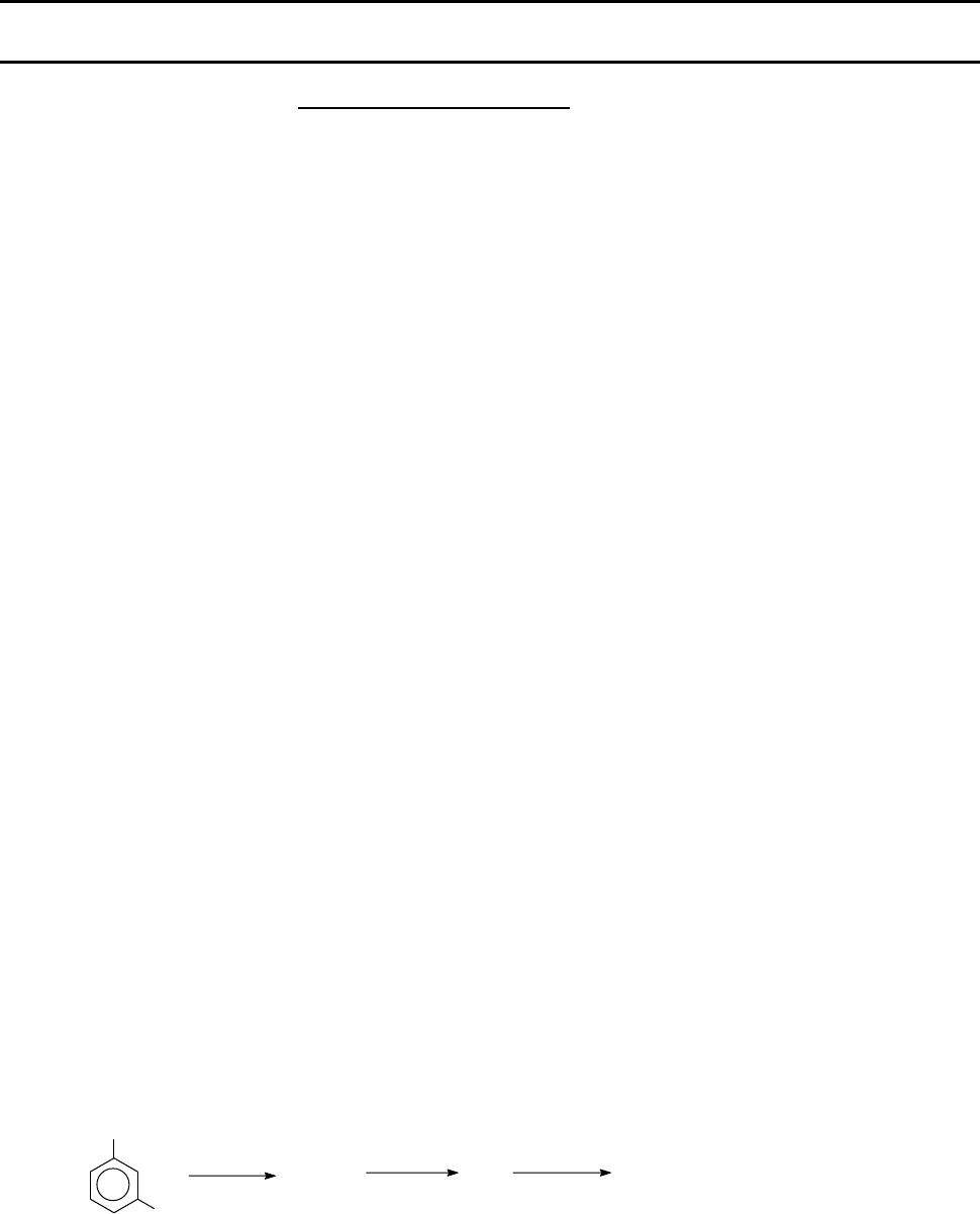 <p>OH</p><p>OH</p><p>H2SO4</p><p>60-65 C0</p><p>G H I</p><p>HNO3/H2SO4 H3O+/H2O</p><p>(C6H5NO2 )( C6H5NS2O10 )(C6H8S2O8 )</p><p>UNIVERSIDADE FEDERAL DO PIAUÍ</p><p>CENTRO DE CIÊNCIAS DA NATUREZA</p><p>DEPARTAMENTO DE QUÍMICA</p><p>Disciplina: Química Orgânica II Q Período: 2024.1</p><p>Ministrante: José ARIMATÉIA Dantas Lopes</p><p>LISTA DE EXERCÍCIOS: SE Ar</p><p>01. Existem três dimetil-benzenos isômeros, com as metilas localizadas nas posições orto, meta e para. Seus</p><p>nomes vulgares são xilenos. Cada xileno é tratado com bromo (1mol) e FeBr3 e os produtos de</p><p>monobromação são isolados. O xileno A produz um único bromo-xileno, o xileno B produz dois bromo-</p><p>xilenos e o xileno C produz três bromo-xilenos. Deduza a estrutura de cada xileno e escreva as equações</p><p>de sua bromação</p><p>02. Dê o nome e a estrutura de cada um dos seguintes hidrocarbonetos aromáticos:</p><p>a) C8H10; tem três possíveis derivados monobromados, com substituição no anel.</p><p>b) C9H12; quando submetido a nitração, pode dar apenas um produto mononitrado.</p><p>c) C9H12; quando submetido a nitração, pode dar quatro produtos mononitrados.</p><p>03. Quando o benzeno é nitrado e em seguida o produto clorado, o produto final é diferente daquele que seria</p><p>obtido se a ordem das reações de monossubstituição fosse invertida, isto é, primeiro a cloração e em</p><p>seguida a nitração. Explique</p><p>04. Indique o principal produto de monossubstituição em cada uma das seguintes reações. Lembre-se de que</p><p>certos substituintes orientam a formação de produtos em meta, e outros em orto e para.</p><p>a) tolueno + cloro (cat. de Fe) b) nitrobenzeno + ácido sulfúrico conc. (calor)</p><p>c) etilbenzeno + bromo (cat. de Fe) d) iodobenzeno + bromo (cat. de Fe)</p><p>e) ácido benzeno-sulfônico + ácido nítrico concentrado (calor)</p><p>05. A partir de benzeno ou tolueno sugira reações de síntese dos seguintes compostos:</p><p>a) m-bromo-nitrobenzeno b) ácido p-toluenossulfônico c) p-nitro-etilbenzeno</p><p>d) metilciclo-hexano e) ácido p-bromobenzóico f) p-bromo-nitrobenzeno</p><p>g) 2-cloro-4-nitrotolueno h) 3,5-dinitro-clorobenzeno</p><p>06. O explosivo TNT (trinitro-tolueno) pode ser preparado por nitração de tolueno com uma mistura dos</p><p>ácidos nítrico e sulfúrico.</p><p>a) Considerando o efeito de orientação dos vários grupos, imagine a estrutura correta do TNT</p><p>b) Explique por que as condições da reação precisam ser cada vez mais severas, à medida</p><p>que prossegue a nitração.</p><p>07 a) O principal produto da cloração do naftaleno é o isômero 1-cloro e da nitração é o 1-nitro. Desenhe as</p><p>estruturas de ressonância que contribuem para o carbocátion intermediário, do tipo íon-benzenônio, na</p><p>cloração do naftaleno nas posições 1 e 2. Em cada caso, escreva apenas as estruturas que mantêm o</p><p>caráter benzenóide (três ligações duplas) do anel que não é atacado pelo eletrófilo. Explique por que a</p><p>substituição na posição 1 é favorecida.</p><p>b) Que produto você espera da mononitração do a-naftol? E do b-naftol?</p><p>08. Proponha estruturas para os compostos de G, H e I.</p><p>09. A etilação do clorobenzeno pela reação de Friedel-Crafts (CH3CH2Br/GaBr3) se processa a uma</p><p>velocidade 0,21 vezes àquela da etilação do benzeno, nas mesmas condições.</p><p>A distribuição dos isômeros é: 42,4% de orto, 15,9% de meta e 41,9% de para. Com esses dados calcule</p><p>o fator de velocidade parcial.</p>