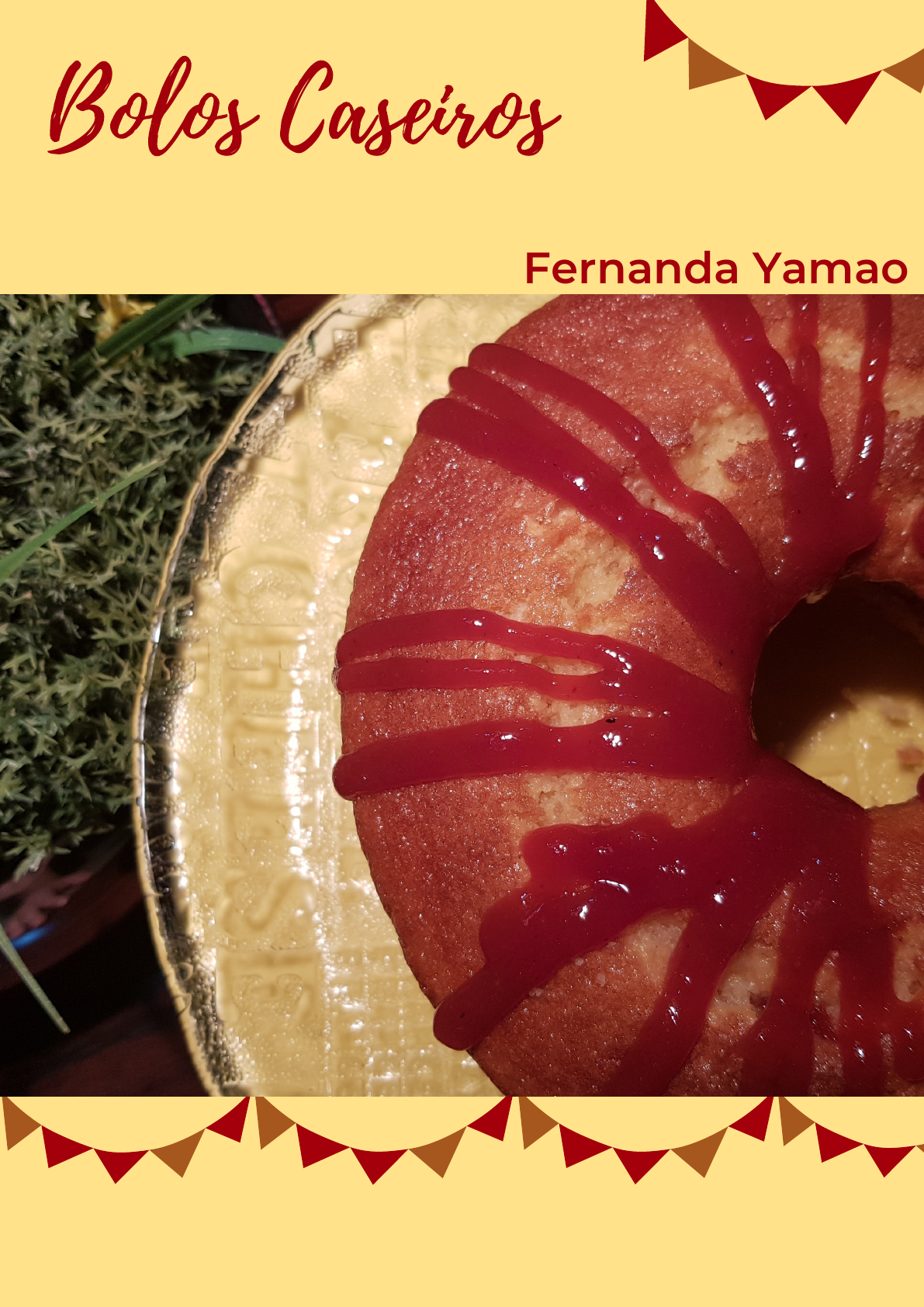 <p>Bolos Caseiros</p><p>Fernanda Yamao</p><p>www.facebook.com/fernandayamao</p><p>www.instagram.com/fernandayamao</p><p>www.youtube.com/fernandayamao</p><p>www.fernandayamao.com.br</p><p>Juninos</p><p>Bolo de Paçoca</p><p>INGREDIENTES</p><p>- 03 ovos (150g)</p><p>- 1/2 xíc. de óleo (80g)</p><p>- 1 1/4 xíc. de açúcar(230g)</p><p>- 1 pote de iogurte natural (170g)</p><p>- 1/2 colher (chá) de essência de baunilha</p><p>- 2 paçocas</p><p>- 2 xíc. de farinha de trigo (200g)</p><p>- 1 colher (sopa) de fermento químico</p><p>MODO DE PREPARO</p><p>Bater no liquidificador os ovos, óleo, açúcar, essência de</p><p>baunilha, iogurte e paçocas até dissolver o açúcar. Despejar a</p><p>emulsão em um bowl, acrescentar a farinha de trigo (peneirada)</p><p>e misturar até incorporar os ingredientes. Acrescentar o</p><p>fermento químico e misturar delicadamente. Untar a forma e</p><p>levar ao forno pré-aquecido a 180ºC por 20 a 30 minutos ou até</p><p>que esteja dourado.</p><p>Cobertura de Brigadeiro de Paçoca</p><p>INGREDIENTES</p><p>- 1 lata de leite condensado</p><p>(395g)</p><p>- 1 lata de leite (330g)</p><p>- 1/2 lata de leite condensado</p><p>cozido</p><p>- 1 colher (sopa) de margarina</p><p>- 2 paçocas</p><p>MODO DE PREPARO</p><p>Bater no liquidificador todos os</p><p>ingredientes, levar ao fogo</p><p>sempre mexendo até chegar no</p><p>ponto de brigadeiro mole.</p><p>Dicas da Fer</p><p>- Esfarelar 1 paçoca para decorar o bolo quando for entregar ao cliente.</p><p>- Faça o seu próprio iogurte para diminuir o custo do seu bolo.</p><p>Rendimento: 2 bolos de 19 cm</p><p>Bolo Romeu e Julieta</p><p>INGREDIENTES</p><p>- 4 Ovos (200g)</p><p>- 1 xícara (bem cheia) de óleo (200g)</p><p>- 2 1/2 xíc. de açúcar (450g)</p><p>- 50g de queijo parmesão ralado fino</p><p>- 2 1/4 xíc. de leite fervente (450g)</p><p>- 2 colheres (sopa) de margarina (70g)</p><p>- 2 1/4 de fubá mimoso fino (270g)</p><p>- 2 3/4 xíc. de farinha de trigo (270g)</p><p>- 1 1/2 colher (sopa) de fermento qúimico</p><p>- 300g de geleia de goiabada</p><p>- 150g requeijão cremoso culinário</p><p>MODO DE PREPARO</p><p>Ferver o leite e a margarina.</p><p>Bater no liquidificador os ovos, açúcar, óleo, queijo parmesão</p><p>ralado, leite, margarina, fubá e, se couber, a farinha de trigo.</p><p>Colocar essa massa em um bowl, acrescentar o fermento</p><p>químico e bater ligeiramente. Distribuir a geleia de goiabada ou</p><p>goiabada em pedaços e o requeijão sobre a massa.</p><p>Assar em forno pré-aquecido a 180ºC por 20 a 30 minutos.</p><p>Espere esfriar para desenformar.</p><p>Dicas da Fer</p><p>- Untar e forrar a forma com papel, pois a goiabada e o requeijão poderão descer para o fundo da forma.</p><p>- Se preferir usar pedaços de goiabada, corte em pedaços pequenos e passe na farinha de trigo antes de</p><p>colocar sobre a massa.</p><p>-O uso do queijo não é obrigatório, porém é o diferencial deste bolo. Se não tiver parmesão ralado, pode</p><p>usar mussarela ou meia cura na mesma proporção da receita (50g).</p><p>Rendimento: 3 bolos de 19 cm</p><p>Bolo de Milho com Requeijão</p><p>INGREDIENTES</p><p>- 3 Ovos (150g)</p><p>- 1 + 1/4 de xíc. de açúcar (230g)</p><p>- 1/2 xíc. de óleo (80g)</p><p>- 1 lata de milho verde escorrido (200g)</p><p>- 1 1/2 xíc. de leite (300g)</p><p>- 1 1/2 xíc de farinha de milho flocão (150g)</p><p>- 3 colheres (sopa) de farinha de trigo (40g)</p><p>- 1 colher (sopa) de fermento químico (15g)</p><p>- 100g de requeijão cremoso culinário</p><p>MODO DE PREPARO</p><p>Bater no liquidificador os ovos, açúcar, óleo, milho e leite até</p><p>derreter o açúcar e triturar o milho.</p><p>Acrescentar a farinha de milho flocão, farinha de trigo e bater</p><p>até incorporar os ingredientes (bater pouco).</p><p>Acrescentar o fermento químico e bater ligeiramente.</p><p>Untar e forrar a forma.</p><p>Assar em forno pré-aquecido a 180ºC por 30 a 40 minutos.</p><p>Espere esfriar para desenformar.</p><p>DICAS DA FER</p><p>- Acrescentar as farinhas somente após diluir o açúcar e triturar o milho para que seu bolo não</p><p>murche.</p><p>- Se fizer bolo de milho simples (sem requeijão) não é necessário forrar a forma.</p><p>- Com requeijão, não deixe de forrar para que seu bolo não grude na forma.</p><p>- Colocar a massa na forma imediatamente após desligar o liquidificador.</p><p>Rendimento: 2 bolos de 19 cm</p><p>Desmoldante Caseiro</p><p>INGREDIENTES</p><p>- 1 parte de gordura vegetal em temperatura ambiente</p><p>- 1 parte de óleo</p><p>- 1 parte de farinha</p><p>MODO DE PREPARO</p><p>Bater os ingredientes na batedeira até ficar homogêneo. Se</p><p>estiver com muuuita pressa, bata com um fouet mesmo.</p><p>Pronto!!! Simples assim!!!</p><p>DICAS!!!!!</p><p>- Atenção! Usar a mesma medida (parte), ou seja, o mesmo</p><p>volume e não peso. Uso potes de 250 ml para medir os</p><p>ingredientes, consigo untar aproximadamente 100 formas de 19</p><p>cm.</p><p>- Sempre uso gordura vegetal, porque a durabilidade é maior</p><p>(até 07 dias sem refrigeração e 20 na geladeira), não altera o</p><p>sabor e o resultado final é bem melhor. Porém, se não tiver a</p><p>gordura vegetal poderá substituir pela margarina, mas atenção!</p><p>Jamais use manteiga, ok?!</p><p>Iogurte Natural</p><p>INGREDIENTES</p><p>- 01 litro de leite</p><p>- 1/2 pote de iogurte natural</p><p>Em uma panela coloque 01 litro de leite e leve ao fogo até</p><p>atingir a temperatura de 46ºC ou até que coloque o dedo e</p><p>consiga ficar 10 segundos sem qualquer desconforto.</p><p>Tire 01 concha de leite e misture com o iogurte. Acrescente essa</p><p>mistura ao leite e misture bem. Distribua em potes e guarde em</p><p>local abafado (eu uso uma caixa térmica) durante 08 horas.</p><p>DICAS!!!</p><p>- ATENÇÃO para a temperatura do leite! Não deve ultrapassar</p><p>46ºC quando misturar o iogurte. Use o termômetro ou o</p><p>dedômetro rsrsrs</p><p>- O iogurte que comprar