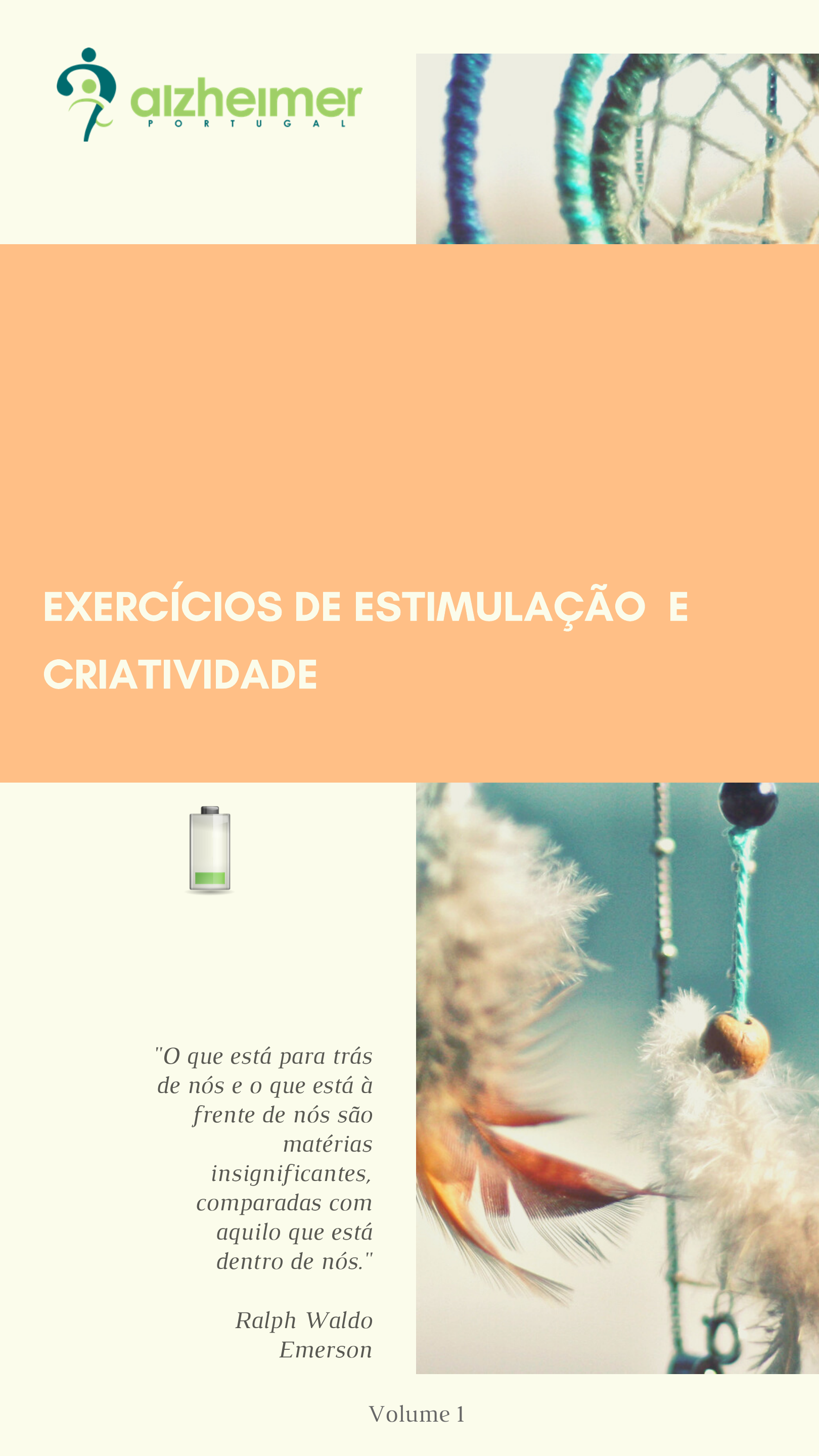 <p>Grau de</p><p>desafio</p><p>JUNTOS</p><p>CRIAMOS</p><p>EXERCÍCIOS DE ESTIMULAÇÃO E</p><p>CRIATIVIDADE</p><p>"O que está para trás</p><p>de nós e o que está à</p><p>frente de nós são</p><p>matérias</p><p>insignificantes,</p><p>comparadas com</p><p>aquilo que está</p><p>dentro de nós."</p><p>Ralph Waldo</p><p>Emerson</p><p>Volume 1</p><p>Ficha técnica</p><p>Título: Juntos Criamos. Exercícios de Estimulação e Criatividade</p><p>Propriedade: Associação Alzheimer Portugal</p><p>Concepção e design: Filipa Aniceto</p><p>Abril 2020</p><p>Créditos:</p><p>Pixabay</p><p>Unsplash</p><p>Nesta altura em que temos que ficar mais</p><p>tempo em casa, é importante continuarmos</p><p>activos.</p><p>Neste guia poderá encontrar exercícios de</p><p>estimulação, sugestões de leituras e de</p><p>actividades que poderá desenvolver em</p><p>casa, sozinho ou acompanhado.</p><p>Este guia também pretende proporcionar</p><p>uma viagem no tempo despertando</p><p>recordações, mas também ajudar a dar asas</p><p>à criatividade e proporcionar momentos de</p><p>inspiração e auto-cuidado.</p><p>Boas criações!</p><p>Quem conta</p><p>um conto...</p><p>Conta a lenda... que, num campo de Nazaré cheio da</p><p>luz do sol, o menino Jesus brincava com as suas</p><p>mãos pequeninas e, amassando barro, com ele fazia</p><p>passarinhos de asas abertas que, alegremente,</p><p>colocava no chão.</p><p>Porém, um homem de maus instintos passou junto</p><p>dele e tentou esmagá-los com os pés. Jesus, então,</p><p>muito aflito, bateu as mãos e os passarinhos de</p><p>barro voaram para muito longe...</p><p>Assim nasceram as andorinhas que, com a beleza</p><p>das suas asas cinzentas, vieram poisar sobre o beiral</p><p>da casa onde vivia Jesus. E mais narra a lenda que do</p><p>bairro de que foram feitas construíram, com amor, o</p><p>seu primeiro ninho.</p><p>Conta ainda a lenda que, quando Cristo foi</p><p>crucificado as andorinhas o rodearam e, com os</p><p>seus bicos rosados, lhe tiraram da coroa os espinhos</p><p>que tanto o magoavam.</p><p>Perante tamanha dor, as suas asas cobriram-se de</p><p>luto, que nunca mais perderam.</p><p>A lenda das andorinhas</p><p>1</p><p>1º DIA</p><p>COPO</p><p>MAÇÃ</p><p>GATO</p><p>ACTIVIDADE 1</p><p>Leia com atenção as seguintes palavras e tente memorizá-las. Se</p><p>necessário, escreva-as ou lei-as em voz alta várias vezes para facilitar a</p><p>memorização.</p><p>ACTIVIDADE 2</p><p>Assinale na grelha abaixo as letras "a".</p><p>DATA: _____ / _____ / ___________</p><p>a c k m j g h p f a w</p><p>h b n a a f x z b n a</p><p>p a q w r j f a g v a</p><p>n j a b x z a a y t e</p><p>h d f a j o a p g a u</p><p>n b a f a p r e a v x</p><p>a g q r b h a a a c o</p><p>p j r q v a b a t a z</p><p>g f v o a z r a m e a</p><p>i r m n a d a h p a j</p><p>A letra "a" aparece ______ vezes.</p><p>2</p><p>ACTIVIDADE 3</p><p>Escreva quatro nomes de animais e quatro nomes de pessoas</p><p>Animais</p><p>______________</p><p>______________</p><p>______________</p><p>______________</p><p>Nomes de pessoas</p><p>______________</p><p>______________</p><p>______________</p><p>______________</p><p>ACTIVIDADE 4</p><p>Agora, sem voltar a página, tente-se lembrar das três palavras do</p><p>exercício 1.</p><p>______________</p><p>______________</p><p>______________</p><p>ACTIVIDADE 5</p><p>Propomos agora que pense nas pessoas importantes da sua vida. Qual</p><p>a pessoa, ou as pessoas, de quem se sente mais próximo(a)?</p><p>De que momentos se recorda?</p><p>Tem mantido o contacto com essa(s) pessoa(s)?</p><p>Caso não se recorde, damos umas pistas!</p><p>______________</p><p>______________</p><p>______________</p><p>Objecto</p><p>Fruto</p><p>Animal</p><p>3</p><p>DATA: _____ / _____ / ___________</p><p>ACTIVIDADE 2</p><p>Assinale os quadrados vermelhos.</p><p>ACTIVIDADE 1</p><p>Observe com atenção as seguintes imagens e tente memorizá-las.</p><p>2º DIA</p><p>4</p><p>ACTIVIDADE 3</p><p>Copie o seguinte desenho.</p><p>ACTIVIDADE 4</p><p>Agora, sem voltar a página, tente lembrar-se dos três objectos do</p><p>exercício 1.</p><p>______________</p><p>______________</p><p>______________</p><p>ACTIVIDADE 5</p><p>Pense agora no que o(a) faz rir? O que o(a) deixa feliz? Que momentos</p><p>se recorda?</p><p>Caso não se recorde, damos umas pistas!</p><p>Jogo</p><p>Fruto</p><p>Escrita</p><p>______________</p><p>______________</p><p>______________</p><p>5</p><p>ACTIVIDADE 1</p><p>Identifique as imagens que se encontram sobrepostas e escreva-as nas</p><p>linhas ao lado de cada conjunto.</p><p>3º DIA DATA: _____ / _____ / ___________</p><p>ACTIVIDADE 2</p><p>Escreva quatro nomes de ervas aromáticas.</p><p>______________</p><p>______________</p><p>______________</p><p>______________</p><p>ACTIVIDADE 3</p><p>Que pratos conhece ou</p><p>costuma cozinhar que</p><p>tenham ervas aromáticas?</p><p>Quais são as suas ervas</p><p>aromáticas de eleição?</p><p>Recorde uma refeição em</p><p>que as tenha saboreado.</p><p>______________</p><p>______________</p><p>______________</p><p>______________</p><p>______________</p><p>______________</p><p>______________</p><p>______________</p><p>Retirado de: https://fiapam.org/wp-</p><p>content/uploads/2012/10/Enfermedad_Alzheimer_de_di</p><p>agnostico_a_terapia.pdf</p><p>6</p><p>Mãos à obra!</p><p>É tão bom podermos colher algumas ervas</p><p>aromáticas para darem um paladar especial</p><p>aos nossos pratos!</p><p>As ervas aromáticas desenvolvem-se bem em</p><p>pequenos recipientes, por isso o desafio de</p><p>hoje é semear num vaso uma erva aromática</p><p>que mais goste.</p><p>Deixamos algumas sugestões:</p><p>Salsa, coentros, alecrim, orégãos, funcho,</p><p>aneto.</p><p>Boas colheitas!</p><p>7</p><p>4º DIA DATA: _____ / _____ / ___________</p><p>ACTIVIDADE 1</p><p>Observe com atenção os seguintes conjuntos de imagens e assinale as</p><p>diferenças entre cada um deles.</p><p>ACTIVIDADE 2</p><p>Responda às seguintes questões: