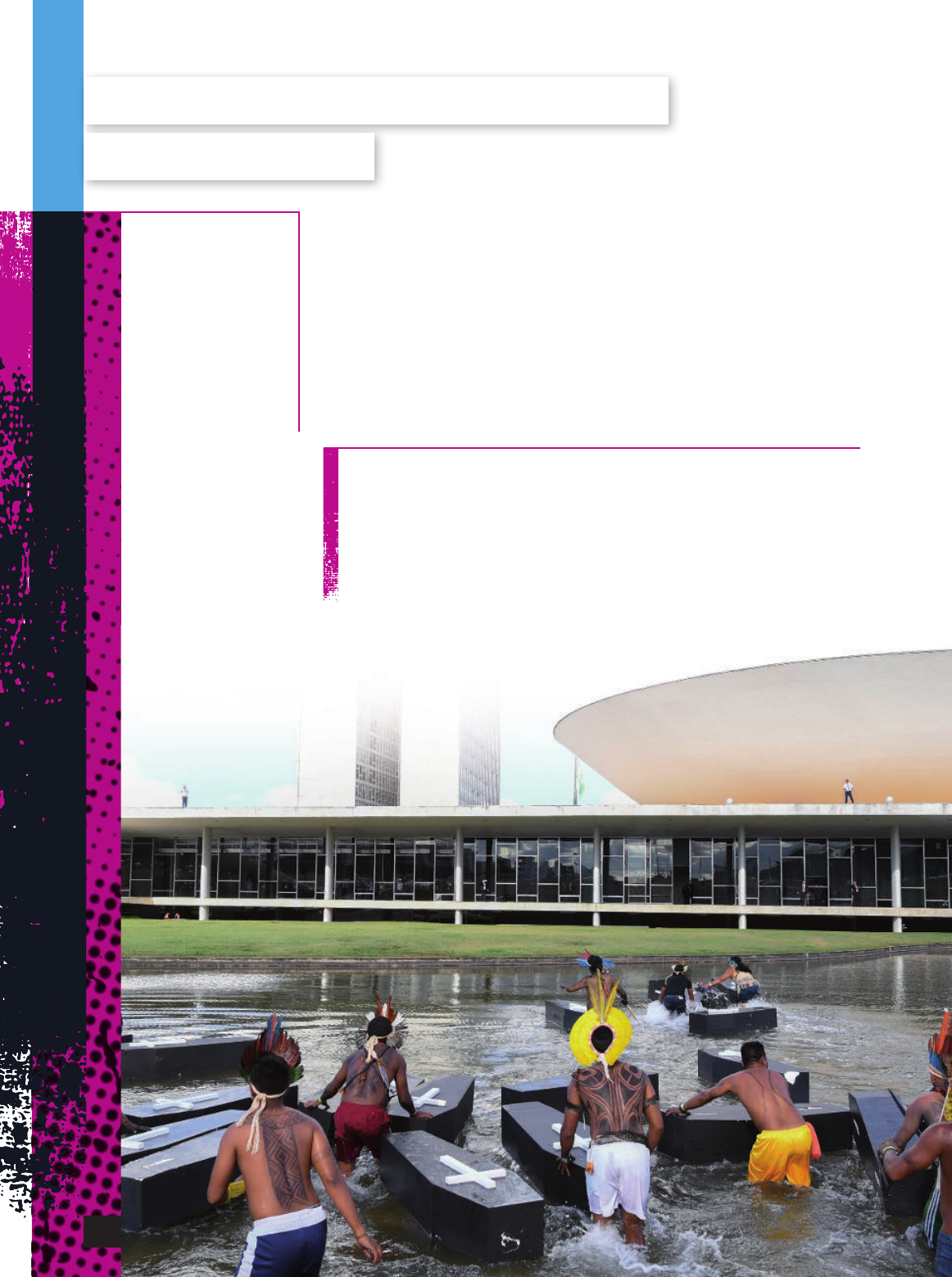 <p>CA</p><p>PÍ</p><p>TU</p><p>LO</p><p>12</p><p>» Competências e</p><p>habilidades</p><p>CGEB4 e CGEB7.</p><p>CECHSA1: EM13CHS101,</p><p>EM13CHS103 e EM13CHS106.</p><p>CECHSA2: EM13CHS201,</p><p>EM13CHS204 e</p><p>EM13CHS206.</p><p>CECHSA6: EM13CHS603 e</p><p>EM13CHS604.</p><p>CECNT3: EM13CNT301 e</p><p>EM13CNT302.</p><p>CONFLITOS TERRITORIAIS</p><p>NO BRASIL</p><p>Após a independência do Brasil, os conflitos internos e externos (com nações</p><p>vizinhas) envolvendo o território brasileiro continuaram. No século XX, o Brasil</p><p>participou, inclusive, das duas guerras mundiais. No âmbito interno, regimes au-</p><p>toritários cercearam as liberdades individuais e, nas décadas de 1960 e 1970,</p><p>houve conflitos relacionados ao regime militar e ditatorial que governava o país.</p><p>A demarcação das Terras Indígenas continua incipiente até hoje. Além disso,</p><p>as terras já demarcadas continuam a sofrer ameaças de invasão por fazendeiros</p><p>e mineradores ou de ser retomadas pelo governo. Milhões de trabalhadores não</p><p>têm acesso à terra, e o campo é marcado pela violência. Nas cidades, se, por um</p><p>lado, seguem as lutas pelo direito à moradia, por outro, identificam-se áreas das</p><p>periferias urbanas sob controle do crime organizado.</p><p>1. Verificam-se, frequentemente, protestos de grupos indígenas em Brasília,</p><p>capital do país, reivindicando, entre outros temas, a demarcação de suas terras.</p><p>Quais fatores se relacionam aos conflitos em Terras Indígenas na atualidade?</p><p>2. Como os atuais conflitos em Terras Indígenas estão relacionados ao processo</p><p>de formação do território brasileiro?</p><p>3. Em sua opinião, qual deve ser o papel do governo e da sociedade civil na de-</p><p>fesa dos povos indígenas e na demarcação de suas terras?</p><p>Indígenas manifestando-se</p><p>em defesa de seus direitos</p><p>em frente ao Congresso</p><p>Nacional, em Brasília (DF).</p><p>Foto de 2017.</p><p>E</p><p>va</p><p>ris</p><p>to</p><p>S</p><p>a/</p><p>A</p><p>FP</p><p>138</p><p>CONFLITOS NO TERRITÓRIO BRASILEIRO</p><p>No Brasil, os conflitos territoriais giram em torno de di-</p><p>ferentes questões, como: a expansão urbana sem o devi-</p><p>do planejamento, que resulta na desigualdade de acesso</p><p>a serviços básicos; a especulação imobiliária; o violento</p><p>conflito gerado pela exploração econômica das terras dos</p><p>povos tradicionais por fazendeiros, madeireiros e minera-</p><p>dores; e a ameaça sofrida pelos próprios agentes do go-</p><p>verno que trabalham com o processo de identificação e</p><p>titulação de terras indígenas e quilombolas.</p><p>Conflitos com remanescentes quilombolas</p><p>No Brasil, a escravidão ocorreu de 1530 a 1888. O pro-</p><p>cesso de abolição da escravidão transcorreu no Brasil im-</p><p>perial e resultou principalmente da luta por liberdade em-</p><p>preendida por africanos escravizados que, em várias</p><p>revoltas, se levantaram contra os latifundiários. A escra-</p><p>vidão foi abolida com a assinatura da Lei Áurea, em 1888.</p><p>Durante os quase quatro séculos de escravidão, os es-</p><p>cravizados que conseguiam fugir das fazendas procura-</p><p>vam se refugiar nos quilombos, que se tornaram locais de</p><p>resistência à escravidão no território brasileiro. O Quilombo</p><p>dos Palmares foi o maior e o mais importante quilombo</p><p>durante todo o século XVII. Localizado no atual estado</p><p>de Alagoas, ele era constituído por diversos núcleos de po-</p><p>voamento (mocambos). Estima-se que havia nele cerca de</p><p>20 mil habitantes, liderados, principalmente, por Zumbi.</p><p>No período em que ocuparam Pernambuco (1630-</p><p>-1654), os holandeses fizeram investidas contra Palma-</p><p>res, porém fracassaram. Os administradores coloniais</p><p>portugueses também tentavam constantemente atacar</p><p>esse quilombo. Após inúmeras tentativas, em 1692, eles</p><p>contrataram bandeirantes paulistas especializados na</p><p>captura e na escravização de indígenas para invadir e</p><p>destruir os mocambos. Assim, o Quilombo dos Palmares,</p><p>principal foco de resistência e luta contra a escravidão no</p><p>Brasil, foi arrasado em uma batalha em 1694, que</p><p>resultou na morte de Zumbi, cuja cabeça foi cortada e</p><p>exibida em praça pública no Recife.</p><p>Os combates contra os quilombos estão entre os conflitos</p><p>territoriais internos mais frequentes da história do Brasil. A</p><p>Constituição de 1988 garante aos remanescentes de comu-</p><p>nidades quilombolas o direito à propriedade definitiva das</p><p>terras ocupadas por seus antepassados. No entanto, nos</p><p>dias atuais, os grupos quilombolas ainda sofrem ameaças</p><p>de invasão de suas terras e registram casos de agressão e</p><p>homicídio. Além disso, os quilombolas enfrentam a lentidão</p><p>no processo de identificação, reconhecimento, demarcação</p><p>e titulação de propriedade de suas terras pelo governo.</p><p>Separatismo e conflito no Sul do Brasil</p><p>O atual Rio Grande do Sul foi palco inicial da Guerra dos</p><p>Farrapos, também conhecida como Revolução Farroupilha,</p><p>que se estendeu de 1835 a 1845. Esse período foi marca-</p><p>do por instabilidades políticas, uma vez que revoltas, insur-</p><p>reições e guerras aconteciam continuamente. Entre elas,</p><p>destaca-se o movimento iniciado no Rio Grande do Sul em</p><p>apoio às ideias liberais, republicanas e federalistas, que</p><p>somaram-se à precária situação econômica local e às exi-</p><p>gências por proteção ao mercado local de charque e couro</p><p>contra a mercadoria equivalente proveniente da Argentina</p><p>e do Uruguai. Em 1836, os farroupilhas proclamaram a in-</p><p>dependência da República Rio-Grandense, sob a presidên-</p><p>cia de Bento Gonçalves, contando com a participação do</p><p>italiano Giuseppe Garibaldi, figura emblemática das lutas</p