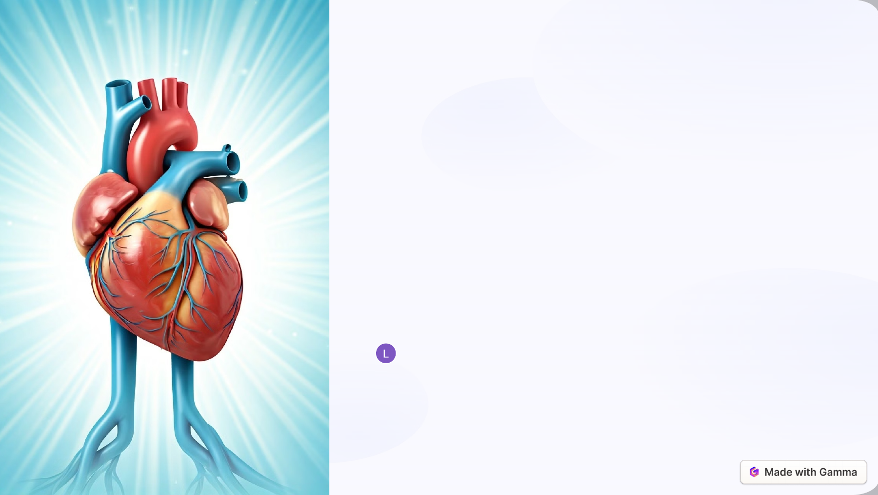 <p>Embriologia do</p><p>Coração</p><p>O desenvolvimento do coração humano é um processo fascinante e</p><p>complexo que se inicia nas primeiras semanas de gestação. A</p><p>embriologia cardíaca descreve as etapas da formação deste órgão vital.</p><p>by Leonardo Bittencourt</p><p>https://gamma.app/?utm_source=made-with-gamma</p><p>Formação do Tubo Cardíaco</p><p>Primitivo</p><p>O tubo cardíaco primitivo surge da fusão de dois tubos cardíacos, que se</p><p>originam do mesoderma esplâncnico. Essa estrutura tubular é a base</p><p>para o desenvolvimento do coração.</p><p>1 Formação do Tubo Cardíaco</p><p>O tubo cardíaco é formado pela fusão de dois tubos</p><p>cardíacos que se originam do mesoderma esplâncnico.</p><p>2 Curvatura do Tubo Cardíaco</p><p>O tubo cardíaco se dobra formando uma curva em forma</p><p>de "S", posicionando as câmaras cardíacas de forma</p><p>adequada.</p><p>3 Separação do Tubo Cardíaco</p><p>O tubo cardíaco se separa em câmaras, formando o átrio,</p><p>ventrículo e o tronco arterial.</p><p>https://gamma.app/?utm_source=made-with-gamma</p><p>Divisão do Tubo Cardíaco em Câmaras</p><p>O tubo cardíaco se divide em quatro câmaras: átrios direito e esquerdo e ventrículos direito e esquerdo. Essa divisão ocorre</p><p>por meio de septos, que separam as câmaras e garantem o fluxo sanguíneo unidirecional.</p><p>Átrio Direito</p><p>Recebe sangue pobre em</p><p>oxigênio do corpo.</p><p>Átrio Esquerdo</p><p>Recebe sangue rico em</p><p>oxigênio dos pulmões.</p><p>Ventrículo Direito</p><p>Bombeia sangue pobre em</p><p>oxigênio para os pulmões.</p><p>Ventrículo Esquerdo</p><p>Bombeia sangue rico em</p><p>oxigênio para o corpo.</p><p>https://gamma.app/?utm_source=made-with-gamma</p><p>Desenvolvimento das</p><p>Válvulas Cardíacas</p><p>As válvulas cardíacas são estruturas que regulam o fluxo sanguíneo</p><p>entre as câmaras cardíacas, garantindo que o sangue siga a direção</p><p>correta e evitando o refluxo. Elas se desenvolvem a partir de tecidos que</p><p>se diferenciam no interior do coração.</p><p>1 Valva Tricúspide</p><p>Localizada entre o átrio</p><p>direito e o ventrículo direito.</p><p>2 Valva Mitral</p><p>Localizada entre o átrio</p><p>esquerdo e o ventrículo</p><p>esquerdo.</p><p>3 Valva Pulmonar</p><p>Localizada entre o</p><p>ventrículo direito e a artéria</p><p>pulmonar.</p><p>4 Valva Aórtica</p><p>Localizada entre o</p><p>ventrículo esquerdo e a</p><p>aorta.</p><p>https://gamma.app/?utm_source=made-with-gamma</p><p>Vascularização do Coração</p><p>em Desenvolvimento</p><p>O coração em desenvolvimento recebe sangue através de um sistema de</p><p>artérias e veias que se formam ao mesmo tempo. A vascularização</p><p>garante o suprimento de nutrientes e oxigênio para o crescimento do</p><p>coração.</p><p>Artérias Veias</p><p>Artérias Coronárias Veias Cardíacas</p><p>Aorta Veia Cava Superior</p><p>Artéria Pulmonar Veia Cava Inferior</p><p>https://gamma.app/?utm_source=made-with-gamma</p><p>Anomalias Congênitas do</p><p>Coração</p><p>Anomalias congênitas do coração são defeitos no coração que estão</p><p>presentes ao nascimento. Esses defeitos podem variar em gravidade e</p><p>podem ser causados por fatores genéticos, ambientais ou uma</p><p>combinação dos dois.</p><p>Defeitos Septais</p><p>Fendas ou buracos nos septos</p><p>cardíacos.</p><p>Estenose Valvar</p><p>Estreitamento das válvulas</p><p>cardíacas.</p><p>Tetralogia de Fallot</p><p>Uma combinação de quatro</p><p>defeitos cardíacos.</p><p>Transposição dos Grandes</p><p>Vasos</p><p>Inversão da posição da aorta e da</p><p>artéria pulmonar.</p><p>https://gamma.app/?utm_source=made-with-gamma</p><p>Importância do Estudo da</p><p>Embriologia Cardíaca</p><p>Compreender a embriologia cardíaca é fundamental para médicos e</p><p>pesquisadores. O conhecimento do desenvolvimento do coração</p><p>permite identificar anomalias congênitas, desenvolver tratamentos e</p><p>entender a complexidade desse órgão vital.</p><p>Diagnóstico Precoce</p><p>A embriologia ajuda a</p><p>identificar anomalias</p><p>congênitas durante a</p><p>gestação.</p><p>Desenvolvimento de</p><p>Tratamentos</p><p>O conhecimento do</p><p>desenvolvimento do coração é</p><p>crucial para a criação de novos</p><p>tratamentos.</p><p>Pesquisa Cardíaca</p><p>A embriologia cardíaca é fundamental para pesquisas sobre</p><p>doenças cardíacas.</p><p>https://gamma.app/?utm_source=made-with-gamma</p>