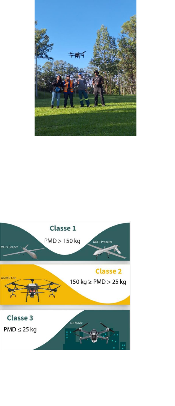 <p>Resumo Executivo – Março/2024</p><p>Treinamento em Drones Classe II (PMD 25kg até 150kg) com certificação de</p><p>curso para aplicação aeroagrícola remota -CAAR</p><p>Classificação: Direcionado</p><p>Introdução</p><p>A crescente demanda no ecossistema agropecuário</p><p>mundial por técnicas de manejo integrado de pragas e</p><p>vegetação em suas dependências e culturas, promoveu</p><p>inovações e pesquisa em vários segmentos, e um desses</p><p>segmentos que se destacou, sobretudo no Brasil, foram os</p><p>drones de Pulverização.</p><p>Esses drones, bem mais robustos e sensíveis que os drones</p><p>comumente utilizados em inspeções de linhas aéreas de</p><p>transmissão (IS-AT/PM-LT-0056), ganham espaços no</p><p>mercado à medida que agricultores e pecuaristas avaliam o</p><p>custo-benefício de sua utilização, frente a outras técnicas</p><p>mais tradicionais como: aeronaves, bombas costais,</p><p>mangueira, etc.</p><p>No que diz respeito aos Drones, chamados de ARP –</p><p>Aeronaves Remotamente Pilotadas, estão divididos em</p><p>classes, baseadas no seu PMD – Peso Máximo de Decolagem</p><p>(Erro! Fonte de referência não encontrada.), no tipo de asa (Erro! Fonte de referência não</p><p>encontrada.) e no tipo de decolagem.</p><p>1. Classificação quanto ao PMD</p><p>O PMD é composto pelo peso da ARP e todos os componentes e acessórios utilizados no momento de</p><p>sua decolagem. No caso das ARP de pulverização, seria calculado como a soma dos pesos da ARP e da</p><p>quantidade total do produto que pode ser carregado em seu tanque. É importante ressaltar que o</p><p>PMD é equivalente à TARA dos veículos terrestres, ou seja, é a soma entre o peso do equipamento e</p><p>acessórios, e a carga que ele suporta, conforme representação na Figura 1.</p><p>• Classe 1 – PMD acima de 150kg</p><p>• Classe 2 – PMD entre 25kg e 150kg</p><p>• Classe 3 – PMD entre 250g e 25kg</p><p>Figura 1 - Classificação dos RPAS quanto ao PMD</p><p>Resumo Executivo – Março/2024</p><p>Treinamento em Drones Classe II (PMD 25kg até 150kg) com certificação de</p><p>curso para aplicação aeroagrícola remota -CAAR</p><p>Classificação: Direcionado</p><p>2. Classificação quanto ao tipo de asa:</p><p>O tipo de asa muda bastante o controle e a física de funcionamento das aeronaves, sendo que</p><p>geralmente as ARP de asa móvel são mais facilmente controláveis, por conseguirem ficar pairando no</p><p>ar, sem a necessidade de interferência do piloto, conforme mostra a representação na Figura 2.</p><p>• Asa fixa – similar aos aviões</p><p>• Asa móvel – similar aos helicópteros</p><p>Figura 2 - Classificação dos RPAS quanto ao tipo de asa</p><p>3. Classificação quanto ao tipo de decolagem:</p><p>• VTOL – Decolagem Vertical</p><p>• HTOL – Decolagem Horizontal</p><p>A decolagem vertical está mais comumente associada às aeronaves de asa móvel, enquanto a</p><p>decolagem horizontal está mais comumente associada às aeronaves de asa fixa, mas não é uma regra.</p><p>Motivação do uso tecnologia na Cemig</p><p>Na CEMIG, a utilização dessas ARP de classe 2 está mais associada à limpeza</p><p>de faixa de Linhas Aéreas, e outras aplicações específicas, como é o caso do</p><p>P&D Aneel GT0670 “Solução Autônoma integrada para instalação e</p><p>manutenção de esferas de sinalização em linhas de transmissão e</p><p>distribuição”, que utiliza uma ARP para instalação de esferas de sinalização</p><p>e/ou usá-lo para limpeza das esferas de sinalização, que em seu PMD</p><p>ultrapassa os 25kg.</p><p>Mediante essas possibilidades, e pensando em outras possíveis aplicações</p><p>dessa classe de aeronaves, por meio de um projeto de engenharia na AT/PM</p><p>– Parte I, entre Janeiro/23 e Março/24, a transmissão da Cemig GT em</p><p>Resumo Executivo – Março/2024</p><p>Treinamento em Drones Classe II (PMD 25kg até 150kg) com certificação de</p><p>curso para aplicação aeroagrícola remota -CAAR</p><p>Classificação: Direcionado</p><p>parceria com a UniverCemig elaborou um escopo de treinamento técnico com contratação no</p><p>mercado de drones de uma empresa capacitada em executar treinamentos. Assim, diversos</p><p>empregados da CEMIG participaram dos módulos de treinamento para a operação segura dessas ARP.</p><p>Porém, para a aplicação de agrotóxicos, a regulamento não é tão simples. Muito se pensa que somente</p><p>adquirir a ARP e aplicar os produtos agrotóxicos é o suficiente, porém muitas são as exigências. Uma</p><p>dessas exigências é o Curso de Aplicador Aeroagrícola Remoto – CAAR que foi ministrado no 3º módulo</p><p>do treinamento técnico das equipes da Cemig. Nesse curso, os treinandos são instruídos acerca da</p><p>legislação de agrotóxicos, os EPIs necessários para manuseio e aplicação, quais os tipos de agrotóxicos,</p><p>modais de aplicação, e várias outras informações acerca de sua importância, riscos e aplicações.</p><p>Aplicabilidade</p><p>Os drones de classe II (PMD entre 25 e 150kg), como já dito, são, em sua maioria, voltados ao</p><p>agronegócio. Nesse contexto, a utilização dessa classe de drones se inicia na aplicação de produtos</p><p>para MIV – Manejo Integrado (ou inteligente) de Vegetação, que é um projeto em contínuo</p><p>desenvolvimento pela AT/PM.</p><p>A Técnica do MIV, principalmente para a CEMIG, consiste em aplicações recorrentes de agroquímicos</p><p>na vegetação, a fim de controlar o seu crescimento, e manter a faixa de servidão com predominância</p><p>de espécies de gramíneas.</p><p>Quanto mais baixa é a vegetação, melhor o controle, e maior a confiabilidade do ativo, já que uma</p><p>vegetação muito densa propicia maiores chances do desarme do ativo por proximidade da vegetação</p><p>ou queimadas (ionização do ar). Atualmente, os agroquímicos para o MIV são aplicados via<