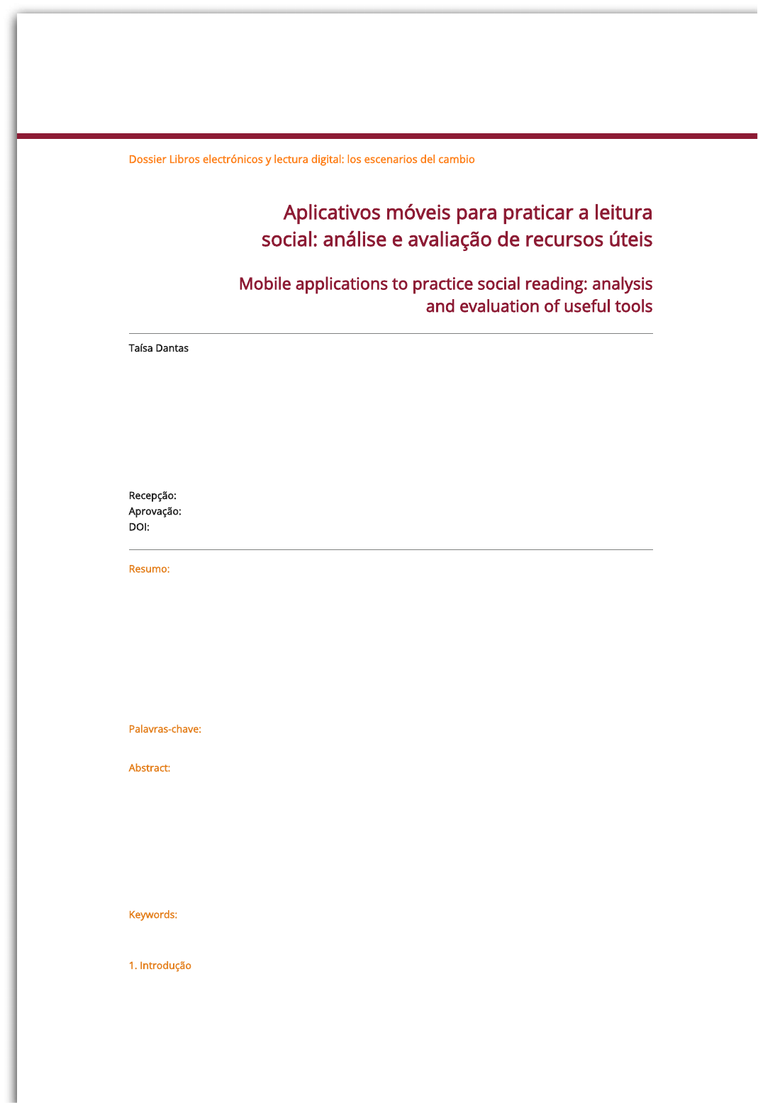 <p>Dossier Libros electrónicos y lectura digital: los escenarios del cambio</p><p>Aplicativos móveis para praticar a leitura</p><p>social: análise e avaliação de recursos úteis</p><p>Mobile applications to practice social reading: analysis</p><p>and evaluation of useful tools</p><p>Taísa Dantas taisadantasbr@gmail.com</p><p>CAPES. Coordenação de aperfeiçoamento de pessoal de nível superior, Brasil</p><p>Universidad de Salamanca, España</p><p>Aplicativos móveis para praticar a leitura social: análise e avaliação de recursos úteis</p><p>Palabra Clave (La Plata), vol. 7, núm. 2, 2018</p><p>Universidad Nacional de La Plata</p><p>Recepção: 20 Novembro 2017</p><p>Aprovação: 24 Novembro 2017</p><p>DOI: https://doi.org/10.24215/18539912e048</p><p>Resumo:</p><p>Este artigo tem como objetivo compreender como os aplicativos móveis podem ser utilizados para auxiliar os leitores</p><p>durante a prática da leitura social, a partir da análise dos diferentes recursos disponíveis, dos seus benefícios e</p><p>limitações. Foi selecionada uma metodologia com abordagem qualitativa de caráter descritivo e analítico, baseada em</p><p>diferentes estudos enfocados na avaliação de recursos eletrônicos. Neste caso, foram avaliados dez aplicativos de leitura</p><p>disponíveis nos sistemas operativos Android e iOS, desenvolvidos tanto para a leitura em tablet como para smartphone.</p><p>Concluiu-se que aplicativos móveis são softwares eficientes para incentivar o leitor a realizar atividades previstas dentro</p><p>da modalidade da leitura social, principalmente no que corresponde à prática da leitura ativa. Por outro lado, verificou-se</p><p>que, com relação ao compartilhamento da leitura, até o momento, a maior parte dos aplicativos avaliados apresentam</p><p>debilidades, principalmente, para incentivar o leitor a interagir com outros leitores, limitando-se ao compartilhamento em</p><p>espaços externos ao aplicativo e, na sua maioria, plataformas não especializadas no âmbito do livro.</p><p>Palavras-chave:</p><p>Leitura social, Aplicativos de leitura, Livros eletrônicos, Promoção de hábitos leitores.</p><p>Abstract:</p><p>This article aims to understand how mobile applications can be used to assist readers during social reading practice,</p><p>through the analysis of different available resources, their benefits, and limitations. This study has a descriptive and</p><p>analytical qualitative methodology approach, based on studies focused on the evaluation of electronic resources. In this</p><p>case, ten reading applications available on Android and iOS operating systems designed for both tablet and smartphone</p><p>reading, were evaluated. Was possible to conclude that mobile applications are efficient software to encourage the reader</p><p>to carry out activities planned within the modality of social reading. Especially in what corresponds to the practice of</p><p>active reading. On the other hand, was verified that for sharing the reading practice, until now, most of the evaluated</p><p>applications hold weaknesses. Mainly, to encourage the reader to interact with other readers. The tools are limited to</p><p>sharing through non-specialized platforms within the context of the book and outside of the application.</p><p>Keywords:</p><p>Social reading, Reading application, Electronic books, Reading habits promotion.</p><p>1. Introdução</p><p>Em 1455, o alemão Johannes Gutenberg apresentou ao mundo o primeiro livro impresso por meio do uso de</p><p>uma prensa móvel, e o que veio a ser o mais importante incunábulo da história, a tradução em latim da Bíblia,</p><p>conhecida como a Bíblia de Gutenberg (Library of Congress, 2000). Em 1971, o americano Michel Hart</p><p>digitalizou a Declaração de Independência dos Estados Unidos, criando o primeiro livro eletrônico (Lebert,</p><p>2008), isto é o e-incunábulo com maior relevância da história.</p><p>Foram necessários cinco séculos para que o livro, no formato como foi criado por Gutenberg, passasse a</p><p>sofrer modificações realmente significativas. Entretanto, não foi necessário muito mais do que quarenta anos</p><p>https://doi.org/10.24215/18539912e048</p><p>para que o livro, como foi desenvolvido por Hart, em formato eletrônico, se transformasse completamente.</p><p>De páginas estáticas, sem possibilidades de realizar marcações ao longo do texto e passível de ser enviado a</p><p>apenas 100 outros leitores, os livros eletrônicos atualmente são editados de diferentes formas, podem ser</p><p>interativos e abertos à inserção de informações por parte do leitor, acessível a partir de diferentes fontes e</p><p>distribuídos por meio de páginas web, emails, códigos QR, etc. O livro eletrônico atual é completamente</p><p>diferente da e-incunábulo de Hart, entretanto, ambos possuem um importante ponto em comum: a</p><p>necessidade de um software específico para que possa ser lido utilizando um dispositivo eletrônico.</p><p>Dentro do contexto da leitura digital, a escolha por qual dispositivo utilizar não é uma tarefa indiferente. A</p><p>experiência de leitura em um computador não é necessariamente a mesma que em um tablet, assim como,</p><p>não é igual ler um e-reader ou ler em um smartphone. Por esta razão, dentro do âmbito da pesquisa sobre a</p><p>leitura, existem diferentes experimentos que buscam compreender qual é o impacto que o uso de cada um</p><p>destes dispositivos pode gerar no processo e na prática da leitura (Dantas, 2017; Grzeschik, Kruppa, Marti, &</p><p>Donner, 2011; Kang & Eune, 2012; Mangen, 2008; Richardson Jr & Mahmood, 2012; Tveit & Mangen, 2014).</p><p>Igualmente, em virtude das diferentes opções e da importância que podem representar cada uma delas, nos</p><p>últimos anos começa a aumentar o interesse por parte dos pesquisadores em realizar experiências enfocadas</p><p>na observação da prática da leitura a partir do uso de diferentes software