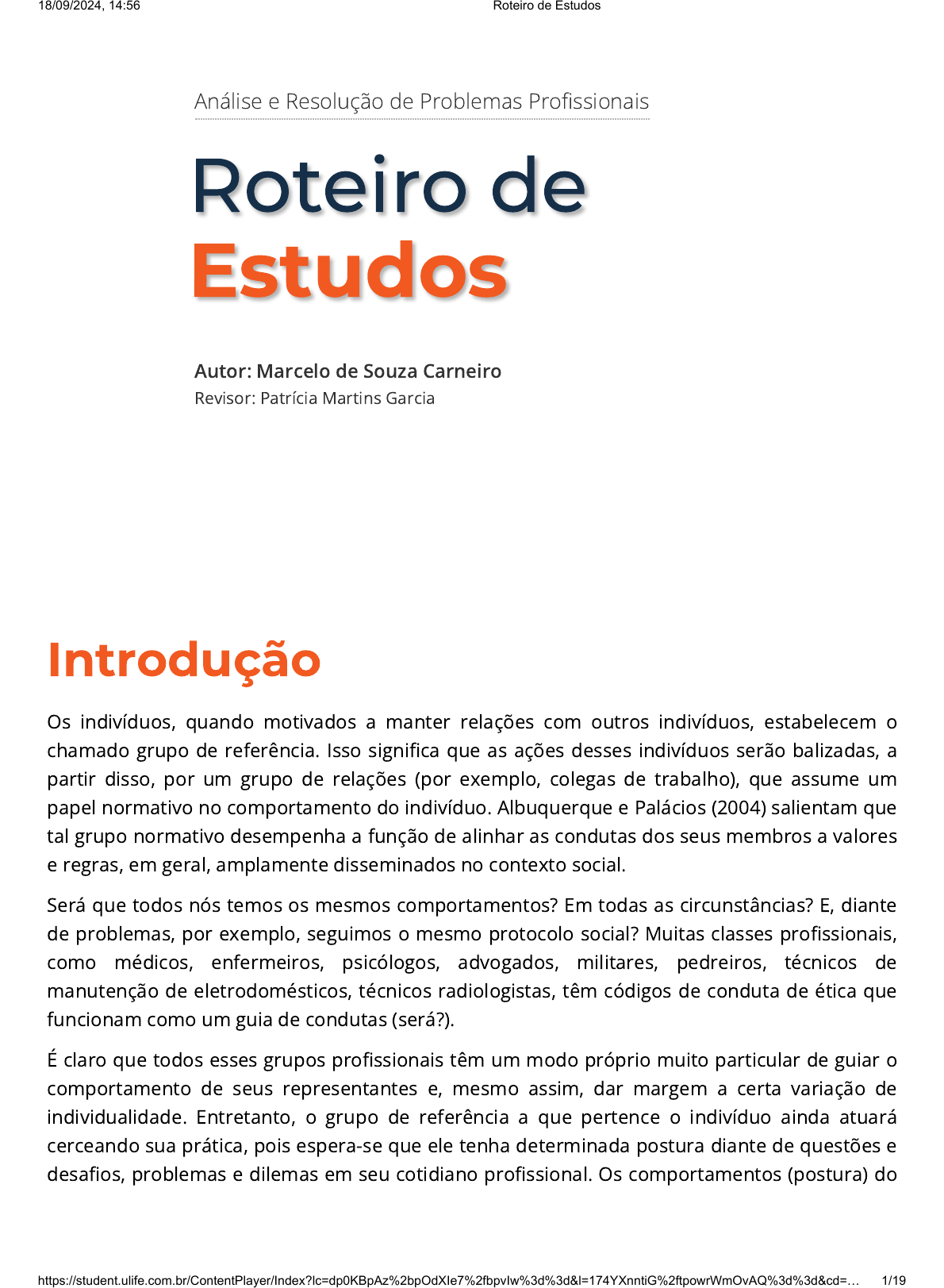 <p>Introdução</p><p>Os indivíduos, quando motivados a manter relações com outros indivíduos, estabelecem o</p><p>chamado grupo de referência. Isso signi�ca que as ações desses indivíduos serão balizadas, a</p><p>partir disso, por um grupo de relações (por exemplo, colegas de trabalho), que assume um</p><p>papel normativo no comportamento do indivíduo. Albuquerque e Palácios (2004) salientam que</p><p>tal grupo normativo desempenha a função de alinhar as condutas dos seus membros a valores</p><p>e regras, em geral, amplamente disseminados no contexto social.</p><p>Será que todos nós temos os mesmos comportamentos? Em todas as circunstâncias? E, diante</p><p>de problemas, por exemplo, seguimos o mesmo protocolo social? Muitas classes pro�ssionais,</p><p>como médicos, enfermeiros, psicólogos, advogados, militares, pedreiros, técnicos de</p><p>manutenção de eletrodomésticos, técnicos radiologistas, têm códigos de conduta de ética que</p><p>funcionam como um guia de condutas (será?).</p><p>É claro que todos esses grupos pro�ssionais têm um modo próprio muito particular de guiar o</p><p>comportamento de seus representantes e, mesmo assim, dar margem a certa variação de</p><p>individualidade. Entretanto, o grupo de referência a que pertence o indivíduo ainda atuará</p><p>cerceando sua prática, pois espera-se que ele tenha determinada postura diante de questões e</p><p>desa�os, problemas e dilemas em seu cotidiano pro�ssional. Os comportamentos (postura) do</p><p>Análise e Resolução de Problemas Pro�ssionais</p><p>Roteiro deRoteiro de</p><p>EstudosEstudos</p><p>Autor: Marcelo de Souza Carneiro</p><p>Revisor: Patrícia Martins Garcia</p><p>18/09/2024, 14:56 Roteiro de Estudos</p><p>https://student.ulife.com.br/ContentPlayer/Index?lc=dp0KBpAz%2bpOdXIe7%2fbpvIw%3d%3d&l=174YXnntiG%2ftpowrWmOvAQ%3d%3d&cd=… 1/19</p><p>pro�ssional ante os problemas que enfrentará pertencerão ao grupo de referências que o</p><p>referendará.</p><p>Os autores ainda destacam que muitas vezes somos surpreendidos atuando de maneira</p><p>inadequada em um dado momento, e, em outro, parece que aquele comportamento é</p><p>entendido como aceitável. O que será que varia: nós mesmos, o contexto, o grupo de</p><p>referência? Quando um problema (seja ele novo ou não) não resolvido faz com que,</p><p>momentaneamente, ainda nos fragilizemos, o que fazemos a partir disso é o que diferencia os</p><p>grupos de referências que nos aportam. Mas a máxima estabelecida pelo �lósofo francês Jean-</p><p>Paul Sartre ainda é verdadeira: “O que fazemos com o que fazem de nós?”. Segundo ele,</p><p>tendemos a estruturar um esquema que torne novamente conhecido aquilo que �cou incerto e</p><p>que nos permita sentir segurança outra vez.</p><p>Mas por que precisamos entender o que é um grupo para a busca na resolução de um dado</p><p>problema pro�ssional? Esse é o intuito deste material, demonstrar como a interação entre</p><p>pessoas tem papel decisivo na resolução de problemas.</p><p>Pessoas e Equipes e Solução de</p><p>Problemas</p><p>Biólogos, neurocientistas, antropólogos e outros estudiosos têm concluído que a vida humana</p><p>é grupal. O homem é um artefato social, produzido pela vivência em grupo. Grupos nos quais é</p><p>inserido: no mundo, na família (ou em qualquer outra forma coletiva que funcione assim).</p><p>Mesmo que busque se isolar, o indivíduo sofre ou é impactado pela coletividade humana. Pai,</p><p>mãe, chefes, clientes, vizinhos, fornecedores, colegas de trabalho, �guras públicas e muitas</p><p>outras pessoas in�uenciarão, nortearão e impactarão as nossas decisões e os nossos</p><p>comportamentos.</p><p>Neste sentido, cabe salientar que pouco importa quem executa a ação! Todavia, é o</p><p>comportamento em si, e seu signi�cado, que representa algo que o mobilizou. Em geral o</p><p>contexto que o circunda.</p><p>O papel de um grupo está diretamente ligado à discussão deste como um conjunto – formado</p><p>por duas ou mais pessoas que buscam alçar a consecução de um certo objetivo (por exemplo, a</p><p>resolução de um problema) – que mobiliza dos envolvidos/afetados certo grau de interação,</p><p>delimitado por uma temporalidade relativamente longa.</p><p>Assim sendo, Albuquerque e Palácios (2004) entendem que, para esse conjunto de indivíduos</p><p>ser considerado um grupo, será necessário que algumas condições (requisitos) sejam</p><p>18/09/2024, 14:56 Roteiro de Estudos</p><p>https://student.ulife.com.br/ContentPlayer/Index?lc=dp0KBpAz%2bpOdXIe7%2fbpvIw%3d%3d&l=174YXnntiG%2ftpowrWmOvAQ%3d%3d&cd=… 2/19</p><p>atendidas: (a) quanto menor for o número de seus membros; (b) quanto maior for a interação</p><p>entre os seus membros; (c) quanto maior for a sua história; (d) quanto mais a perspectiva de</p><p>um futuro partilhado seja percebida pelos seus membros.</p><p>Os autores compreendem que se os grupos são pequenos, as pessoas se conhecem de</p><p>maneira mais concreta, e vivenciam uma relação próxima, compartilhando, em alguma medida,</p><p>objetivos, anseios, expectativas, e, aceitam acordos coletivos construídos pelo próprio grupo.</p><p>Cabe diferenciar, aqui, o que é e o que não é um grupo. Imagine aquele ponto de ônibus e você</p><p>esperando o “174 – Vila Iara” das 17h30, para ir para casa. O ponto lotado. Esse coletivo é um</p><p>grupo? Não, pois cada uma das pessoas que está lá esperando depende apenas de si mesma</p><p>para conseguir “pegar o buzão”. Agora, pense naquele �m de semana em que você vai se reunir</p><p>com seus amigos para “bater uma bola”, “tomar uma cerveja” etc. Nessas condições, temos um</p><p>grupo constituído, pois é no coletivo que o objetivo é alcançado.</p><p>De outra forma, um grupo vai além de um “monte” de pessoas, pois há em seu âmago uma</p><p>interdependência de ações. Haja vista terem intera