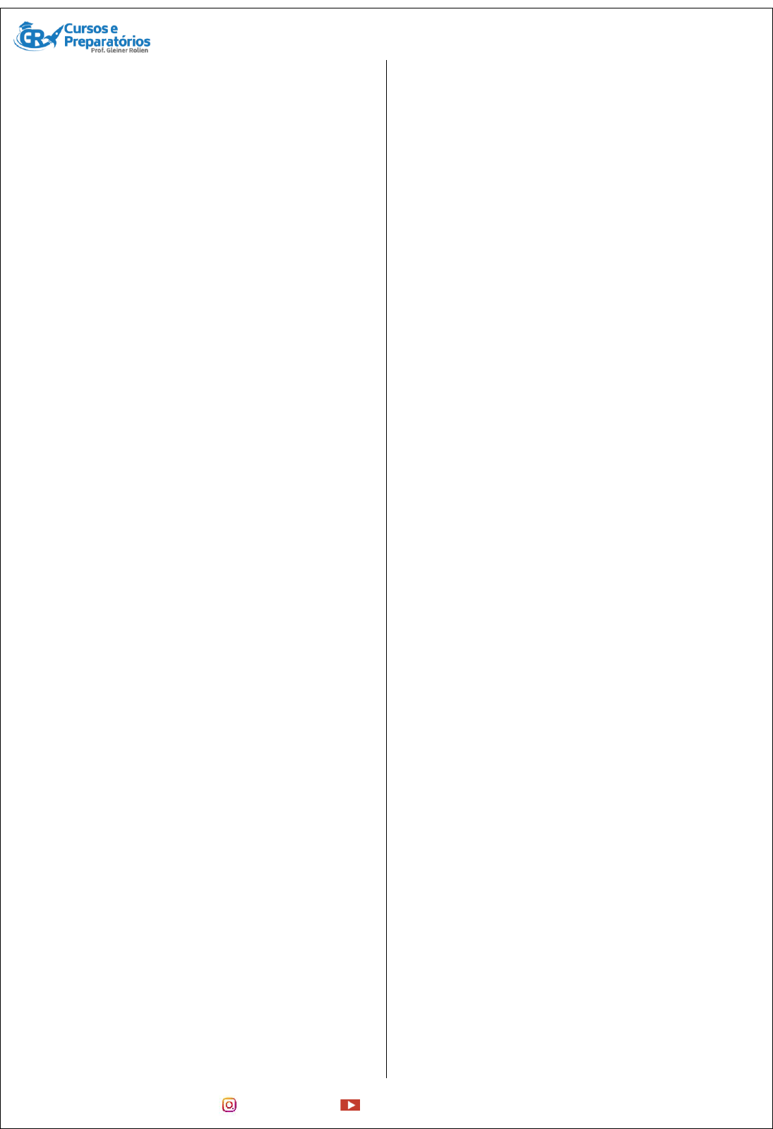 <p>Exercícios Extras Prof.: Gleiner Rolien</p><p>#estudaqueavidamuda gleiner. pereira / G.R Cursos e Preparatórios (87) 98109-8250</p><p>01) No que se refere à acentuação em língua</p><p>portuguesa, todas as palavras proparoxítonas (isto</p><p>é, aquelas que possuem a antepenúltima sílaba</p><p>como tônica), por exemplo, ônibus, tráfego,</p><p>inédito, fôlego, fenômeno, áridos, xícara e êxodo,</p><p>devem ser acentuadas.</p><p>( ) CERTO ( ) ERRADO</p><p>02) De acordo com o novo Acordo Ortográfico,</p><p>recebem acento agudo as palavras oxítonas com os</p><p>ditongos abertos grafados -éi, éu ou ói, podendo</p><p>esses dois últimos serem seguidos ou não de -s:</p><p>anéis, bacharéis, papéis; chapéu(s), troféu(s);</p><p>caubói(s) herói(s).</p><p>( ) CERTO ( ) ERRADO</p><p>03) Acentuam-se as paroxítonas “acórdão”,</p><p>“âmbar”, “fedérativa” e “bícolor”.</p><p>( ) CERTO ( ) ERRADO</p><p>04) Estão corretamente acentuados os seguintes</p><p>vocábulos: órgão, órfã, negligência e ocúlto.</p><p>( ) CERTO ( ) ERRADO</p><p>05) Respeitadas as regras de acentuação vigentes</p><p>no Brasil, as palavras “história” e “cáries” recebem</p><p>acento, sendo elas paroxítonas terminadas em</p><p>ditongo.</p><p>( ) CERTO ( ) ERRADO</p><p>06) Está correto o uso de acento nos seguintes</p><p>vocábulos: Coronavírus, Hanseníase, Rubéola e</p><p>Tétano.</p><p>( ) CERTO ( ) ERRADO</p><p>07) Utiliza-se o acento para destacar a sílaba grave</p><p>nas proparoxítonas iniciadas em “a”, como: álcool,</p><p>alicate, âmago e àlicerce.</p><p>( ) CERTO ( ) ERRADO</p><p>08) Ao analisar a palavra “TÁXI”, observamos que</p><p>possui 4 letras e 5 fonemas já a palavra CARRO</p><p>apresenta 5 letras e 4 fonemas.</p><p>( ) CERTO ( ) ERRADO</p><p>09) As palavras baiúca e feiúra estão corretamente</p><p>acentuadas pela regra especial do hiato.</p><p>( ) CERTO ( ) ERRADO</p><p>10) Os vocábulos “também” e “têm” são</p><p>acentuados graficamente de acordo com a mesma</p><p>regra de acentuação gráfica.</p><p>( ) CERTO ( ) ERRADO</p><p>11) Os vocábulos “Saúde” e “angústia” são</p><p>acentuados graficamente de acordo com a mesma</p><p>regra de acentuação gráfica.</p><p>( ) CERTO ( ) ERRADO</p><p>12) Os vocábulos “Paraná” e “aprendê-lo” são</p><p>acentuados graficamente de acordo com a mesma</p><p>regra de acentuação gráfica.</p><p>( ) CERTO ( ) ERRADO</p><p>13) O substantivo próprio “Luís” deve ser</p><p>acentuado, enquanto “Luiz” não pode receber</p><p>acento gráfico, pois o “i” hiato tônico só se acentua</p><p>quando estiver só na sílaba ou seguido de “s”.</p><p>( ) CERTO ( ) ERRADO</p><p>14) Não deve ser acentuada a primeira vogal dos</p><p>hiatos “oo” e “ee”: creem, deem, voo.</p><p>( ) CERTO ( ) ERRADO</p><p>15) Os termos “rúbrica”, “récorde" e “gratuíto"</p><p>devem ser acentuados graficamente devido à regra</p><p>da proparoxítona (os dois primeiros) e do hiato (o</p><p>terceiro).</p><p>( ) CERTO ( ) ERRADO</p>