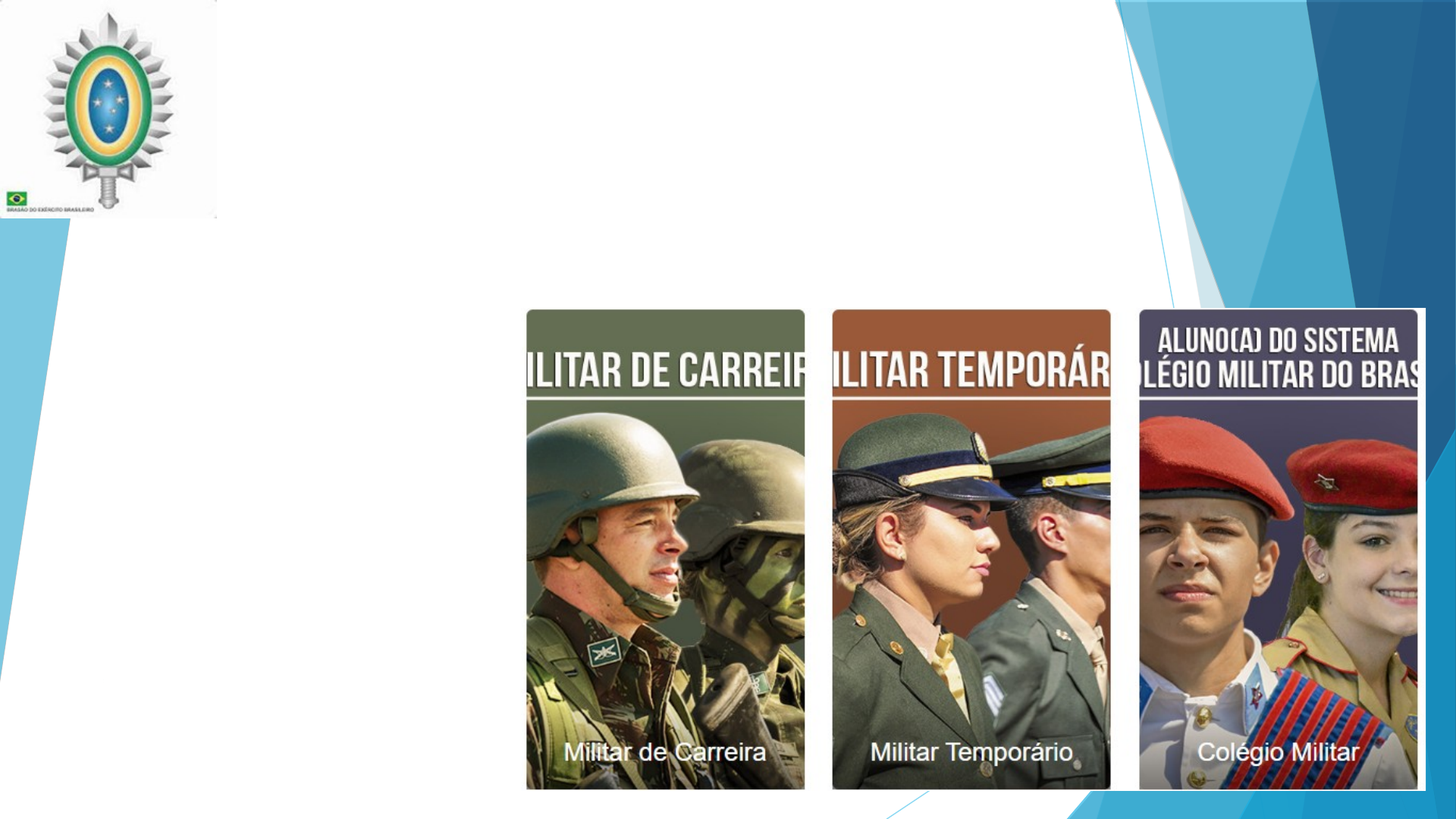 <p>Ingresso no</p><p>Exército Brasileiro</p><p>LEI Nº 6.880, DE 9 DE DEZEMBRO DE 1980</p><p>Dispõe sobre o Estatuto dos Militares.</p><p>As Forças Armadas, essenciais à execução da política de segurança nacional, são constituídas pela Marinha, pelo Exército e pela Aeronáutica, e destinam-se a defender a Pátria e a garantir os poderes constituídos, a lei e a ordem. São instituições nacionais, permanentes e regulares, organizadas com base na hierarquia e na disciplina, sob a autoridade suprema do Presidente da República e dentro dos limites da lei.</p><p>LEI No 4.375, DE 17 DE AGOSTO DE 1964.</p><p>Lei do Serviço Militar.</p><p>O Serviço Militar consiste no exercício de atividades específicas desempenhadas nas Forças Armadas - Exército, Marinha e Aeronáutica - e compreenderá, na mobilização, todos os encargos relacionados com a defesa nacional.</p><p>O serviço militar temporário não se destina ao ingresso na carreira militar</p><p>Todos os brasileiros são obrigados ao Serviço Militar, na forma da presente Lei e sua regulamentação.</p><p>As mulheres ficam isentas do Serviço Militar em tempo de paz e, de acordo com suas aptidões, sujeitas aos encargos do interesse da mobilização.</p><p>O Serviço Militar inicial será prestado por classes constituídas de brasileiros nascidos entre 1º de janeiro e 31 de dezembro, no ano em que completarem 19 (dezenove) anos de idade.</p><p>LEI Nº 6.880, DE 9 DE DEZEMBRO DE 1980</p><p>Dispõe sobre o Estatuto dos Militares.</p><p>Os membros das Forças Armadas, em razão de sua destinação constitucional, formam uma categoria especial de servidores da Pátria e são denominados militares.</p><p>Os militares encontram-se em uma das seguintes situações:</p><p>Ativa:</p><p>I - os de carreira</p><p>II - os incorporados às Forças Armadas para prestação de serviço militar inicial</p><p>II - os temporários, incorporados às Forças Armadas para prestação de serviço militar, obrigatório ou voluntário</p><p>III - os componentes da reserva das Forças Armadas quando convocados, reincluídos, designados ou mobilizados;</p><p>IV - os alunos de órgão de formação de militares da ativa e da reserva; e</p><p>V - em tempo de guerra, todo cidadão brasileiro mobilizado para o serviço ativo nas Forças Armadas.</p><p>Inatividade:</p><p>I - os da reserva remunerada</p><p>II - os reformados</p><p>MILITAR TEMPORÁRIO</p><p>Serviço Militar Obrigatório</p><p>- Duração normal de 12 meses, podendo ser reduzido em 2 meses ou dilatado em 6 meses</p><p>Concorre ao engajamento, dependendo da existência de vagas</p><p>Reengajamento anual até o limite de 8 anos no total, dependendo do desempenho durante o ano</p><p>Concorre para realização de prova seletiva para o Curso de Formação de Cabos (CFC)</p><p>Os militares que concluírem o CFC, poderão ser promovidos a graduação de Cabo, dependendo da existência de vagas</p><p>Os militares com CFC poderão concorrer para realizar o Curso de Formação de Sargentos Temporários (CFST)</p><p>Ingresso: por meio do Alistamento Militar</p><p>MILITAR TEMPORÁRIO</p><p>Tiro de Guerra</p><p>Outra forma de prestar o serviço militar é por meio dos Tiros de Guerra (TG) – órgãos de formação de reserva que possibilitam aos convocados, mas não incorporados em organizações militares da ativa, prestar o serviço militar inicial nos municípios onde estão residindo.</p><p>Desse modo, os jovens convocados recebem instrução, conciliando-a com o trabalho e estudo. No Tiro de Guerra, o Atirador deverá permanecer por um período de 6 a 10 meses participando de atividades específicas das Forças Armadas, ao término do período o referido militar é licenciado das fileiras do Exército.</p><p>Ingresso: por meio do Alistamento Militar em</p><p>Município que tenha TG</p><p>MILITAR TEMPORÁRIO</p><p>CPOR E NPOR</p><p>São estabelecimentos de ensino militar de formação de grau médio, da linha de ensino bélico, destinados a formar o Aspirante-a-Oficial da Reserva de 2ª classe, habilitando-o a ingressar no Corpo de Oficiais da Reserva do Exército (CORE) e a contribuir para o desenvolvimento da Doutrina Militar na área de sua competência.</p><p>Os candidatos à matrícula nos Centros de Preparação de Oficiais da Reserva (CPOR) ou nos Núcleos de Preparação de Oficiais da Reserva (NPOR) devem comparecer à seleção, conforme indicado pela Junta de Serviço Militar.</p><p>Condições para ingresso:</p><p>- Só é possível durante o período de seleção para o Serviço Militar Obrigatório (alistamento);</p><p>- Os candidatos, se considerados aptos na Seleção Geral a que</p><p>forem submetidos, serão encaminhados à Seleção Especial para o CPOR / NPOR.</p><p>- Os candidatos para o CPOR / NPOR devem ter grau de escolaridade</p><p>igual ou superior à 3ª série do Ensino Médio.</p><p>MILITAR TEMPORÁRIO</p><p>Serviço Militar Voluntário</p><p>Requisitos globais</p><p>- ser voluntário;</p><p>- ser brasileiro nato, para o ingresso como oficial, e brasileiro nato ou naturalizado, para o ingresso como praça;</p><p>- ser aprovado em exame intelectual, constituído por provas ou por provas e títulos, compatíveis com o nível de escolaridade exigido;</p><p>- ser aprovado em inspeção de saúde;</p><p>- ser aprovado em exame de aptidão física;</p><p>- estar em dia com as obrigações do Serviço Militar e</p><p>da Justiça Eleitoral;</p><p>- ter altura mínima de 1,60 m para homens e</p><p>de 1,55 m para mulheres; e</p><p>- limite de permanência de até 96 meses (8 anos).</p><p>MILITAR TEMPORÁRIO</p><p>Serviço Militar Voluntário</p><p>1. Oficial Superior Temporário (OST)</p><p>2. Oficial Médico/Farmacêutico/Dentista/Veterinário (OMFDV)</p><p>3. Oficial Técnico Temporário (OTT)</p><p>4. Sargento Técnico Temporário (STT)</p><p>5. Cabo Especialista Temporário (CET)</p><p>MILITAR TEMPORÁRIO</p><p>Serviço Militar Voluntário</p><p>Oficial Superior Temporário 