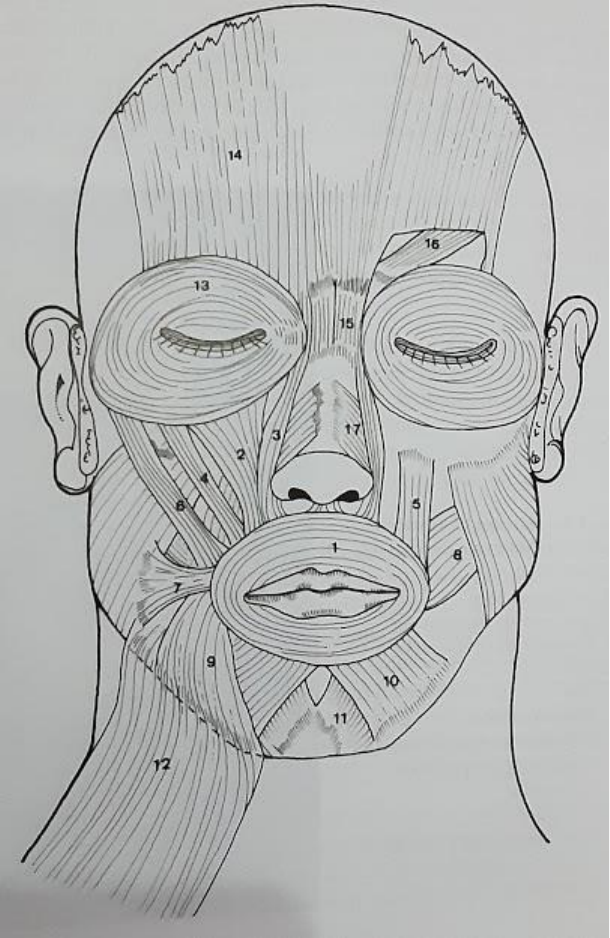 <p>Exercício sobre músculos do Sistema Estomatognático</p><p>1. Identifique os músculos da mímica facial, numerados de 1 a 17.</p><p>2. Identifique os músculos da peça anatômica referente a mímica facial</p><p>3. Relacione o músculo a sua origem, inserção e função preenchendo a tabela a</p><p>seguir:</p><p>MÚSCULO ORIGEM INSERÇÃO FUNÇÃO</p><p>Orbicular da boca</p><p>ou orbicularis oris</p><p>Levantador do</p><p>lábio superior</p><p>Levantador do</p><p>lábio superior e</p><p>asa do nariz</p><p>Zigomático</p><p>menor</p><p>Levantador do</p><p>ângulo da boca</p><p>Zigomático maior</p><p>Risório</p><p>Bucinador</p><p>Abaixador do</p><p>ângulo da boca</p><p>Abaixador do</p><p>lábio inferior</p><p>Mentoniano</p><p>Orbicular do olho</p><p>ou orbicularis</p><p>oculi</p><p>Frontal/</p><p>occipofrontal</p><p>Prócero</p><p>Corrugador do</p><p>supercílio</p><p>Nasal</p><p>4. Identifique os músculos da mastigação:</p><p>5. Identifique os músculos da mastigação, 1 e 2, na peça anatômica. O músculo</p><p>número 3 é o M. milo-hióideo. Em seguida, identifique os músculos da outra</p><p>peça anatômica, onde o número 1 é o corpo adiposo da bochecha.</p><p>6. Identifique os músculos supra-hióideos a seguir:</p><p>7. Preencha a tabela com a origem, inserção e função dos músculos a seguir:</p><p>MÚSCULO ORIGEM INSERÇÃO FUNÇÃO</p><p>Masseter</p><p>Temporal</p><p>Pterigóideo medial</p><p>Pterigóideo lateral</p><p>Digástrico</p><p>Estilo-hióideo</p><p>Milo-hióideo</p><p>Gênio- hióideo</p><p>8. Identifique os músculos da língua:</p><p>Nomeie os músculos intrínsecos da língua na peça anatômica:</p><p>9. Identifique os músculos do palato:</p><p>Identifique o músculo em verde constituinte dos músculos do palato.</p><p>10. Identifique os m. constrictores da faringe.</p><p>11. Identifique a origem, inserção e função dos músculos da língua e palato:</p><p>MÚSCULO ORIGEM INSERÇÃO FUNÇÃO</p><p>Intrínsecos da</p><p>língua</p><p>Genioglosso</p><p>Hioglosso</p><p>Estiloglosso</p><p>Palatoglosso</p><p>Palatofaríngeo</p><p>Tensor do véu</p><p>palatino</p><p>Levantador do véu</p><p>palatino</p><p>Da úvula</p>