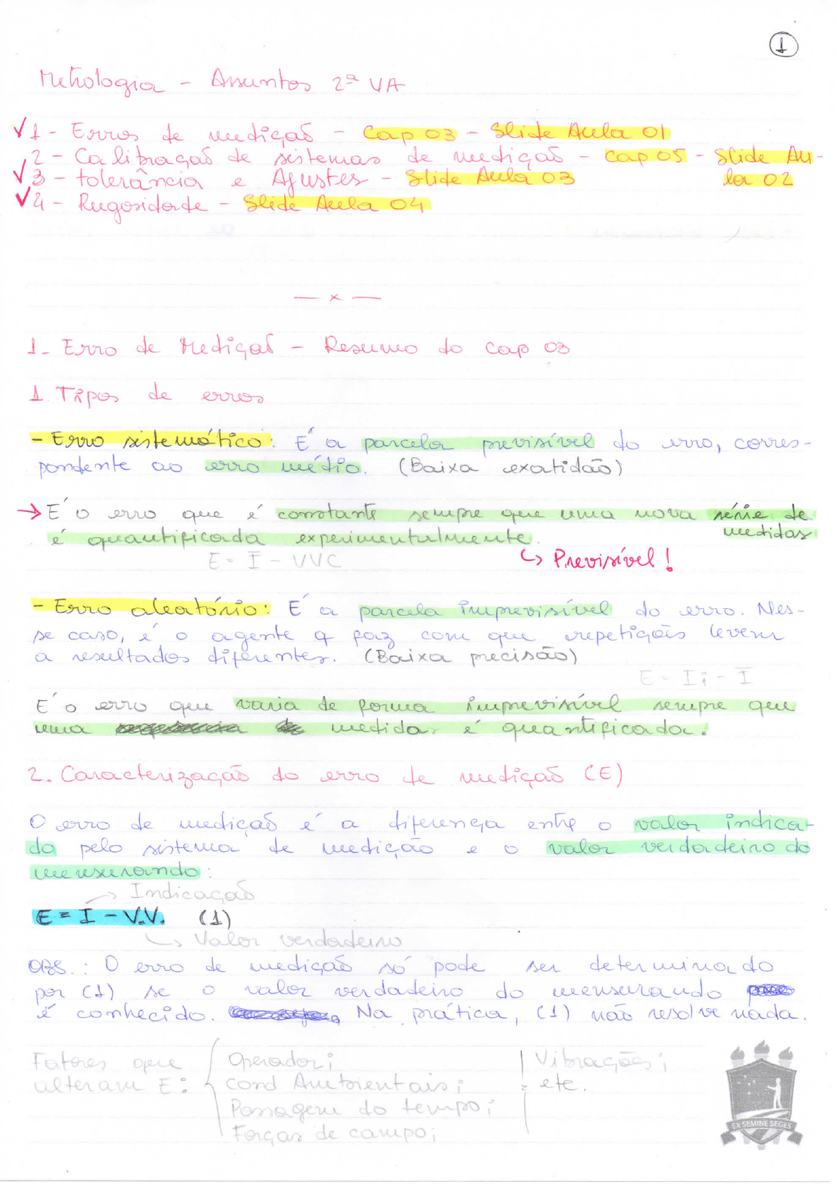 <p>1 Metrologia - VA - Error de - Cap 03 - slide 01 2 - de sistemas de medicas - cap 05 - - tolerancia e - Slide Aula 03 02 - - Slide 04 Erro de - do cap 03 1 de error - Erro a previsive erro, corres- pondente erro (Baixa erro que i constants uma de medidas I - Previsivel - Erro E a parcela do erro. Nes- se caso, agente of que leven a resultados (Baixa E erro varia de que 2. do erro te medicas (E) erro de medicas a entre indicat do pelo de valor do E (1) Valor OBS : erro de medicas pode ser per (1) se valor do conhecido. Na (1) now resolve do EX SEMINE SEGES de</p><p>2 3. Componentes do erro de medicas : As components saw erro e erro ale- cte durante a de Aleatónio Muda a Erro tendencia e possivel erro sistematico de um de medicas da seguinte forma Es= Ix - V.V (2) Ioo a de um (Td) A tende estimativa do erro porque Es precisa ser calculado ate infi- (3) I: de timito de V.V.C : Estimativa E' estima- do U.V. do logo, A etc que deve ser adicionada a indica- M corrigin error do de C - Td = V.V.C. I (4) A a de sistema de medicas apor error (5) = Ii SEMINE</p><p>3 (Re) 5_ Erro Erro pode calculado pl cada der seguinte Ea - I (6) finita; Ii indic. - Ii : A do Ea zero. (Re) metrologia i a do por do precisous de que a de dentro do qual erro de de de de Ponto de do de A b vidade (Re) b Antes de valor da a (u) e de liberdade : - Incerteza : E medida da da componente do dos error Ind. + u u (7) Na que normal. - Gaus de : n: de de liberdade te de com do i como N: de goes (8)</p><p>4 Definido u e da Re consi- derando a sob a normal contidor dentro faixa X - que cort responde or area total de u 95,45% X 1018 1015g 1018,302g De acordo cl 95.45% de chance do erro contido no intervalo de + = 2.1,659 = A Re estima a faixor da Ea espe- pl n Re = u (9) Re==t de (Tabela A-4 A faixa def Re corresponde intesvolo do erro (Ea) cl 95,45% de de Re = 2,255 g SEMINE SEGES</p>