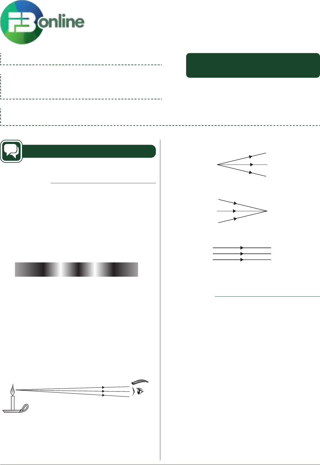 <p>FÍSICA</p><p>F B O N L I N E . C O M . B R</p><p>//////////////////</p><p>Professor(a): Carlos Eduardo</p><p>assunto: Introdução à ÓptICa GEométrICa</p><p>frente: FísICa II</p><p>001.741_128099/18</p><p>AULAS 01 E 02</p><p>EAD – ITA/IME</p><p>Resumo Teórico</p><p>Introdução à Óptica Geométrica</p><p>Sabemos que as ondas de rádio, de micro-ondas, de raios X</p><p>e até de radiações (infravermelho e ultravioleta) são tipos de ondas</p><p>eletromagnéticas. Maxwell mostrou, por meio de quatro equações</p><p>do eletromagnetismo (denominadas Equações de Maxwell), que o</p><p>campo elétrico e o campo magnético oscilam mutuamente e produzem</p><p>ondas eletromagnéticas. A luz que enxergamos também é uma onda</p><p>desta natureza, porém, ao incidir nos nossos olhos, faz-nos perceber</p><p>sensações visuais. Conseguimos enxergar somente em uma região</p><p>limitada.</p><p>Espectro visível</p><p>450 nm 500 nm 580 nm 600 nm 650 nm</p><p>Iremos estudar, em Óptica Geométrica, a óptica “visível” e,</p><p>assim, explicar alguns fenômenos da natureza. Tais fenômenos são</p><p>as formações de imagens em sistemas ópticos.</p><p>Como o próprio nome sugere, vamos trabalhar a geométrica</p><p>da óptica sem nos importar, em primeira instância, com interferências</p><p>e difrações, que são fenômenos puramente ondulatórios.</p><p>Como faremos isso? Bem, em primeiro lugar, devemos entender</p><p>que, para um observador visualizar um objeto, um raio luminoso</p><p>deve partir do objeto e atingir o olho deste observador.</p><p>Assim, representa-se graficamente um raio luminoso como uma seta</p><p>indicando o caminho da luz.</p><p>Não se pode isolar um raio luminoso. Portanto, entenda que</p><p>isto é apenas uma representação gráfica.</p><p>Temos, na verdade, feixes luminosos. Três possíveis tipos de</p><p>feixes são:</p><p>• Divergente:• Divergente</p><p>• Convergente</p><p>• Paralelo</p><p>(Impróprio, dirige-se para o infinito.)</p><p>• Convergente:</p><p>• Divergente</p><p>• Convergente</p><p>• Paralelo</p><p>(Impróprio, dirige-se para o infinito.)</p><p>• Paralelo:</p><p>• Divergente</p><p>• Convergente</p><p>• Paralelo</p><p>(Impróprio, dirige-se para o infinito.)(impróprio, dirige-se para o infinito)</p><p>Fontes de luz</p><p>Quando um corpo envia luz para um observador, ele não</p><p>necessariamente “cria” essa luz. Os corpos luminosos são chamados de</p><p>fontes primárias. Os que podem emitir luz proveniente de outro local</p><p>(também conhecidos como corpos iluminados) para um observador</p><p>são conhecidos como fontes secundárias.</p><p>Alguns exemplos de fontes primárias são:</p><p>• incandescente: emite luz devido a uma temperatura elevada.</p><p>• luminescente: emite luz mesmo em temperaturas relativamente</p><p>baixas. Lâmpada de neon – objetos fluorescentes, que emitem luz</p><p>através de uma causa excitadora; e fosforescentes, que emitem luz</p><p>mesmo após a causa excitadora ser cessada.</p><p>Classificamos uma fonte luminosa, também, em relação</p><p>ao seu tamanho. Fontes de dimensões desprezíveis são ditas</p><p>fontes pontuais. Caso contrário, são chamadas de fontes extensas.</p><p>A natureza da luz depende da sua frequência e do seu</p><p>comprimento de onda, pois estas duas grandezas estão diretamente</p><p>ligadas. Dependendo da fonte, podemos ter diferentes tipos de luz.</p><p>Assim, por exemplo, vapores de sódio em incandescência emitem luz</p><p>amarela; moléculas ionizadas de hidrogênio emitem luz vermelha.</p><p>Cada um desses tipos contendo uma só frequência (uma só cor) é</p><p>denominado luz monocromática. Se for formado por um conjunto</p><p>de cores, policromático.</p><p>2F B O N L I N E . C O M . B R</p><p>//////////////////</p><p>Módulo de estudo</p><p>001.741_128099/18</p><p>Classificação dos meios em relação ao seu</p><p>comportamento com a luz</p><p>1. Transparentes: são os meios que se deixam atravessar pela luz.</p><p>Através deles, podemos identificar objetos.</p><p>2. Translúcidos: são os meios que se deixam atravessar pela luz. Não</p><p>podemos, através deles, identificar objetos, porque a trajetória dos</p><p>raios é irregular.</p><p>3. Opacos: não se deixam atravessar pela luz.</p><p>Um meio em que todos os seus elementos de volume</p><p>apresentam as mesmas propriedades é denominado homogêneo.</p><p>A atmosfera, como um todo, não pode ser considerada homogênea,</p><p>mas se olharmos para o ar, em pequenas quantidades, poderá ser</p><p>considerado homogêneo.</p><p>Se as propriedades associadas a um elemento de volume não</p><p>depende das direções em que são medidas, o meio é classificado como</p><p>isotrópico. Existem cristais nos quais a velocidade da luz é diferente,</p><p>dependendo da direção que você queira medir; estes são denominados</p><p>anisotrópicos.</p><p>Observação:</p><p>Meios isotrópicos, transparentes e homogêneos</p><p>(simultaneamente) são denominados ordinários.</p><p>Damos o nome de sistema óptico a uma superfície refletora</p><p>ou refratora ou a um conjunto de superfícies refletoras e refratoras.</p><p>Um sistema no qual todas as superfícies são refletoras é</p><p>chamado catóptrico; se todas as superfícies constituintes do sistema</p><p>forem refratoras, o sistema é dióptrico; um sistema que possuem</p><p>superfícies refletoras e refratoras é chamado catadióptrico.</p><p>Ponto objeto e ponto imagem</p><p>Os pontos objeto de um sistema ótico se classificam em função</p><p>do tipo do pincel incidente.</p><p>Ponto objeto real é o vértice de um pincel incidente divergente.</p><p>POR</p><p>Ponto objeto real</p><p>Sistema ótico</p><p>Ponto objeto virtual é o vértice de um pincel incidente</p><p>convergente.</p><p>Ponto objeto virtual</p><p>POV</p><p>Sistema ótico</p><p>Ponto objeto impróprio é o vértice de um pincel incidente de</p><p>raios paralelo