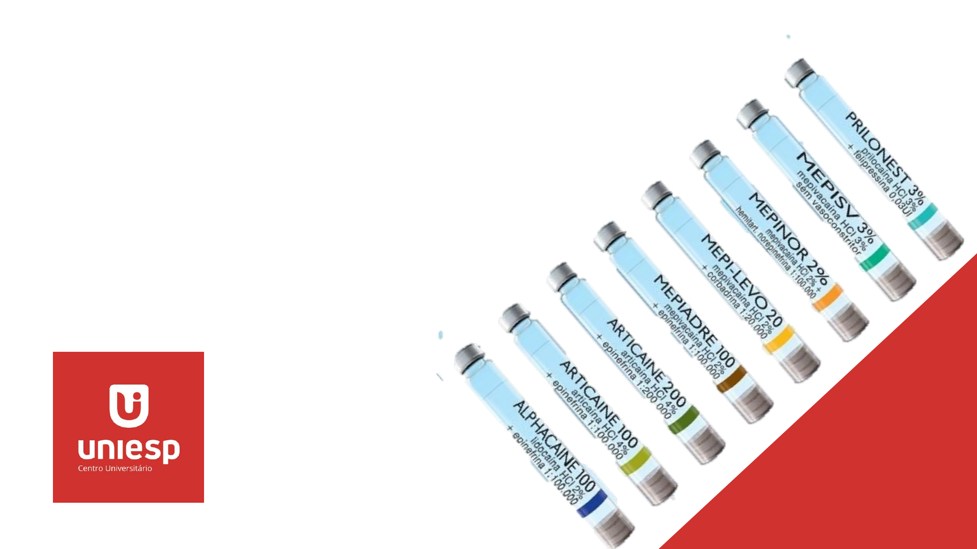 <p>AÇÃO CLÍNICA DE</p><p>SUBSTÂNCIAS ESPECÍFICAS</p><p>Prof. Ms. José Viana Filho e</p><p>Lília van der Linden</p><p>Curso de Odontologia</p><p>2022</p><p>INTRODUÇÃO</p><p>• Anestésicos existentes em 1980 utilizados nos EUA:</p><p>- Lidocaína;</p><p>- Mepivacaína;</p><p>- Prilocaína;</p><p>- Procaína + Propoxicaína;</p><p>• Canadá 1982 e EUA 1985:</p><p>- Bupivacaína;</p><p>- Etidocaína;</p><p>• Alemanha 1975, Canadá 1983 e EUA 2000:</p><p>- Articaína.</p><p>INTRODUÇÃO</p><p>A escolha correta</p><p>do anestésico e</p><p>suas combinações</p><p>dependem de que?</p><p>Duração da ação</p><p>Dose máxima</p><p>DURAÇÃO DE AÇÃO</p><p>• Depende de alguns fatores, que podem prolongar ou,</p><p>mais comumente, reduzir a ação do efeito anestésico;</p><p>• Fatores:</p><p>- Resposta do indivíduo à substância;</p><p>- Precisão anestésica;</p><p>- Condição do tecido;</p><p>- Variações anatômicas;</p><p>- Tipo de injeção administrada.</p><p>FATORES QUE INTERFEREM NA DURAÇÃO DE</p><p>AÇÃO DOS ANESTÉSICOS LOCAIS</p><p>Resposta à substância – Curva de distribuição normal</p><p>Normorreativos;</p><p>Hiper-reativos;</p><p>Hiporreativos.</p><p>FATORES QUE INTERFEREM NA DURAÇÃO DE</p><p>AÇÃO DOS ANESTÉSICOS LOCAIS</p><p>Acurácia anestésica</p><p>Influenciada pela quantidade de tecido mole;</p><p>Não influencia anestesias supraperiosteais ou</p><p>com determinados fármacos;</p><p>A deposição do sal anestésico deve ser o próximo</p><p>possível do nervo, para uma maior profundidade e</p><p>duração anestésica.</p><p>FATORES QUE INTERFEREM NA DURAÇÃO DE</p><p>AÇÃO DOS ANESTÉSICOS LOCAIS</p><p>Condição do tecido de infiltração</p><p>Maior profundidade e durabilidade anestésica: tecidos sadios e</p><p>área com pouca vascularização;</p><p>Menor profundidade e durabilidade anestésica: tecidos</p><p>inflamados, infeccionados, com dor (aguda ou crônica).</p><p>RNH+ ↔ RN + H+</p><p>pH (tecido sadio: 7,4)*</p><p>pKa (constante de dissociação – varia de acordo com os AL)*</p><p>FATORES QUE INTERFEREM NA DURAÇÃO DE</p><p>AÇÃO DOS ANESTÉSICOS LOCAIS</p><p>Variações anatômicas</p><p>Mandíbula (mais comum): altura do forame mandibular, espessura da</p><p>cortical óssea e largura do ramo;</p><p>Maxila: osso alveolar mais denso (dificuldade na anestesia</p><p>supraperiosteal) e altura do arco zigomático.</p><p>FATORES QUE INTERFEREM NA DURAÇÃO DE</p><p>AÇÃO DOS ANESTÉSICOS LOCAIS</p><p>Tipo de injeção</p><p>Bloqueio x supraperiospeal;</p><p>Volumes menores de injeção diminuem o efeito de duração;</p><p>Doses maiores não aumentam a duração.</p><p>DOSES MÁXIMAS</p><p>• São apresentadas em mg/kg;</p><p>• Cuidado com a resposta do paciente;</p><p>• Doses máximas têm pouco alcance na Odontologia, no</p><p>entanto alguns pacientes necessitam de uma atenção maior:</p><p>- Crianças pequenas e de baixo peso;</p><p>- Idosos debilitados;</p><p>• Pacientes com diminuição da função hepática ou perfusão,</p><p>permanecem mais tempo com anestésicos do tipo amida no</p><p>corpo (aumento da meia-vida).</p><p>DOSE MÁXIMA RECOMENDADA (DMR)</p><p>• Quando a DMR é excedida, não há garantia de que ocorrerá uma</p><p>superdosagem</p><p>• Em alguns indivíduos, pode haver uma superdosagem com doses</p><p>muito abaixo da DMR calculada (hiper-responsivos ao fármaco)</p><p>• Alguns tubetes de anestésicos locais indicam que o volume de</p><p>solução contido nele seja de 1,7 mℓ, e não o “tradicional” 1,8 mℓ</p><p>DOSE MÁXIMA RECOMENDADA (DMR)</p><p>CÁLCULO DE mg DO ANESTÉSICO POR TUBETE</p><p>(TUBETE = 1,8 ml)</p><p>ANESTÉSICO LOCAL DMR (mg/kg) % [ ] mg/ml X 1,8ml = mg/tubete</p><p>Articaína 7,0 [4] 40 72</p><p>Bupivacaína 2,0 [0,5] 5 9</p><p>Lidocaína 7,0 [2,0] 20 36</p><p>Mepivacaína 6,6 [2,0] e [3,0] 20 e 30 36 e 54</p><p>Prilocaína 8,0 [4] 40 72</p><p>DOSE MÁXIMA RECOMENDADA (DMR)</p><p>CÁLCULO DE mg DO ANESTÉSICO POR TUBETE</p><p>(TUBETE = 1,8 ml)</p><p>ANESTÉSICO LOCAL DMR (mg/kg) % [ ] mg/ml X 1,8ml = mg/tubete</p><p>Articaína 7,0 [4] 40 72</p><p>Bupivacaína 2,0 [0,5] 5 9</p><p>Lidocaína 7,0 [2,0] 20 36</p><p>Mepivacaína 6,6 [2,0] e [3,0] 20 e 30 36 e 54</p><p>Prilocaína 8,0 [4] 40 72</p><p>Ex: Lindocaína 2%</p><p>2 g -------------- 100 mL</p><p>2000mg ------- 100 mL</p><p>20 mg ---------- 1 mL</p><p>• Quantos mg de anestésico possui</p><p>em cada tubete?</p><p>• Quanto teremos em um</p><p>tubete odontológico?</p><p>1 mL ----------- 20 mg</p><p>1,8 mL --------- x</p><p>1 tubete = 36 mg</p><p>DOSE MÁXIMA RECOMENDADA (DMR)</p><p>• Primeiro Passo: Quantos mg de anestésicos possuem em</p><p>cada tubete</p><p>• Segundo Passo: Qual a dosagem máxima por peso corpóreo</p><p>• Terceiro Passo: Determinar a dose máxima em tubetes</p><p>DOSE MÁXIMA RECOMENDADA (DMR)</p><p>Paciente do sexo feminino, 22</p><p>anos de idade, saudável, 50kg</p><p>irá realizar um procedimento</p><p>que requer a utilização de</p><p>cloridrato de lidocaína com</p><p>epinefrina (1:100.000). Qual o</p><p>número máximo de tubetes</p><p>anestésicos para este</p><p>procedimento?</p><p>DMR=</p><p>7,0mg/kg</p><p>Tubete=</p><p>20mg/ml</p><p>7mg – 1kg</p><p>?mg – 50kg</p><p>= 350mg de AL</p><p>20mg – 1ml</p><p>350mg - ?ml</p><p>= 17,5ml de AL</p><p>Tubete= 1,8ml</p><p>Quantidade de</p><p>tubetes:</p><p>17,5/1,8</p><p>= 9,7 tubetes</p><p>Lidocaína 7,0 [2,0] 20 36</p><p>ANESTÉSICO LOCAL DMR (mg/kg) % [ ] mg/ml X 1,8ml = mg/tubete</p><p>DOSE MÁXIMA RECOMENDADA (DMR)</p><p>Paciente do sexo masculino, 6</p><p>anos de idade, saudável, 20kg</p><p>irá realizar um procedimento</p><p>que requer a utilização de</p><p>cloridrato de mepivacaína sem</p><p>vasoconstritor. Qual o número</p><p>máximo de tubetes</p><p>anestésicos para este</p><p>procedimento?</p><p>DMR= 6,6mg/kg</p><p>Tubete=</p><p>30mg/ml</p><p>6,6mg – 1kg</p><p>?mg – 20kg</p><p>= 132mg de AL</p><p>30mg 