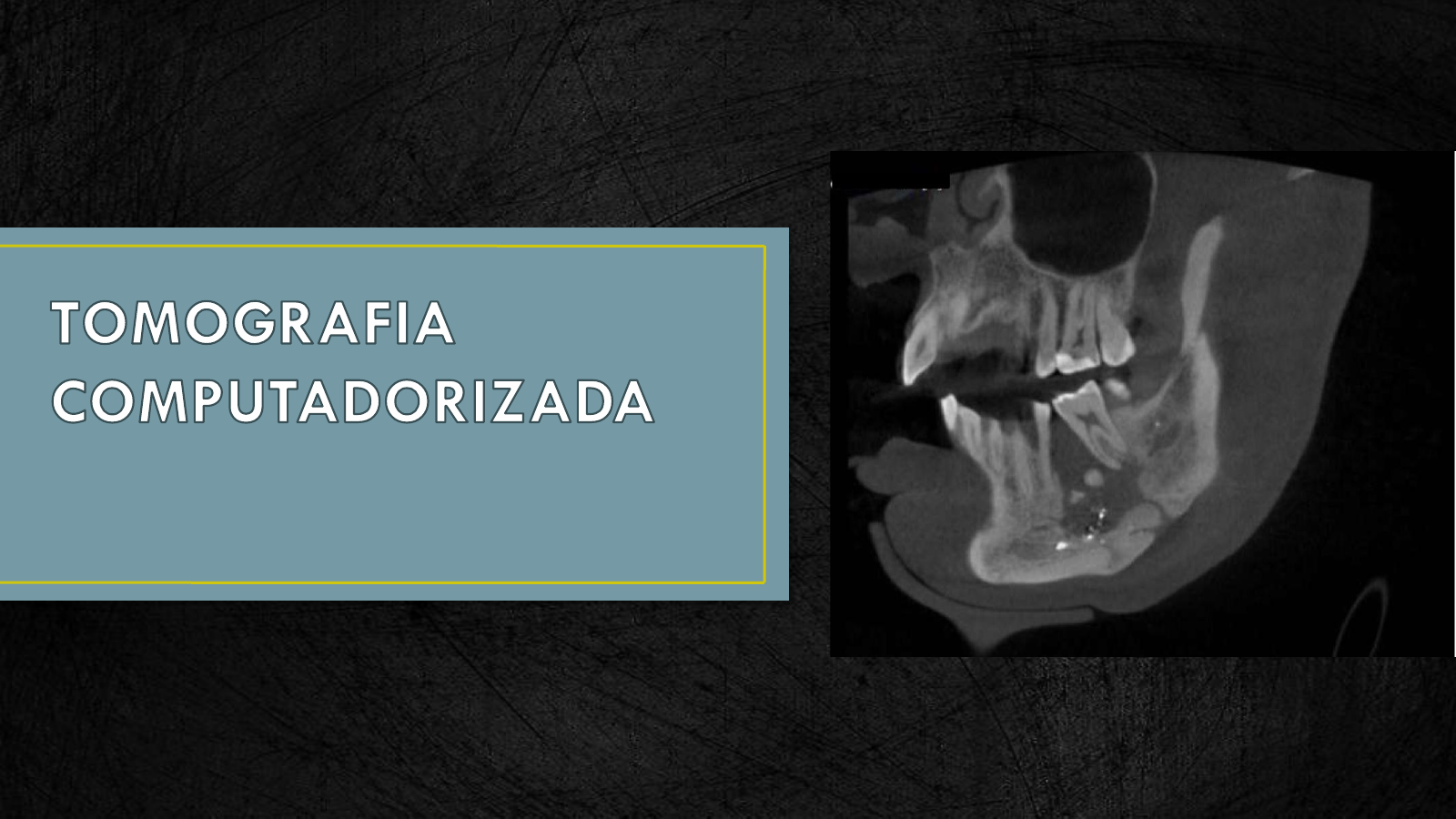 <p>Prof. Manuela Furtado</p><p>Prof. Vilma Adeodato</p><p>Raios X</p><p>• Röntgen</p><p>1895</p><p>Radiologia</p><p>• Ciência que estuda o interior</p><p>do corpo humano por meio de</p><p>imagens, obtidas através dos</p><p>raios X, os quais são capazes</p><p>de atravessar um objeto e</p><p>imprimir a imagem deste numa</p><p>película de filme</p><p>GARIB et al., 2007</p><p>Prof. Vilma Adeodato</p><p>Estruturas</p><p>tridimensionais</p><p>Imagens</p><p>bidimensionais</p><p>POLIDO, 2014www.institutosaopaulo.com.br</p><p>Prof. Vilma Adeodato</p><p>Prof. Vilma Adeodato</p><p>V</p><p>A</p><p>N</p><p>TA</p><p>G</p><p>EN</p><p>S</p><p>Excelente resolução</p><p>Ausência de sobreposições</p><p>Visualização de imagens nos três</p><p>planos</p><p>Visão tridimensional da estrutura</p><p>Precisão nas mensurações</p><p>Prof. Vilma Adeodato</p><p>Prof. Vilma Adeodato</p><p>• Tomos: Corte</p><p>• Grafia: Imagem</p><p>• Imagem em Cortes</p><p>Prof. Vilma Adeodato</p><p>• Método de diagnóstico por imagem que utiliza radiação X e permite</p><p>obter a reprodução de uma secção do corpo humano em qualquer um</p><p>dos três planos do espaço.</p><p>GARIB et al., 2007</p><p>Prof. Vilma Adeodato</p><p>• Método de diagnóstico por imagem que utiliza radiação X e permite</p><p>obter a reprodução de uma secção do corpo humano em qualquer um</p><p>dos três planos do espaço.</p><p>GARIB et al., 2007</p><p>Prof. Vilma Adeodato</p><p>• Método de diagnóstico por imagem que utiliza radiação X e permite</p><p>obter a reprodução de uma secção do corpo humano em qualquer um</p><p>dos três planos do espaço.</p><p>GARIB et al., 2007</p><p>Prof. Vilma Adeodato</p><p>Prof. Vilma Adeodato</p><p>Prof. Vilma Adeodato</p><p>Axial</p><p>Corte Original</p><p>Prof. Vilma Adeodato</p><p>Coronal</p><p>Reconstruções</p><p>Prof. Vilma Adeodato</p><p>Sagital</p><p>Reconstruções</p><p>Prof. Vilma Adeodato</p><p>Transversais ou Parasagitais</p><p>Reconstruções</p><p>15</p><p>15</p><p>Prof. Vilma Adeodato</p><p>Panorâmica</p><p>Reconstruções</p><p>Prof. Vilma Adeodato</p><p>Tridimensional</p><p>Reconstruções</p><p>Prof. Vilma Adeodato GARIB et al., 2007</p><p>Formato da Imagem</p><p>DICOM</p><p>Conceitos Iniciais</p><p>Prof. Vilma Adeodato</p><p>Prof. Vilma Adeodato GARIB et al., 2007</p><p>Formato da Imagem</p><p>DICOM</p><p>Conceitos Iniciais</p><p>Prof. Vilma Adeodato</p><p>Prof. Vilma Adeodato</p><p>Conceitos Iniciais</p><p>Pixel X Voxel</p><p>Prof. Vilma Adeodato</p><p>• Campo de Visão</p><p>• Área que será Scaneada</p><p>Conceitos Iniciais</p><p>FOV</p><p>Prof. Vilma Adeodato</p><p>• Campo de Visão</p><p>• Área que será Scaneada</p><p>Conceitos Iniciais</p><p>FOV</p><p>Prof. Vilma Adeodato</p><p>Escala de Cinza</p><p>RadiolúcidoRadiopaco</p><p>Conceitos Iniciais</p><p>Prof. Vilma Adeodato</p><p>HIPODENSO HIPERDENSO</p><p>Conceitos Iniciais</p><p>Escala Hounsfield</p><p>Prof. Vilma Adeodato</p><p>Conceitos Iniciais</p><p>Escala Hounsfield</p><p>Prof. Vilma Adeodato</p><p>HIPODENSO</p><p>HIPERDENSO</p><p>Conceitos Iniciais</p><p>Escala Hounsfield</p><p>Prof. Vilma Adeodato</p><p>Prof. Vilma Adeodato</p><p>Prof. Vilma Adeodato</p><p>Componentes do Aparelho</p><p>Tomografia Computadorizada Médica</p><p>Prof. Vilma Adeodato</p><p>Fonte de Raios X emite</p><p>feixe colimado em forma</p><p>de leque</p><p>Feixe se direciona ao</p><p>anel com detectores de</p><p>raios X</p><p>Os sinais recebidos são</p><p>registrados e processados</p><p>matematicamente no</p><p>computador</p><p>Aquisição da Imagem</p><p>Tomografia Computadorizada Médica</p><p>Prof. Vilma Adeodato</p><p>Aquisição da Imagem</p><p>Tomografia Computadorizada Médica</p><p>Prof. Vilma Adeodato</p><p>Tomografia Computadorizada Médica</p><p>Prof. Vilma Adeodato</p><p>Prof. Vilma Adeodato</p><p>•Excelente resolução</p><p>•Ausência de sobreposições</p><p>•Visualização de imagens nos três planos do espaço</p><p>•Visão tridimensional da estrutura</p><p>Tomografia Computadorizada de Feixe Cônico</p><p>Vantagens em Relação aos Exames Tradicionais</p><p>Prof. Vilma Adeodato</p><p>•Precisão nas mensurações lineares e angulares</p><p>•Geração de todas as imagens bidimensionais</p><p>necessárias com apenas um exame</p><p>•A imagem pode ser enviada para prototipagem</p><p>Tomografia Computadorizada de Feixe Cônico</p><p>Vantagens em Relação aos Exames Tradicionais</p><p>Prof. Vilma Adeodato</p><p>Tomografia Computadorizada de Feixe Cônico</p><p>Vantagens em Relação aos Exames Tradicionais</p><p>Prof. Vilma Adeodato</p><p>• Aparelho compacto</p><p>• Menor radiação</p><p>• Menor custo</p><p>• Paciente sentado ou em pé</p><p>• Software que executa a reconstrução computadorizada das imagens podem ser instalados</p><p>em computadores convencionais</p><p>Vantagens em Relação à TC Médica</p><p>Tomografia Computadorizada de Feixe Cônico</p><p>Prof. Vilma Adeodato</p><p>• Limitação do exame à região craniofacial</p><p>• Avaliação somente de tecidos duros</p><p>Desvantagens em Relação à TC Médica</p><p>Tomografia Computadorizada de Feixe Cônico</p><p>Prof. Vilma Adeodato</p><p>Tomografia</p><p>Médica</p><p>TCFC</p><p>Aquisição da Imagem</p><p>Tomografia Computadorizada</p><p>Prof. Vilma Adeodato</p><p>Aquisição da Imagem</p><p>Tomografia Computadorizada</p><p>Prof. Vilma Adeodato</p><p>Aparelho</p><p>GARIB et al., 2007</p><p>Tomografia Computadorizada de Feixe Cônico</p><p>Prof. Vilma Adeodato</p><p>Aparelho</p><p>Tomografia Computadorizada de Feixe Cônico</p><p>Prof. Vilma Adeodato</p><p>Aparelho</p><p>Tomografia Computadorizada de Feixe Cônico</p><p>Prof. Vilma Adeodato</p><p>Aquisição da Imagem</p><p>Tomografia Computadorizada de Feixe Cônico</p><p>Prof. Vilma Adeodato</p><p>Aquisição da Imagem</p><p>GARIB et al., 2007</p><p>Fonte de Raios X</p><p>emite feixe em</p><p>forma cone</p><p>Feixe se direciona ao</p><p>detector pla