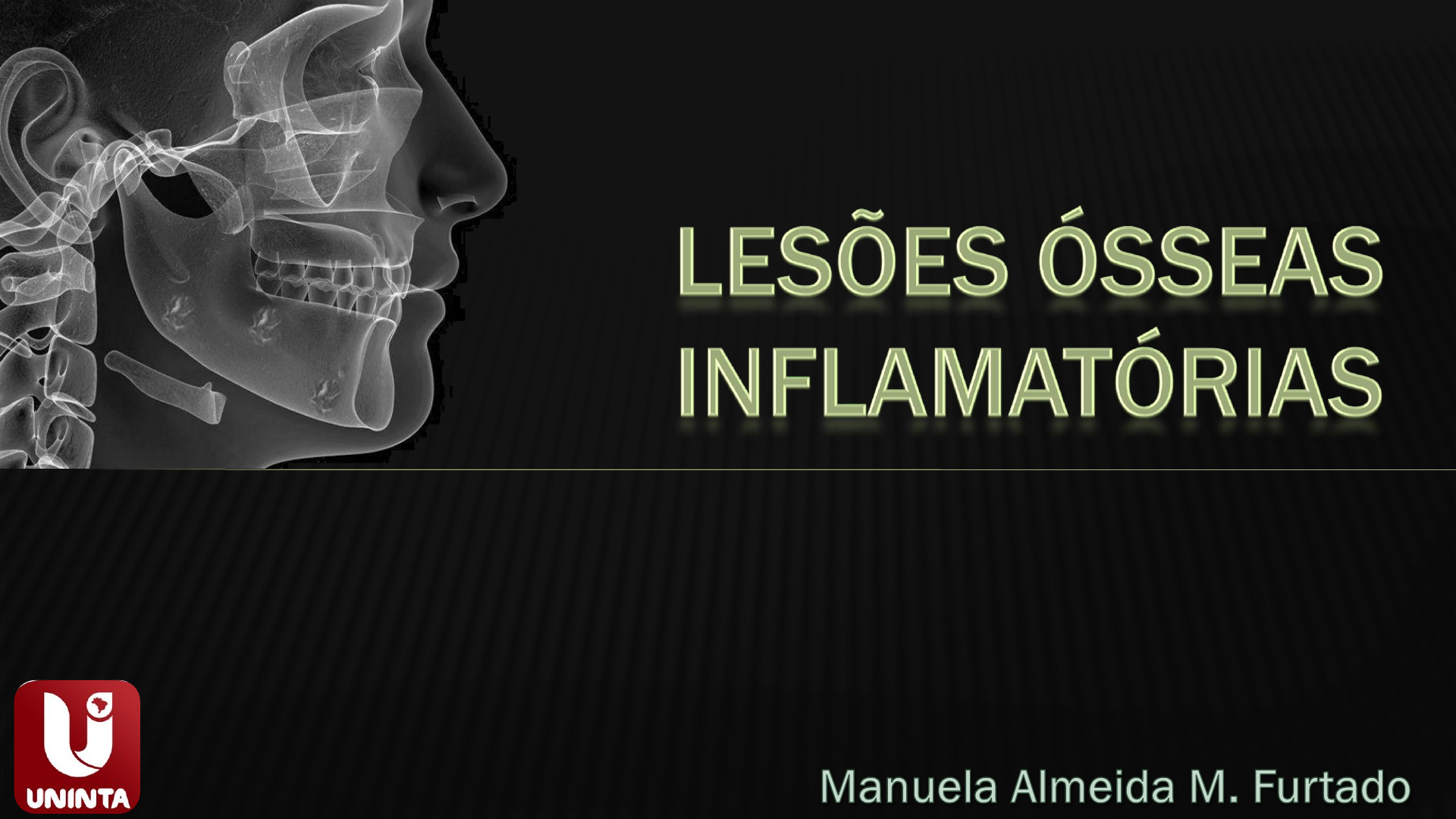 <p>OSTEOMIELITE</p><p> “Processo inflamatório/infeccioso nos espaços</p><p>medulares, que pode se estender para a cortical do osso</p><p>e periósteo e pode se disseminar para além do sítio</p><p>inicial de envolvimento”</p><p>Mandíbula</p><p>OSTEOMIELITE</p><p>OSTEOMIELITE</p><p>Entrada</p><p>Microorganismos</p><p>Infecção</p><p>Periapical</p><p>Pericoronarite</p><p>Lesão</p><p>Periodontal</p><p>Exodontia</p><p>Infecção cirúrgica</p><p>Origem: Infecção</p><p>OSTEOMIELITE</p><p>Classificação</p><p>Aguda Crônica Esclerosante</p><p>Osteomielite com</p><p>Periostite</p><p>Proliferativa</p><p>OSTEOMIELITE</p><p>Classificação</p><p>Aguda Crônica Esclerosante</p><p>Osteomielite com</p><p>Periostite</p><p>Proliferativa</p><p>ETIOLOGIA</p><p>Extensão direta de abscesso</p><p>periapical ou periodontal</p><p>Traumas</p><p> Dor</p><p> Edema</p><p> Linfoadenopatia</p><p> Leucocitose</p><p> Febre</p><p> Drenagem purulenta</p><p> Mobilidade dentária</p><p>Características Clínicas</p><p>OSTEOMIELITE AGUDA</p><p>Bactérias</p><p>penetram nos</p><p>canalículos</p><p>ósseos</p><p>Reação</p><p>Inflamatória</p><p>Neutrófilos</p><p>liberam</p><p>citocinas</p><p>Reabsorção</p><p>óssea</p><p> Inicialmente não apresenta alterações</p><p> Sutil redução da densidade óssea</p><p> Na periferia se confunde com osso</p><p>normal</p><p>Características Radiográficas</p><p> Radiolucidez difusa, irregular e mal</p><p>delimitada</p><p> Na periferia se confunde com osso normal</p><p>Características Radiográficas</p><p>OSTEOMIELITE AGUDA</p><p>Fatores Predisponentes</p><p>Imunossupressão</p><p>Redução de vascularização</p><p>(fumo, doenças fibro-ósseas)</p><p>Diabetes, anemias, má nutrição, osteoporose,</p><p>doenças malignas</p><p>ETIOPATOGÊNESE</p><p> Forma aguda não devidamente tratada</p><p>Lesão</p><p>Inflamatória</p><p>Reabsorção</p><p>óssea periférica</p><p>Hipóxia tecido</p><p>ósseo</p><p>Necrose óssea</p><p>central</p><p>SEQUESTRO ÓSSEO</p><p> ATUA COMO UM RESERVATÓRIO PARA AS BACTÉRIAS</p><p> DIFICULDADE DE AÇÃO TERAPÊUTICO</p><p> Semelhantes às vistas na aguda, porém mais atenuadas;</p><p>Características Clínicas</p><p> Densidade Mista</p><p> Limites difusos</p><p> Áreas radiopacas circundadas por zona</p><p>radiolúcida</p><p> SEQUESTRO ÓSSEO: osso necrótico</p><p>Características Radiográficas</p><p> Osteomielite de Garrè</p><p> Crianças e adolescentes</p><p> Maior capacidade de reparação</p><p> Periósteo frouxamente aderido</p><p> Exsudato inflamatório se acumula entre cortical e periósteo</p><p> Reação periosteal exuberante</p><p>Momentos de</p><p>reagudização</p><p>Novo exsudato</p><p>inflamatório</p><p>Nova elevação</p><p>periosteal</p><p>Formação de</p><p>mais camadas</p><p>ósseas</p><p>Envolvimento da borda da mandíbula</p><p>Assimetria facial</p><p> Hiperplasia perióstea</p><p> Expansão da cortical</p><p> Laminações radiopacas concêntricas</p><p>ao longo do osso afetado</p><p> Padrão casca de cebola</p><p> Radiografia oclusal</p><p>Características Radiográficas</p><p> Hiperplasia perióstea</p><p> Expansão da cortical</p><p> Laminações radiopacas concêntricas</p><p>ao longo do osso afetado</p><p> Padrão casca de cebola</p><p> Radiografia oclusal</p><p>Características Radiográficas</p><p>Características Radiográficas</p><p>OSTEORADIONECROSE</p><p>Danos</p><p>Vasculares</p><p>Hipóxia</p><p>Comprometimento</p><p>da cicatrização</p><p>óssea</p><p>Predisposição à</p><p>Necrose após</p><p>Infecções/Traumas</p><p> Complicação resultante de radioterapia de cabeça e pescoço</p><p> Dor pulsátil</p><p> Destruição da Cortical</p><p> Exposição do osso</p><p> Fratura Patológica</p><p>LESÕES ÓSSEAS PSEUDOTUMORAIS</p><p>Lesão Central de</p><p>Células Gigantes</p><p>Querubismo</p><p>Lesões Fibro-</p><p>Ósseas Benígnas</p><p>LESÃO CENTRAL DE CÉLULAS</p><p>GIGANTES</p><p>LESÃO CENTRAL DE CÉLULAS GIGANTES (LCCG)</p><p> Etiologia indefinida</p><p> Substituição do osso normal por um tecido fibroso celular, com presença de células</p><p>gigantes multinucleadas e osso reacional.</p><p>Outras denominações:</p><p>Granuloma Central de</p><p>Células Gigantes</p><p>Granuloma reparador de</p><p>Células Gigantes</p><p>LESÃO CENTRAL DE CÉLULAS GIGANTES</p><p>ASPECTOS CLÍNICOS</p><p> Aumento de volume assintomático (Assimetria)</p><p> Alguns casos: dor, parestesia, sangramento</p><p> Crescimento Lento</p><p> Crianças e Adultos Jovens</p><p> Sexo Feminino</p><p> Mandíbula</p><p>LESÃO CENTRAL DE CÉLULAS GIGANTES</p><p> Radiolúcida, bem delimitada, sem halo radiopaco</p><p> Lesões pequenas são uniloculares (anterior)</p><p> Lesões maiores são multiloculares (posterior)</p><p> “bolhas de sabão”</p><p> Expansão de corticais</p><p> Deslocamento dentário</p><p>Características Radiográficas</p><p>LESÃO CENTRAL DE CÉLULAS GIGANTES</p><p>Características Radiográficas</p><p> Radiolúcida, bem delimitada, sem halo radiopaco</p><p> Lesões pequenas são uniloculares (anterior)</p><p> Lesões maiores são multiloculares (posterior)</p><p> “bolhas de sabão”</p><p> Expansão de corticais</p><p> Deslocamento dentário</p><p>LESÃO CENTRAL DE CÉLULAS GIGANTES</p><p>Características Radiográficas</p><p> Lâmina Dura Ausente</p><p>LESÃO CENTRAL DE CÉLULAS GIGANTES</p><p>Características Radiográficas</p><p>QUERUBISMO</p><p>QUERUBISMO</p><p> Desordem genética autossômica dominante</p><p> Evolução durante infância</p><p> Homens</p><p> Autolimitante</p><p> Expansão bilateral assintomática</p><p> Ângulo da Mandíbula</p><p> Maxila:</p><p> Deslocando globo ocular para cima</p><p> Atresia Maxilar, devido expansão processo alveolar</p><p>QUERUBISMO</p><p> Desordem genética autossômica dominante</p><p> Evolução durante infância</p><p> Autolimitante</p><p> Expansão bilateral assintomática</p><p> Ângulo da Mandíbula</p><p> Maxila:</p><p> Deslocando globo ocula