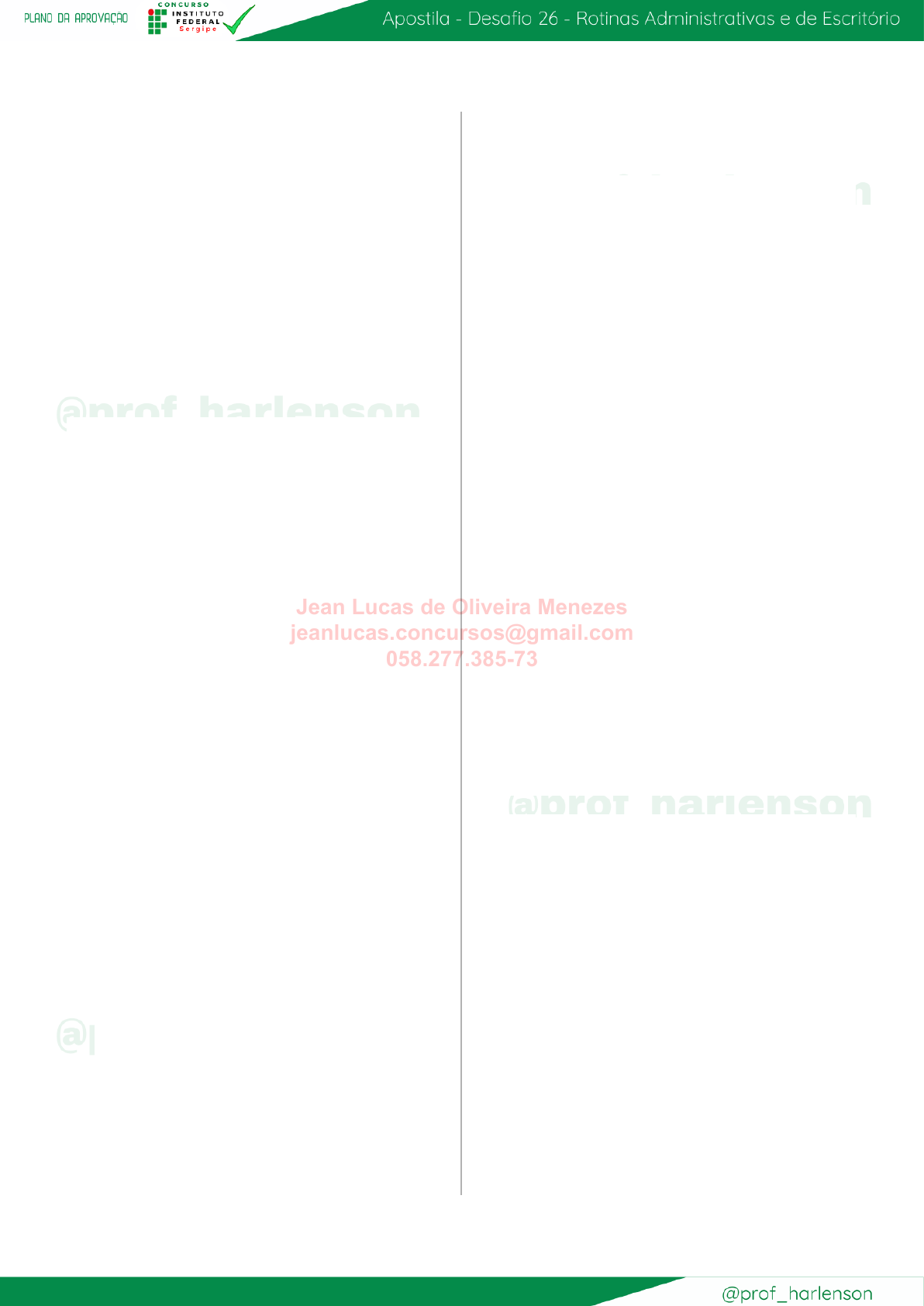 <p>Rotinas Administrativas e de Escritório............ 1</p><p>O papel fundamental da rotina administrativa:. 1</p><p>Habilidades essenciais para auxiliar a rotina</p><p>administrativa:......................................................1</p><p>As Principais Rotinas administrativas............... 2</p><p>Controle de materiais de escritório:..................2</p><p>Organização de arquivos:.................................2</p><p>Atendimento ao público:................................... 2</p><p>Agendamento de reuniões e eventos:..............3</p><p>Ferramentas para Auxiliar a Rotina</p><p>Administrativa:..................................................... 3</p><p>Importância da atualização e capacitação:........3</p><p>Rotinas Administrativas e de Escritório</p><p>As rotinas administrativas e de escritório são o</p><p>alicerce que sustenta o bom funcionamento de</p><p>qualquer organização. São compostas por</p><p>diversos processos interligados</p><p>sistematicamente que garantem a organização, o</p><p>fluxo de informações e a execução das tarefas</p><p>diárias.</p><p>O papel fundamental da rotina administrativa:</p><p>Responsável por diversas tarefas como:</p><p>● Controle de materiais de escritório:</p><p>entrada, saída e distribuição.</p><p>● Organização de arquivos físicos e</p><p>digitais: arquivamento, busca e</p><p>recuperação de documentos.</p><p>● Atendimento ao público: presencial,</p><p>telefônico e por e-mail.</p><p>● Agendamento de reuniões e eventos:</p><p>organização, logística e comunicação.</p><p>● Gestão de documentos: criação, edição,</p><p>formatação e envio.</p><p>● Auxílio na preparação de apresentações:</p><p>pesquisa, organização e formatação de</p><p>slides.</p><p>● Manutenção da agenda do setor:</p><p>organização e agendamento de</p><p>compromissos.</p><p>● Digitação de documentos: relatórios,</p><p>ofícios, memorandos, etc.</p><p>● Outras tarefas administrativas: suporte à</p><p>equipe e cumprimento de solicitações.</p><p>Habilidades essenciais para auxiliar a rotina</p><p>administrativa:</p><p>● Organização: capacidade de manter o</p><p>ambiente de trabalho organizado e priorizar</p><p>tarefas.</p><p>● Comunicação: clareza, objetividade e</p><p>cordialidade na comunicação com</p><p>diferentes públicos.</p><p>● Proatividade: iniciativa para resolver</p><p>problemas e identificar oportunidades de</p><p>melhoria.</p><p>● Atenção aos detalhes: cuidado e precisão</p><p>na execução das tarefas.</p><p>● Responsabilidade: compromisso com</p><p>prazos e metas.</p><p>● Conhecimento técnico: domínio de</p><p>ferramentas de escritório (Word, Excel,</p><p>PowerPoint) e softwares específicos da</p><p>área.</p><p>● Flexibilidade: adaptabilidade a diferentes</p><p>situações e demandas.</p><p>● Trabalho em equipe: capacidade de</p><p>colaborar com colegas e departamentos.</p><p>As Principais Rotinas administrativas</p><p>Controle de materiais de escritório:</p><p>● Entrada:</p><p>○ Recebimento de pedidos e notas</p><p>fiscais.</p><p>○ Conferência de quantidades e</p><p>qualidade dos materiais.</p><p>○ Lançamento no sistema de controle</p><p>de estoque.</p><p>○ Armazenamento adequado dos</p><p>materiais.</p><p>● Saída:</p><p>○ Controle de requisições de</p><p>materiais.</p><p>○ Autorização de saída dos materiais.</p><p>○ Atualização do sistema de controle</p><p>de estoque.</p><p>Jean Lucas de Oliveira Menezes</p><p>jeanlucas.concursos@gmail.com</p><p>058.277.385-73</p><p>○ Repasse dos materiais aos</p><p>solicitantes.</p><p>● Distribuição:</p><p>○ Definição de critérios para</p><p>distribuição dos materiais.</p><p>○ Atendimento às requisições dos</p><p>departamentos.</p><p>○ Monitoramento do nível de estoque</p><p>e reposição quando necessário.</p><p>Organização de arquivos:</p><p>● Físicos:</p><p>○ Criação de um sistema de</p><p>arquivamento eficiente.</p><p>○ Arquivamento de documentos em</p><p>pastas e caixas organizadas.</p><p>○ Etiquetagem adequada dos</p><p>documentos.</p><p>○ Digitalização de documentos</p><p>importantes (opcional).</p><p>● Digitais:</p><p>○ Criação de pastas e subpastas no</p><p>computador.</p><p>○ Nomeação clara e concisa dos</p><p>arquivos.</p><p>○ Armazenamento seguro dos</p><p>arquivos em nuvem (opcional).</p><p>○ Backup regular dos arquivos.</p><p>Atendimento ao público:</p><p>● Presencial:</p><p>○ Recepção cordial e atenciosa aos</p><p>visitantes.</p><p>○ Fornecimento de informações e</p><p>resoluções de dúvidas.</p><p>○ Agendamento de compromissos e</p><p>encaminhamento para os</p><p>departamentos responsáveis.</p><p>● Telefônico:</p><p>○ Atendimento educado e eficiente às</p><p>chamadas telefônicas.</p><p>○ Transferência de chamadas para os</p><p>departamentos corretos.</p><p>○ Registro de recados e informações</p><p>relevantes.</p><p>● E-mail:</p><p>○ Resposta rápida e profissional aos</p><p>e-mails recebidos.</p><p>○ Redação clara e objetiva das</p><p>mensagens.</p><p>○ Anexação de arquivos relevantes.</p><p>Agendamento de reuniões e eventos:</p><p>● Definição de data, hora e local:</p><p>○ Verificação da disponibilidade dos</p><p>participantes.</p><p>○ Reserva de sala e equipamentos</p><p>necessários.</p><p>● Convite aos participantes:</p><p>○ Envio de convites por e-mail ou</p><p>outro meio de comunicação.</p><p>○ Inclusão de todas as informações</p><p>relevantes (data, hora, local, pauta</p><p>da reunião).</p><p>● Confirmação de presença:</p><p>○ Acompanhamento das confirmações</p><p>dos participantes.</p><p>○ Realização de ajustes caso</p><p>necessário.</p><p>Ferramentas para Auxiliar a Rotina</p><p>Administrativa:</p><p>O uso de ferramentas tecnológicas auxilia o</p><p>Auxiliar Administrativo na execução eficiente das</p><p>rotinas diárias. Algumas