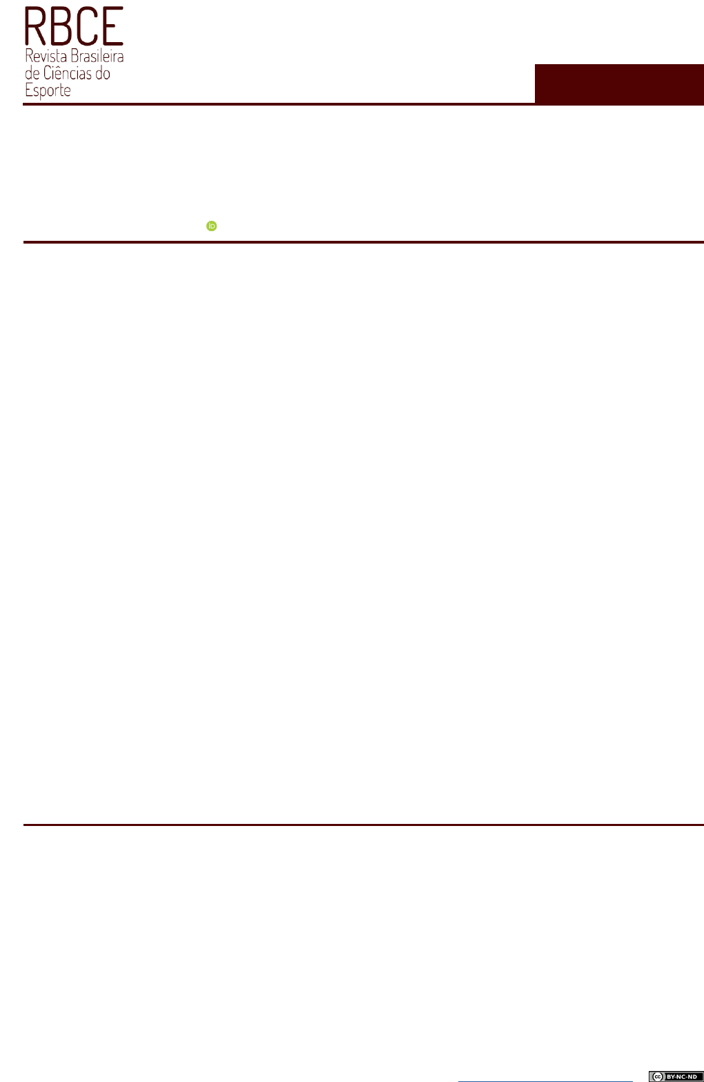 <p>Este é um artigo Open Access sob uma licença CC BY-NC-ND (http://creativecommons.org/licenses/by-nc-nd/4.0/).</p><p>Hydration status, sweating rate, heart rate and perceived exertion</p><p>after running sessions in different relative humidity conditions: a</p><p>randomized controlled trial</p><p>Matheus A. do Nascimento a,b,*, Flávio Ricardo Guilhermea, Sandra A. Ferreirac,Renata S.B. Januáriob,d, Alex S.</p><p>Ribeirob,d, Jerry L. Mayhewe,Fabrício Voltarellif, Letícia T. Cyrinob, Paulo Sugihara Juniorb,Danilo Rodrigues Pereira</p><p>da Silvag, Marcos R. Queirogah</p><p>The purpose of this study was to analyze the impact of running in normal relative humidity</p><p>(RH = 53%) and very high RH (94%) on hydration status (HS), sweating rate (SR), heart rate (HR),</p><p>and rating of perceived exertion (RPE). Fourteen men (25.2 ± 6.6 yrs) performed two sessions of</p><p>treadmill running. Body mass (normal RH: -1.35%, very high RH: -1.65%) HS (normal RH: -14.8%;</p><p>very high RH: -20.8%) were reduced while RPE (normal RH: +26%; very high RH: +28%) and HR were</p><p>increased (very high RH: +5.8%: 20–40 min, +3.1%: 40–60 min, +3%: 20–40 min; +2.3%: 40–60 min</p><p>for normal RH). As expected, SR was significantly greater during very high RH (-20/8%) compared</p><p>to normal RH (-14.8%). Running in very high RH at moderate temperature has a greater negative</p><p>impact on SR, HS, body mass, HR, RPE in men than running in normal RH at the same temperature,</p><p>which places the runner in greater danger of heat illnesses such as heat exhaustion or heat stroke.</p><p>Keywords:</p><p>Dehydration;</p><p>Aerobic exercise;</p><p>Physiological exertion;</p><p>Rating of perceived</p><p>exertion.</p><p>ABSTRACT</p><p>Analisar o impacto da corrida em diferentes humidade relativa (HR) (normal (53%), muito alto (94%)),</p><p>estado de hidratação (EH), taxa de transpiração (TT), freqüência cardíaca (FC), esforço percebido (RPE).</p><p>Quatorze homens (25,2 anos) realizaram duas sessões de corrida em esteira. Massa corporal (HR</p><p>normal: -1,35%, HR muito alta: -1,65%) e EH reduziram (HR normal: -14,8%, HR muito alta: -20,8%),</p><p>RPE (HR normal: + 26%, HR muito alta: + 28%), aumento da FC (HR muito alta: + 5.8%: 20–40 min, +</p><p>3.1%: 40–60 min, HR normal: + 3%: 20–40 min; + 2.3%: 40–60 min). TT foi significantemente diferente</p><p>entre HR (HR normal: -14.8%, HR muito alta: -20.8%). Há um impacto negativo na corrida em EH, massa</p><p>corporal, FC e RPE em homens com HR normal e muito alta, e TT é mais afetada com HR muito alta.</p><p>Palavras Chave:</p><p>Desidratação;</p><p>Exercícios aeróbicos;</p><p>Esforço fisiológico;</p><p>Esforço percebido.</p><p>RESUMO</p><p>El objetivo de este estudio fue analizar las repercusiones de correr con diferentes niveles de humedad</p><p>relativa (HR) (normal [53%], muy alta [94%]) sobre el estado de hidratación (EH), la tasa de sudoración</p><p>(TS), la frecuencia cardíaca (FC) y el esfuerzo percibido (EP). Catorce hombres (25,2 ± 6,6 años)</p><p>realizaron dos sesiones en cinta de correr. La masa corporal (HR normal: -1,35%; HR muy</p><p>alta: -1,65%) y el EH (HR normal: -14,8%; HR muy alta: -20,8%) se redujeron, mientras que el EP</p><p>(HR normal: +26%; HR muy alta: +28%) y la FC (HR muy alta: +5,8%: 20–40 min; +3,1%: 40-60 min;</p><p>HR normal: + 3%: 20-40 min; + 2,3%: 40-60) aumentaron. La TS fue considerablemente diferente</p><p>entre las HR (HR normal: -14,8%; muy alta HR: -20,8%). Hay repercusiones negativas por correr</p><p>con una HR muy alta y una temperatura moderada en TS, EH, masa corporal, FC y EP en corredores</p><p>que corren a una HR normal a la misma temperatura, lo que sitúa a estos en gran peligro de sufrir</p><p>un enfermedad provocada por el calor, como agotamiento por calor o golpe de calor.</p><p>Palabras Clave:</p><p>Deshidratación;</p><p>Ejercicio aeróbico;</p><p>Esfuerzo fisiológico;</p><p>Esfuerzo percibido.</p><p>RESUMEN</p><p>a Universidade Estadual do Paraná (UNESPAR), Paranavaí Campus, Paranavaí, PR, Brazil.</p><p>b Universidade Estadual de Londrina, Centro de Educação Física e Desporto, Grupo de estudo e de pesquisa em Metabolismo,Nutrição e</p><p>Exercício, Londrina, PR, Brazil.</p><p>c Universidade Estadual de Londrina, Programa de Educação Física, Londrina, PR, Brazil.</p><p>d Universidade Norte do Paraná, Centro de Pesquisa em Ciências da Saúde, Londrina, PR, Brazil.</p><p>e Exercise Science Program, Truman State University, Kirksville, MO, USA.</p><p>f Universidade Federal do Mato Grosso (UFMT), Cuiabá, MT, Brazil.</p><p>g Universidade Federal de Sergipe (UFS), São Cristóvão, SE, Brazil.</p><p>h Universidade Estadual do Centro-Oeste, UNICENTRO, CEDETEG Campus, Guarapuava, PR, Brazil.</p><p>*Autor correspondente:</p><p>Matheus A. do Nascimento</p><p>E-mail: matheusamarante@hotmail.com</p><p>Received 27 February 2018; accepted 8 October 2018.</p><p>DOI: 10.1016/j.rbce.2018.10.003</p><p>ORIGINAL ARTICLE</p><p>https://orcid.org/0000-0002-9284-976X</p><p>http://matheusamarante@hotmail.com</p><p>https://doi.org/10.1016/j.rbce.2018.10.003</p><p>Effects of different relative humidity on physiological parameters during running</p><p>2Rev Bras Ciênc Esporte. 2020; 42: e2009</p><p>INTRODUCTION</p><p>Running training, as well as other physical exercise</p><p>modalities, causes numerous acute physiological</p><p>alterations, such as the impaired hydration status (HS).</p><p>Inadequate hydration conditions before and during an</p><p>exercise session can have serious negative effects on</p><p>performance and physiological function (Shirreffs et al.,</p><p>2005; Maughan et al., 2007). During exercise, negative</p><p>alterations in HS are mainly caused by increased</p><p>sweating rate (SR) which can be influenced by individual</p><p>factors (e.g., age, sex, hydration and feeding condition),</p><p>type of physical exercise performed, type of clothing</p><p>used d