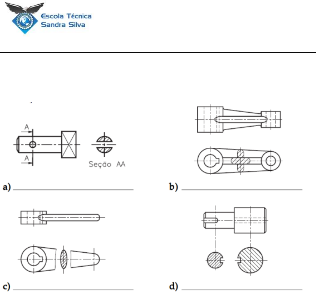 <p>1</p><p>TEMA DE TRABALHO DA AV1</p><p>Curso de Mecânica</p><p>Disciplina Desenho Técnico</p><p>1) Analise as vistas ortográficas e escreva, nas linhas indicadas, a localização das</p><p>seções.</p><p>2</p><p>2) Observe a perspectiva, em corte, e represente na vista ortográfica, a seção</p><p>correspondente.</p><p>3) Analise as perspectivas abaixo e assinale com um X as peças que podem ser</p><p>representadas com encurtamento.</p><p>4) Analise a perspectiva em corte e complete a vista frontal desenhando a linha de</p><p>ruptura e representando a seção interrompendo a vista.</p><p>3</p><p>5) Analise as vista ortográficas e escreva (C) para representação de corte e (S) para</p><p>representação de seção.</p><p>4</p><p>6) Estude as vistas ortográficas e faça o que é pedido;</p><p>a ) Faça um circulo em volta da seção representada dentro da vista sem interrompê-la;</p><p>b ) Faça um X na seção representada interrompendo a vista;</p><p>c ) Escreva, nos locais apropriados, os nomes das seções representadas fora da vista; e</p><p>d ) desenhe uma seta apontando para o encurtamento representado neste desenho.</p><p>7) Analise o modelo em perspectiva e represente a seção na vista frontal:</p><p>a) Interrompendo a vista.</p><p>5</p><p>b) sem interromper a vista.</p><p>8) Assinale com X a representação correta da seção nas projeções abaixo.</p>