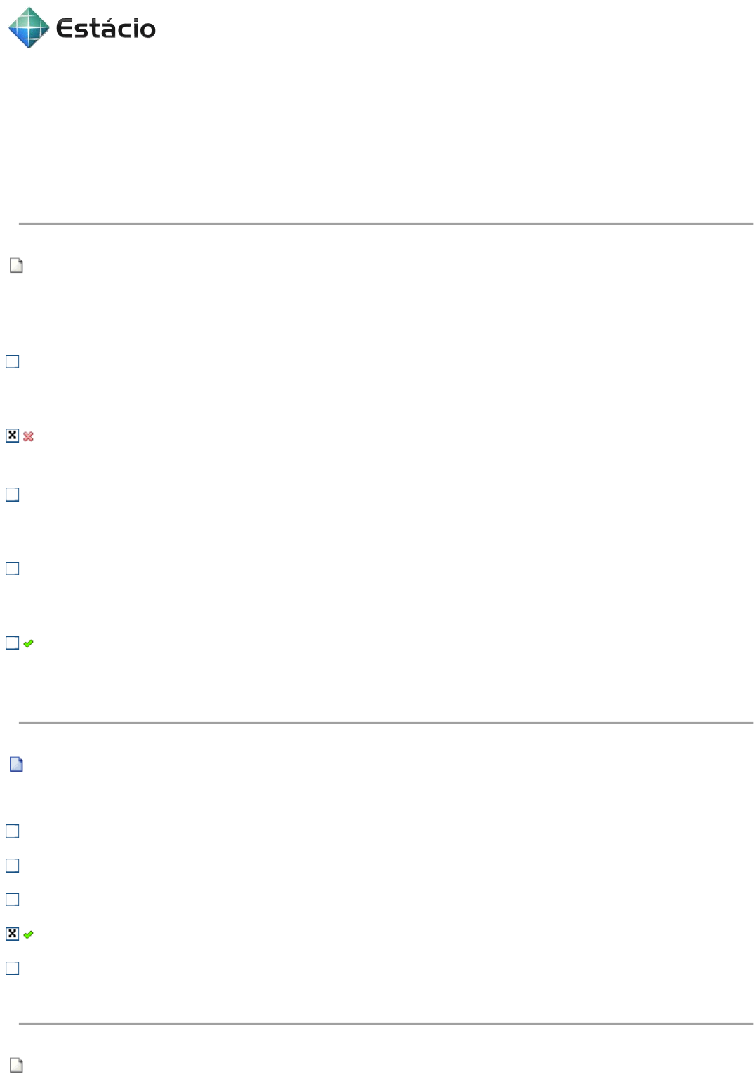 <p>Parte superior do formulário</p><p>Avaliação: CEL0247_AV_201502413451 » LINGUAGENS DA ARTE E REGIONALIDADES</p><p>Tipo de Avaliação: AV</p><p>Aluno: 201502413451 - MONICA DE CARVALHO SANTIAGO</p><p>Professor:</p><p>JAMILLY APARECIDA MACHADO</p><p>GABRIELA KUHNEN</p><p>Turma: 9002/AB</p><p>Nota da Prova: 4,0 Nota de Partic.: Av. Parcial Data: 07/06/2019 10:58:35</p><p>1a Questão (Ref.: 201505413133)</p><p>Pontos: 0,0 / 1,0</p><p>Sobre a importância do estudo da arte é INCORRETO dizer que:</p><p>É através de aulas de linguagens da arte e regionalidades que se torna mais produtivo o conhecimento sobre a relação do homem com a história, a cultura e a sociedade da qual faz parte.</p><p>Possibilita ao aluno se relacionar com o mundo de forma harmoniosa e criativa.</p><p>O contato com a expressão artística desenvolve no indivíduo a percepção estética do que está à sua volta.</p><p>O aluno aprenderá a ativar sua capacidade sensorial e, através dela, desenvolver a imaginação, a criatividade e a razão, equilibrando as tensões a que está submetido cotidianamente.</p><p>Garante um bom emprego no futuro</p><p>2a Questão (Ref.: 201502545922)</p><p>Pontos: 1,0 / 1,0</p><p>A censura no Brasil foi marcada por:</p><p>apenas censura aos meios de comunicação</p><p>apenas perseguições a artistas, sem que se chegassem a efetuar prisões</p><p>apenas exílios de artistas</p><p>perseguições, prisões e exílios</p><p>apenas prisões de artistas e intelectuais</p><p>3a Questão (Ref.: 201505413749)</p><p>Pontos: 0,0 / 1,0</p><p>Todo artista sofre a influência de seu tempo. Dessa forma, o objeto de arte que produz expressa as ideologias de sua época. Na Grécia Antiga, o período clássico está associado a uma ideologia que definiu a História da Humanidade. Trata-se ...</p><p>da Plutocracia</p><p>da Democracia</p><p>do Iluminismo</p><p>da Monarquia</p><p>do Renascimento</p><p>4a Questão (Ref.: 201502546135)</p><p>Pontos: 1,0 / 1,0</p><p>Com a ascensão da burguesia no século XVIII, o ser humano passa a ser mais valorizado. Isso se reflete na produção artística do neoclassicismo, e a obra de arte passa a representar:</p><p>a religiosidade</p><p>o materialismo</p><p>o corporativismo</p><p>a coletividade</p><p>o individualismo</p><p>5a Questão (Ref.: 201502701620)</p><p>Pontos: 0,0 / 1,0</p><p>Os indígenas brasileiros eram vistos pelos colonizadores europeus como seres bárbaros, incapacitados intelectualmente. Os jesuítas começaram a mudar essa visão ao se aproximarem dos ameríndios utilizando-se de dois recursos de caráter pedagógico. Identifique-os.</p><p>O cristianismo e as ideologias monárquicas.</p><p>O ensino de latim e a evangelização.</p><p>As práticas de navegação e o catecismo.</p><p>O catecismo e o teatro.</p><p>As técnicas agrícolas e o uso de vestimentas.</p><p>6a Questão (Ref.: 201502719226)</p><p>Pontos: 0,0 / 1,0</p><p>O escritor francês Charles Baudelaire é considerado o "pai da modernidade" por ter sido pioneiro em registrar os sentimentos do homem moderno. Leia o poema "A Uma Passante" de Baudelaire, a seguir transcrito, e identifique a alternativa que corresponde à proposta ideológica do autor nos fragmentos destacados.</p><p>A uma passante</p><p>A rua em derredor era um ruído incomum,</p><p>longa, magra, de luto e na dor majestosa,</p><p>Uma mulher passou e com a mão faustosa</p><p>Erguendo, balançando o festão e o debrum;</p><p>Nobre e ágil, tendo a perna assim de estátua exata.</p><p>Eu bebia perdido em minha crispação</p><p>No seu olhar, céu que germina o furacão,</p><p>A doçura que embala o frenesi que mata.</p><p>Um relâmpago e após a noite! Aérea beldade,</p><p>E cujo olhar me fez renascer de repente,</p><p>Só te verei um dia e já na eternidade?</p><p>A efemeridade e a transitoriedade da vida moderna.</p><p>A melancolia e a depressão do homem moderno.</p><p>A industrialização iniciada no século XIX.</p><p>Os ideais franceses de liberdade, igualdade e fraternidade.</p><p>O triunfo do capitalismo.</p><p>7a Questão (Ref.: 201505417570)</p><p>Pontos: 0,0 / 1,0</p><p>Na Idade Média, havia dois modelos de representação artística da figura feminina. Assinale a alternativa relacionada a esses modelos:</p><p>Deusas e Ninfas</p><p>Dama da Corte e a camponesa</p><p>Nobres e santas</p><p>Escravas e bruxas</p><p>Guerreiras e mães</p><p>8a Questão (Ref.: 201502480147)</p><p>Pontos: 1,0 / 1,0</p><p>Leia o texto:</p><p>Décio pignatari [20.08.1927, São Paulo SP]- Poeta, ensaísta, tradutor, contista, romancista, dramaturgo, publicitário e professor, nasce em Jundiaí, São Paulo, filho de imigrantes italianos, mas cedo transfere-se para Osasco, onde mora até os 25 anos. Publica seus primeiros poemas na Revista Brasileira de Poesia, em 1949. No ano seguinte, estréia com o livro de poemas, Carrossel, e, em 1952, funda o grupo e edita a revista-livro Noigandres, com os amigos, os poetas irmãos Haroldo de Campos (1929 - 2003) e Augusto de Campos (1931). Em 1953 forma-se em direito pela Universidade de São Paulo - USP - e em seguida viaja para a Europa, onde passa dois anos, mantendo contatos com diversos intelectuais. /.../ Além de escritor, faz pesquisas na área de semiótica: em 1969, ajuda a fundar a Association Internationale de Sémiotique - AIS -, na França, e, em 1975, participa do lançamento da Associação Brasileira de Semiótica - ABS. Em 1999, muda-se para Curitiba.</p><p>Esse texto apresenta, junto às informações sobre a carreira do poeta, dados que nos permitem reconstituir sua vida. Esse último tipo de informação permite que se faça uma crítica ao poeta e a sua obra, denominada:</p><p>lírica</p><p>vanguardista</p><p>poética</p><p>literária</p><p>biográfica</p><p>9a Questão (Ref.: 201505428457)</p><p>Pontos: 1,0 / 1,0</p><p>O cineasta Nelson Pereira dos Santos fez uma transposição admirável do romance Vidas Secas, de Graciliano Ramos, para a tela do cinema. No filme, no que 