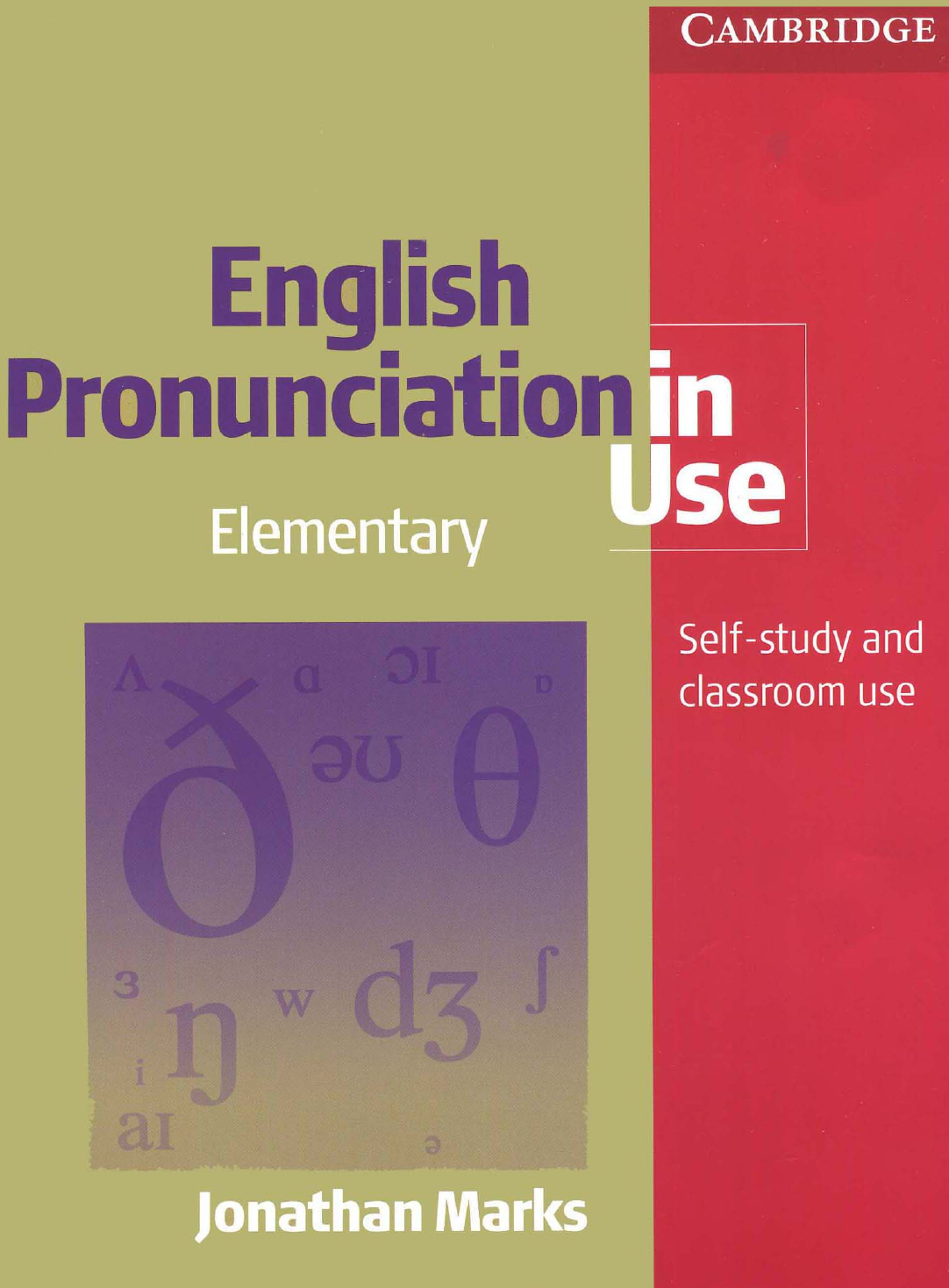 <p>CAMBRIDGE</p><p>n</p><p>Use</p><p>Self-study and</p><p>classroom use</p><p>Elementary</p><p>Jonathan Marks</p><p>Pronunciation IR</p><p>Use</p><p>Self-study and</p><p>classroom use</p><p>Elementary</p><p>BE CAMBRIDGE</p><p>EE UNIVERSITY $ Jonathan Marks</p><p>CAMBRIDGE UNIVERSITY PRESS</p><p>Cambridge, New York, Melbourne, Madrid, Cape Town, Singapore, Sio Paulo</p><p>GAMBRIDGE UNIVERSITY PRESS</p><p>The Edinburgh Building, Cambridge CB2 SRU, UK</p><p>www.cambridge.org</p><p>Information on this title: www.cambridge.org/9780521672627</p><p>@ Cambridge University Press 2007</p><p>This publication is in copyright. Subject to statutory exception</p><p>and to the provisions of relevant collective licensing agreements,</p><p>no reproduction of any part may take place without</p><p>the written permission of Cambridge University Press.</p><p>First published 2007</p><p>Printed in the United Kingdom at the University Press, Cambridge</p><p>A catalogue record for tbis publication is available from the Britisk Library</p><p>ISBN 978-0-$21-67262-7 paperback</p><p>ISBN 978-0-$21-67264-1 audio CDs (5)</p><p>ISBN 978-0-$21-67266-$ paperback and CDs pack</p><p>ISBN 978-0-521-69370-7 CD-ROM</p><p>ISBN 978-0-$21-69373-8 CD-ROM, paperback and CDs pack</p><p>Contents</p><p>To the student</p><p>To the teacher</p><p>Map of contents</p><p>Section A Sounds and spelling</p><p>O</p><p>E</p><p>O</p><p>A</p><p>N</p><p>O</p><p>U</p><p>P</p><p>B</p><p>L</p><p>N</p><p>How many letters, bow many sounds? Spelling and pronunciation</p><p>Pizza for dinner Aid and hy</p><p>A spoonful of sugar lu and lui</p><p>Father and mother ad and /M</p><p>A dog in the corner /ol and ou</p><p>Bread and jam (el and fel</p><p>My birtkday's on Thursday law</p><p>Here and there hol and leaf</p><p>Have a great time! (lew, law and /ou</p><p>Old town lou! and Jaul</p><p>Pack your bags (pl and /bl</p><p>Twenty days ld and /d/</p><p>Cats and dogs (/k/ and lg!</p><p>November the first /H! and fvl</p><p>Both together (Of and /8/</p><p>Its the wrong size, isme it? Isl and [dl</p><p>Fresk fisb, usually (J/ and 3</p><p>Chips and juice ff! and /da/</p><p>My bungry uncle ml, if and tol</p><p>How many bours? Mn</p><p>That's life! M</p><p>What terrible weather! fr!</p><p>What's the news? (wl and /j!</p><p>Sunglasses or umbrella? Consonant groups in the middle of words</p><p>Train in the rain Consonant groups at the beginning of words</p><p>Pink and orange Consonant groups at the end of words</p><p>Last week Consonant groups across words</p><p>Section B Syllables and words</p><p>28</p><p>29</p><p>30</p><p>31</p><p>32</p><p>One house, two houses Svllables</p><p>Wait a minute — where's the waiter? Strong and weak vowels</p><p>Single or return? Stress in two-syllable words</p><p>Begin at the beginming Stress in longer words</p><p>Where's my checklistê Stress in compound words</p><p>Section C Phrases, sentences and grammar</p><p>33</p><p>34</p><p>35</p><p>36</p><p>37</p><p>38</p><p>39</p><p>40</p><p>Phrases and pauses Reading aloud</p><p>Speak it, write it, read it Linking words together 1</p><p>Me and you, you and me Linking words together 2</p><p>Take me to te skow, Jo Rhythm</p><p>Hey, wait for me! Strong and weak forms 1: Pronouns</p><p>And what's bis namef Strong and weak forms 2: Possessives,</p><p>conjunctions, prepositions</p><p>There's a spider Strong and weak forms 3: Articles, comparatives, “there”</p><p>Who was that? Strong and weak forms 4: Auxiliary verbs</p><p>English Pronunciation in Use (Elementary)</p><p>O</p><p>N</p><p>10</p><p>12</p><p>14</p><p>i6</p><p>18</p><p>20</p><p>22</p><p>24</p><p>26</p><p>28</p><p>30</p><p>32</p><p>34</p><p>36</p><p>38</p><p>40</p><p>42</p><p>46</p><p>48</p><p>50</p><p>$2</p><p>s4</p><p>56</p><p>58</p><p>60</p><p>62</p><p>64</p><p>66</p><p>68</p><p>70</p><p>72</p><p>74</p><p>76</p><p>78</p><p>80</p><p>82</p><p>84</p><p>86</p><p>88</p><p>1 They're here! Contractions</p><p>42 [rs George's birtkday Pronouncing -s endings</p><p>43 (I looked everywbere Pronouncing past tenses</p><p>Section D Conversation</p><p>44 Not half past two, half past tbree Intonation for old and new information</p><p>45 And suddenly ... Intonation in storytelling</p><p>46 Really? That's amazing! Being a good listener</p><p>47 1 know when it is, but not where Important words in conversation 1</p><p>AB Finisbed? Dve just started! Tmportant words in conversation 2</p><p>49 No, thanks, Dm just looking Intonation in phrases and sentences 1</p><p>50 Fine, thanks Intonation in phrases and sentences 2.</p><p>Section E Reference</p><p>F1 Chart of phonemic symbols</p><p>F2 Guide for speakers of specific languages</p><p>F3 Sound pairs</p><p>F4 From spelling to sound</p><p>E5 The alphabet</p><p>E6 Pronouncing numbers</p><p>E7 Pronouncing geographical names</p><p>F8 Homophones</p><p>Key</p><p>Acknowledgements</p><p>English Pronunciation in Use (Elementary)</p><p>9%</p><p>92</p><p>94</p><p>%</p><p>98</p><p>100</p><p>102.</p><p>104</p><p>106</p><p>108</p><p>110</p><p>11</p><p>113</p><p>127</p><p>130</p><p>132</p><p>135</p><p>137</p><p>138</p><p>166</p><p>To the student</p><p>The Eaglisk Pronunciation in Use Elementary course - book and CDs, or book and cassettes —</p><p>is to help you with your English pronunciation.</p><p>What will | need?</p><p>l Al! You will need a cassette or CD player to listen to the recordings. The symbol `”'.' shows the</p><p>track numbers of the recordings. It will be useful if you can record your own voice, so that you</p><p>can listen to your own pronunciation and hear your progress.</p><p>When you are studying individual sounds it is sometimes useful to have a mirror, so that you can</p><p>see the shape of your mouth and compare it with the diagrams in the book.</p><p>How is English Pronunciation in Use Elementary organised?</p><p>There are 50 two-page units in the book. Each unit is about a different pronunciation point.</p><p>Section A (Units 1 to 27) is about how to say and spell individual sounds, and groups of so