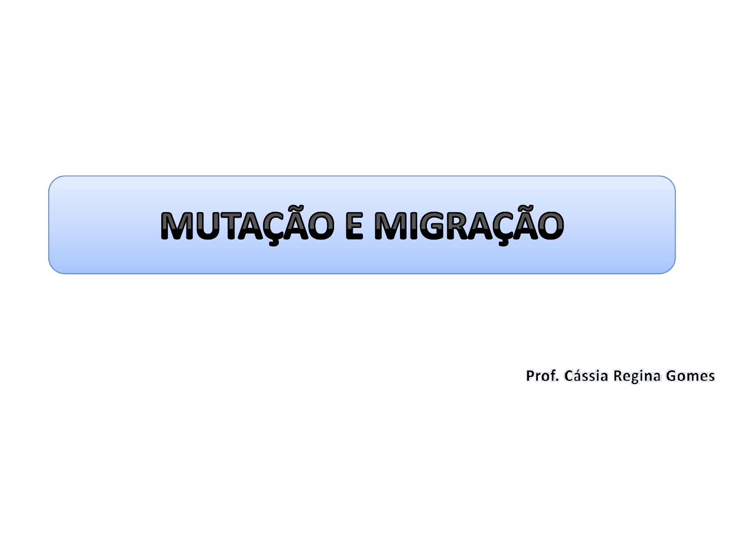 <p>Em uma população de TAMANHO GRANDE, sob</p><p>ACASALAMENTO AO ACASO, na AUSÊNCIA de</p><p>MUTAÇÃO, MIGRAÇÃO e SELEÇÃO, asMUTAÇÃO, MIGRAÇÃO e SELEÇÃO, as</p><p>FREQUÊNCIA GÊNICAS E GENOTÍPICAS,</p><p>permanecem CONSTANTES DE GERAÇÃO EM</p><p>GERAÇÃO (Equilíbrio).</p><p>POPULAÇÃO EM</p><p>EQUILÍBRIO</p><p>Ocorreu mudança na</p><p>frequência alélica</p><p>Forças evolutivas ou</p><p>acasalamentos preferenciais</p><p>• Modificam as frequências alélicas de forma</p><p>previsível em quantidade e direção</p><p>– Mutação, Migração e Seleção</p><p>• Ocorrem em pequenas populações por efeito de</p><p>amostragem, mas não em direção.</p><p>• Previsível apenas em quantidade pode perder ou fixar alelo</p><p>▫ Oscilação ou deriva genética</p><p>• Mudança na sequência de bases do DNA</p><p>• Alteração permanente no material genético de um</p><p>indivíduo</p><p>• Origina novos alelos na população</p><p>• Altera a frequência gênica em várias gerações• Altera a frequência gênica em várias gerações</p><p>População pode se manter em equilíbrio</p><p>• Formas</p><p>– Inserção</p><p>– Deleção</p><p>– Substituição</p><p>• Reversíveis</p><p>• Ocorre regularmente com determinada frequência</p><p>mudanças lentas na frequência gênica</p><p> importante para evolução: M=mocho</p><p>• Taxa variável conforme o ambiente</p><p>• Altas/baixas temperaturas, raios X, produtos químicos</p><p>• De uma maneira geral as mutações são reversíveis, isto é, se produzem em • De uma maneira geral as mutações são reversíveis, isto é, se produzem em</p><p>ambos os sentidos.</p><p>• A maioria das mutações são recessivas e prejudiciais para o organismo.</p><p>Algumas podem ser benéficas, porém estas não são frequentes.</p><p>• As mutações por si só, como forças de mudança da freqüência gênica são de</p><p>pouca importância. Porém, no processo evolutivo das espécies, em milhões de</p><p>anos, tem papel muito importante como origem de variação genética.</p><p>• Pode ser por: - Perda de uma base;</p><p>- Inserção de uma base;</p><p>- Substituição de uma base.</p><p>• Mutação não recorrente</p><p>– Ocorre em um gene ou cromossomo na população</p><p>como um todo, com pouca frequência</p><p>– Mutação de pouca consequência para a população</p><p>– Ocorrem uma vez e não mais se repetem– Ocorrem uma vez e não mais se repetem</p><p>• Esse tipo de mutação dá origem a apenas um representante do</p><p>gene mutante na população, ou seja, em uma população</p><p>constituída apenas de indivíduos AA, um gene A muta para a,</p><p>havendo apenas um indivíduo Aa. A frequencia do gene mutante</p><p>a é, portanto, extremamente baixa. Assim, esse tipo de mutação</p><p>é de pouca importância, como causadora de mudanças na</p><p>frequencia gênica, porque o produto de uma única mutação tem</p><p>uma probabilidade pequena de sobreviver.</p><p>• Movimento de indivíduos entre populações</p><p>• Altera a frequência alélica introduzindo alelos na pop</p><p>– Diferença entre frequências alélicas nas populações</p><p>– Proporção de indivíduos migrantes</p><p>– A migração é aleatória</p><p>– A frequência alélica dos migrantes é igual à da população da – A frequência alélica dos migrantes é igual à da população da</p><p>qual eles migraram</p><p>•Ocorre através do deslocamento de indivíduos, sêmen</p><p>ou embriões. Em nível internacional é conhecido como</p><p>importação de material genético. Dentro de um país</p><p>ocorre migração quando se transporta um animal de</p><p>uma região para outra.</p><p>q =mq + (1-m)q</p><p>• Frequência alélica q1 na nova população após</p><p>migração</p><p>q1 =mqm + (1-m)q0</p><p> q1 = frequência alélica na nova população após migração</p><p> q0 = frequência alélica na população receptora</p><p> m = proporção de indivíduos migrantes</p><p> qm = frequência alélica na população de migrantes</p>