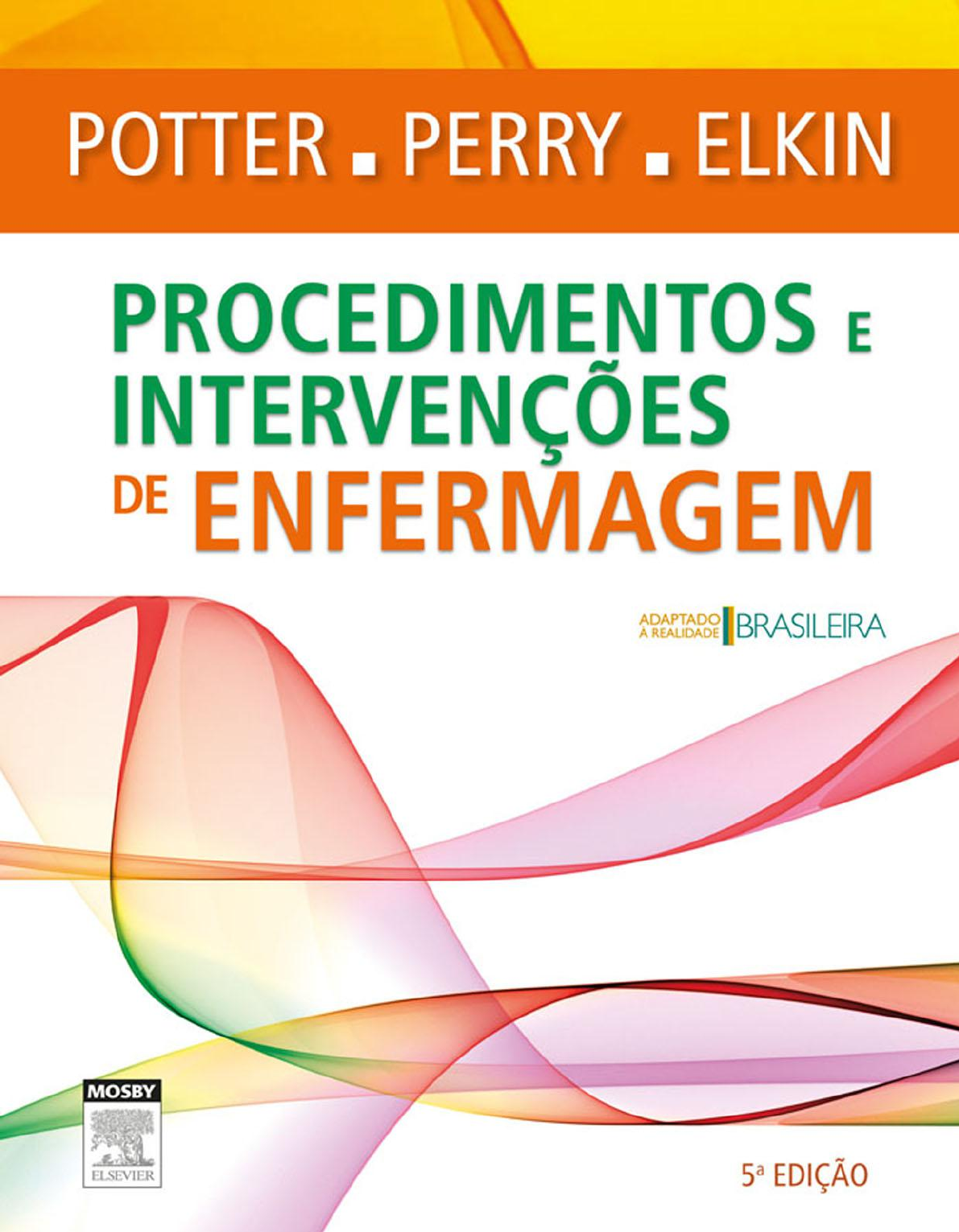 <p>PROCEDIMENTOS</p><p>E INTERVENÇÕES</p><p>DE ENFERMAGEM</p><p>5a</p><p>EDIÇÃO</p><p>Anne Griffin Perry, RN, EdD, FAAN</p><p>Professor and Associate Dean</p><p>School of Nursing</p><p>Southern Illinois University Edwardsville</p><p>Edwardsville, Illinois</p><p>Patricia A. Potter, RN, MSN, PhD, FAAN</p><p>Research Scientist</p><p>Siteman Cancer Center at Barnes-Jewish Hospital</p><p>Washington University School of Medicine</p><p>St. Louis, Missouri</p><p>Martha Keene Elkin, RN, MSN</p><p>Nursing Educator for Associate Degree Nursing</p><p>Sumner, Maine</p><p>Editora de Seção:</p><p>Wendy Ostendorf, RN, MS, EdD, CNE</p><p>Associate Professor of Nursing</p><p>Neumann University</p><p>Aston, Pennsylvania</p><p>© 2013 Elsevier Editora Ltda.</p><p>Tradução autorizada do idioma inglês da edição publicada por Mosby – um selo editorial Elsevier Inc.</p><p>Todos os direitos reservados e protegidos pela Lei 9.610 de 19/02/1998.</p><p>Nenhuma parte deste livro, sem autorização prévia por escrito da editora, poderá ser reproduzida ou transmitida sejam quais</p><p>forem os meios empregados: eletrônicos, mecânicos, fotográficos, gravação ou quaisquer outros.</p><p>ISBN: 978-85-352-6276-6</p><p>ISBN (versão eletrônica): 978-85-352-6849-2</p><p>ISBN (plataformas digitais): 978-85-352-6280-3</p><p>Copyright © 2012, 2007, 2004, 2000, 1996 by Mosby, Inc., an affiliate of Elsevier Inc.</p><p>This edition of Nursing Interventions and Clinical Skills by Anne Griffin Perry, Patricia A. Potter and Martha Keene Elkin</p><p>is published by arrangement with Mosby, Elsevier Inc.</p><p>ISBN: 978-0-323-06968-7</p><p>Capa</p><p>Mello e Mayer Design</p><p>Editoração Eletrônica</p><p>Thomson Digital</p><p>Elsevier Editora Ltda.</p><p>Conhecimento sem Fronteiras</p><p>Rua Sete de Setembro, n° 111 – 16° andar</p><p>20050-006 – Centro – Rio de Janeiro – RJ</p><p>Rua Quintana, n° 753 – 8° andar</p><p>04569-011 – Brooklin – São Paulo – SP</p><p>Serviço de Atendimento ao Cliente</p><p>0800 026 53 40</p><p>sac@elsevier.com.br</p><p>Consulte nosso catálogo completo, os últimos lançamentos e os serviços exclusivos no site www.elsevier.com.br</p><p>NOTA</p><p>Como as novas pesquisas e a experiência ampliam o nosso conhecimento, pode haver necessidade de alteração dos</p><p>métodos de pesquisa, das práticas profissionais ou do tratamento médico. Tanto médicos quanto pesquisadores devem</p><p>sempre basear-se em sua própria experiência e conhecimento para avaliar e empregar quaisquer informações, métodos,</p><p>substâncias ou experimentos descritos neste texto. Ao utilizar qualquer informação ou método, devem ser criteriosos</p><p>com relação a sua própria segurança ou a segurança de outras pessoas, incluindo aquelas sobre as quais tenham re-</p><p>sponsabilidade profissional.</p><p>Com relação a qualquer fármaco ou produto farmacêutico especificado, aconselha-se o leitor a cercar-se da mais</p><p>atual informação fornecida (i) a respeito dos procedimentos descritos, ou (ii) pelo fabricante de cada produto a ser</p><p>administrado, de modo a certificar-se sobre a dose recomendada ou a fórmula, o método e a duração da administração,</p><p>e as contraindicações. É responsabilidade do médico, com base em sua experiência pessoal e no conhecimento de seus</p><p>pacientes, determinar as posologias e o melhor tratamento para cada paciente individualmente, e adotar todas as pre-</p><p>cauções de segurança apropriadas.</p><p>Para todos os efeitos legais, nem a Editora, nem autores, nem editores, nem tradutores, nem revisores ou colabora-</p><p>dores, assumem qualquer responsabilidade por qualquer efeito danoso e/ou malefício a pessoas ou propriedades envol-</p><p>vendo responsabilidade, negligência etc. de produtos, ou advindos de qualquer uso ou emprego de quaisquer métodos,</p><p>produtos, instruções ou ideias contidos no material aqui publicado.</p><p>O Editor</p><p>CIP-BRASIL. CATALOGAÇÃO-NA-FONTE</p><p>SINDICATO NACIONAL DOS EDITORES DE LIVROS, RJ</p><p>P956</p><p>Procedimentos e intervenções de enfermagem / [organização Anne Griffin Perry, Patricia A. Potter, Martha Keene Elkin] ;</p><p>[tradução de Silvia Mariângela Spada … et al.]. - Rio de Janeiro : Elsevier, 2013.</p><p>816 p. : il. ; 28 cm</p><p>Tradução de: Nursing interventions & clinical skills, 5th ed.</p><p>Apêndice</p><p>Inclui bibliografia e índice</p><p>ISBN 978-85-352-6276-6</p><p>1. Enfermagem. I. Perry, Anne Griffin. II. Potter, Patricia Ann. III. Elkin, Martha Keene.</p><p>13-0406. CDD: 610.73</p><p>CDU: 616-083</p><p>18.01.13 22.01.13 042264</p><p>iii</p><p>R E V I S O R E S C I E N T Í F I C O S</p><p>E T R A D U T O R E S</p><p>REVISORES CIENTÍFICOS</p><p>Alexandre Gengo e Silva (Capítulo 27)</p><p>Farmacêutico com Habilitação em Farmácia Industrial</p><p>Pós-Graduado em Análises Clínicas e Toxicológicas</p><p>Ana Cristina Mancussi e Faro (Capítulos 15 a 17)</p><p>Professora Livre Docente 3 do Departamento de Enfermagem Médico-Cirúrgica da Escola de Enfermagem da USP</p><p>Líder do Grupo de Pesquisa Reabilitação, Funcionalidade e Educação na Saúde (CNPq)</p><p>Áreas de Ensino e Pesquisa Reabilitação em Enfermagem, na lesão medular e Laboratório de habilidades e simulação</p><p>Carla Roberta Monteiro</p><p>Bacharel em Enfermagem (2004)</p><p>Especialista em Enfermagem ortopédica e traumatológica (2005)</p><p>Mestre em Enfermagem (2007)</p><p>Doutoranda em Ciências pela Escola de Enfermagem da USP</p><p>Membro do Grupo de Pesquisa Reabilitação</p><p>Funcionalidade e Educação na Saúde (CNPq)</p><p>Consuelo Garcia Correa (Capítulos 8 a 11)</p><p>Enfermeira e Docente de Enfermagem</p><p>Especialista em Cardiologia (InCor- HCFMUSP/EEUSP)</p><p>Mestre em Fundamentos de Enfermagem – Escola de Enfermagem da USP (EEUSP/SP)</p><p>Doutora em Enfermagem – Escola de Enfermagem da USP (EEUSP/SP)</p><p>Diana Lima Villela (Capí