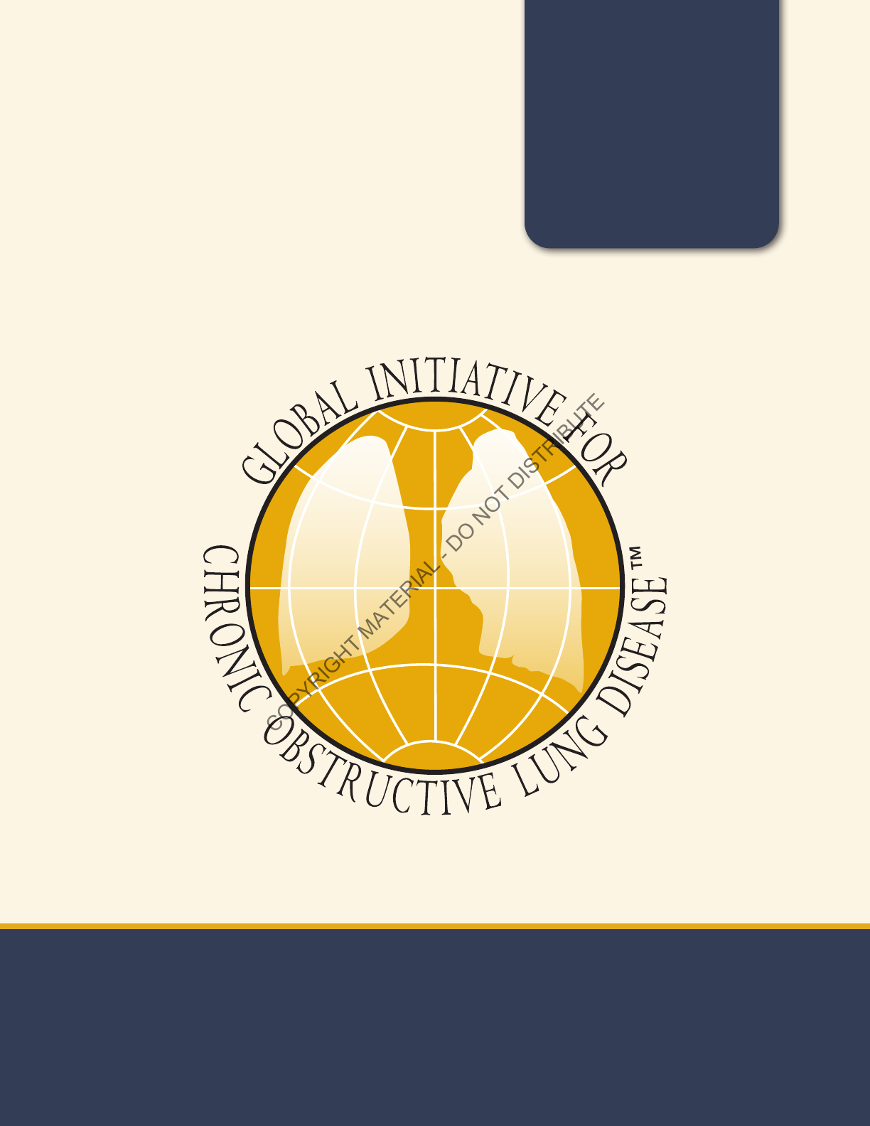 2024 REPORT Global Strategy for the Diagnosis, Management, and Prevention of Chronic Obstructive Pulmonary Disease Global Initiative for Chronic Obstructive Lung Disease Global Strategy for the Diagnosis, Management, and Prevention of Chronic Obstructive Pulmonary Disease COPYRIG HT M ATERIAL - D O N OT D ISTRIBUTE Be sure to read and understand the paragraph entitled Important Purpose & Liability Disclaimer i GLOBAL INITIATIVE FOR CHRONIC OBSTRUCTIVE LUNG DISEASE GLOBAL STRATEGY FOR THE DIAGNOSIS, MANAGEMENT, AND PREVENTION OF CHRONIC OBSTRUCTIVE PULMONARY DISEASE (2024 REPORT) © 2023, 2024 Global Initiative for Chronic Obstructive Lung Disease, Inc. Important Purpose & Liability Disclaimer The information provided by Global Initiative for Chronic Obstructive Lung Disease (“GOLD”) for inclusion in its materials, website, and applications (including but not limited to web based or digital applications) is provided for the convenience of users to help them understand the conclusions of GOLD as of the date of the specific information’s approval by GOLD. That information’s relevance to, and/or application to, a particular patient or case must be carefully assessed, evaluated, and determined by a qualified health care professional treating that patient or case. Users need to be aware of the fact that only the English language version of GOLD’s information has been reviewed and approved by GOLD, and that users must ensure that they have the most current version of GOLD’s information since GOLD’s information may have been updated or changed after its original release. Especially in light of the above, GOLD expressly disclaims any liability arising out of any use or misuse of the information it provides. COPYRIG HT M ATERIAL - D O N OT D ISTRIBUTE Be sure to read and understand the paragraph entitled Important Purpose & Liability Disclaimer ii GOLD BOARD OF DIRECTORS (2023) GOLD SCIENCE COMMITTEE* (2023) Alvar Agusti, MD, Chair Respiratory Institute Hospital Clinic, IDIBAPS Univ. Barcelona and Ciberes Barcelona, Spain Bartolome R. Celli, MD Harvard Medical School Boston, Massachusetts, USA Gerard Criner, MD Temple University School of Medicine Philadelphia, Pennsylvania, USA David Halpin, MD University of Exeter Medical School College of Medicine and Health University of Exeter, Exeter Devon, UK M. Victorina López Varela, MD – Retired, 2023 Universidad de la República Hospital Maciel Montevideo, Uruguay Maria Montes de Oca, MD Hospital Universitario de Caracas Universidad Central de Venezuela Centro Médico de Caracas Caracas, Venezuela Obianuju Ozoh, MD University of Lagos Lagos, Nigeria Sundeep Salvi, MD Pulmocare Research and Education (PURE) Foundation Pune, India Claus Vogelmeier, MD University of Marburg Marburg, Germany Jinping Zheng, MD Guangzhou Institute of Respiratory Health, First Affiliated Hospital of Guangzhou Medical University, Guangzhou, China Claus Vogelmeier, MD, Chair University of Marburg Marburg, Germany Alvar Agusti, MD Respiratory Institute Hospital Clinic, IDIBAPS Univ. Barcelona and Ciberes Barcelona, Spain Antonio Anzueto, MD South Texas Veterans Health Care System, University of Texas, Health San Antonio, Texas, USA Peter Barnes, DM, FRS – Retired, 2023 National Heart & Lung Institute Imperial College London, United Kingdom Jean Bourbeau, MD McGill University Health Centre McGill University Montreal, Canada Gerard Criner, MD Temple University School of Medicine Philadelphia, Pennsylvania, USA David Halpin, MD University of Exeter Medical School College of Medicine and Health University of Exeter, Exeter Devon, UK MeiLan K. Han, MD MS University of Michigan Ann Arbor, MI, USA Fernando J. Martinez, MD MS Weill Cornell Medical Center/ New York-Presbyterian Hospital New York, NY, USA Maria Montes de Oca, MD Hospital Universitario de Caracas Universidad Central de Venezuela Centro Médico de Caracas Caracas, Venezuela Obianuju Ozoh, MD University of Lagos Lagos, Nigeria Alberto Papi, MD University of Ferrara Ferrara, Italy Ian Pavord, DM FMedSci Respiratory Medicine Unit and Oxford Respiratory NIHR Biomedical Research Centre, Nuffield Department of Medicine University of Oxford Oxford, UK Nicolas Roche, MD Pneumologie, Hôpital Cochin AP-HP.Centre – Université Paris Cité UMR 1016 Institut Cochin Paris, France Don D. Sin, MD St. Paul’s Hospital University of British Columbia Vancouver, Canada Dave Singh, MD University of Manchester Manchester, UK Robert Stockley, MD DSc University Hospital Birmingham, UK M. Victorina López Varela, MD– Retired, 2023 Universidad de la República Hospital Maciel Montevideo, Uruguay Jadwiga A. Wedzicha, MD National Heart & Lung Institute Imperial College London London, UK Jinping Zheng, MD Guangzhou Institute of Respiratory Health, First Affiliated Hospital of Guangzhou Medical University Guangzhou, China GOLD EXECUTIVE DIRECTOR EDITORIAL ASSISTANCE ACKNOWLEDGEMENTS Katie Langefeld, BS Illinois, USA Ruth Hadfield, PhD Macquarie University AIHI Sydney, Australia Contributor: Anna Podolanczuk, MD Assistant Professor of Medicine Weill Cornell Medical College Graphic Design: Imbue Creative * Disclosure forms for GOLD Committees are posted on the GOLD Website, www.goldcopd.org COPYRIG HT M ATERIAL - D O N OT D ISTRIBUTE http://www.goldcopd.org/ Be sure to read and understand the paragraph entitled Important Purpose & Liability Disclaimer iii GLOBAL STRATEGY FOR THE DIAGNOSIS, MANAGEMENT, AND PREVENTION OF COPD (2024) GOLD ASSEMBLY The GOLD National Leaders are individuals from around the world with an interest in promoting the goals of GOLD within their home country. The group meets periodically to share information about programs of health education, COPD management, and prevention. ARGENTINA Andrés Echazarreta, MD, PhD Head of Pneumonology Service San Juan de Dios de La Plata, Argentina BANGLADESH Dr Kazi S. Bennoor Dhaka, Bangladesh Prof Md Mostafizur Rahman Dhaka, Bangladesh BELGIUM Prof Wim Janssens Leuven, Belg