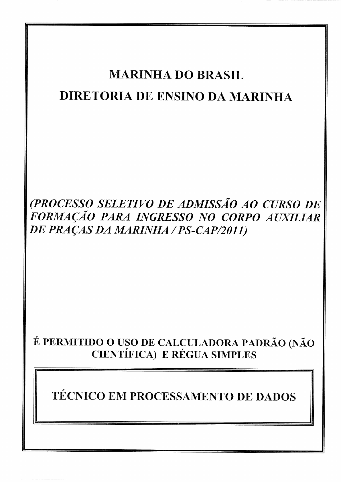 <p>MARINHA DO BRASIL DIRETORIA DE ENSINO DA MARINHA (PROCESSO SELETIVO DE ADMISSÃO AO CURSO DE FORMAÇÃO PARA INGRESSO NO CORPO AUXILIAR DE PRAÇAS DA MARINHA / PS-CAP/2011) E PERMITIDO O USO DE CALCULADORA PADRÃO (NÃO CIENTÍFICA) E RÉGUA SIMPLES TÉCNICO EM PROCESSAMENTO DE DADOS</p><p>1) número de ciclos de clock gastos na execução de um conjun- to de operações é conhecido como: (A) barramento. (B) comprimento do caminho. (C) somador binário. (D) unidade de busca de instruções. (E) máquina de estados finitos. 2) Em relação a Microinstruções, assinale a opção INCORRETA. (A) O sequenciador é responsável pela execução de todos os passos necessários à execução de uma única instrução. (B) A memória de controle guarda microinstruções. (C) Os microprogramas precisam de menos flexibilidade (pois as sequências de microinstruções tendem a ser muito curtas) (D) O MPC (MicroProgram Counter) é registrador de endereço da memória de controle. (E) MIR (MicroInstruction Register) é registrador de da- dos da memória de controle. 3) Como se denomina programa malicioso que pode capturar e armazenar as teclas digitadas pelo usuário? (A) KEYLOGGER (B) Virus (C) PHISHING (D) Cavalo de Troia (E) WORM 4) Que programa malicioso tem como característica não infectar outros arquivos, nem propagar cópias de si mesmo automatica- mente e necessita ser explicitamente executado? (A) Vírus. (B) WORM. (C) PHISHING. (D) Cavalo de Troia. (E) SPAM. Prova : Amarela Concurso : PS-CAP/11 Profissão : TÉCNICO EM PROCESSAMENTO DE DADOS 1/16</p><p>5) Analise código em JAVA a seguir. package prova; public class Main { public static void main (String [] { int total = int = new int [ 10 ] ; for (int i=0; { = i+i; } for (int i=0; i<c.length;i++) { total = total + } } Sabendo-se que código acima foi escrito e executado utilizando IDE NetBeans 6.0.1, assinale a opção correta referente ao valor da variável total que será impresso, considerando array aumentado para 13. (A) 153 (B) 154 (C) 155 (D) 156 (E) 157 6) A segurança em redes de computadores utiliza criptografia para garantir uma comunicação segura. Qual requisito básico de segurança NÃO é garantido pela criptografia? (A) Confidencialidade dos dados. (B) Integridade dos dados (C) Não repúdio. (D) Disponibilidade dos dados. (E) Autenticidade dos dados. Prova : Amarela Concurso : PS-CAP/11 Profissão : TÉCNICO EM PROCESSAMENTO DE DADOS 2/16</p><p>7) Um ataque de negação de serviço viola qual requisito de se- gurança? (A) Integridade. (B) Disponibilidade. (C) Autenticação. (D) Confidencialidade. (E) Autorização. 8) Assinale a opção que NÃO se aplica à tarefa de uma interface ou controlador de E/S. (A) Realizar a comunicação com a UCP. (B) Servir de memória auxiliar para trânsito das informa- ções entre os componentes (buffer de dados) (C) Controlar e sincronizar fluxo de dados entre a UCP/MP e periférico. (D) Buscar os dados onde estiverem armazenados, para trazê- los até a UCP. (E) Realizar algum tipo de detecção e correção de erros du- rante as transmissões. 9) Um sistema cuja função é detectar atividades maliciosas ou anômalas é chamado de: (A) FIREWALL. (B) IDS. (C) PROXY. (D) Antispam. (E) Concentrador de log. 10) Qual a diferença entre um vírus e um WORM? (A) O vírus se propaga automaticamente através de redes, en- viando cópias de si mesmo de computador para computador. (B) vírus se propaga explorando vulnerabilidades existen- tes nos softwares instalados em computadores. (C) WORM se propaga inserindo cópias de si mesmo e se tor- nando parte de outros programas. (D) O WORM depende da execução do programa ou arquivo hospe- deiro para que possa se tornar ativo. (E) O WORM não embute cópias de si mesmo em outros progra- mas. Prova : Amarela Concurso : PS-CAP/11 Profissão : TÉCNICO EM PROCESSAMENTO DE DADOS 3/16</p><p>11) Analise tadas as afirmativas abaixo em relação a linguagens orien- a objeto. I Um programa em execução em uma linguagem orientada a objeto pode ser descrito como uma simulação de si pelas mensagens. leção de computadores (objetos) que se comunicam uma entre II - Um objeto é uma abstração de um computador processamento para capacidade deste último armazenar dados e oferecer pelo fato de Objetos podem enviar e receber mensagens uns para os outros, eles NÃO podem se comunicar. IV - A essência da programação orientada a objeto é blema problemas, identificando objetos do mundo real resolver do pro- e seu processamento necessário. Assinale a opção correta. (A) Apenas a afirmativa IV é verdadeira. (B) Apenas as afirmativas I e IV são verdadeiras. (D) Apenas (C) Apenas as afirmativas I, III e IV são verdadeiras. (E) Apenas as a afirmativa afirmativas II I, é II verdadeira. e IV são verdadeiras. 12) Como é denominado ataque onde alguém faz uso da abusando da ingenuidade ou confiança do usuário, persuasão, intuito de obter informações para ter acesso não autorizado? no (A) Engenharia Social. (B) Negação de Serviço. (C) ARP (D) DNS (E) 13) Ao converter número 457, que se encontra na base 9, para a base 10, qual número será encontrado? (A) 23. (B) 73. (C) 376. (D) 677. (E) 3964. Prova : Amarela Profissão : TÉCNICO EM PROCESSAMENTO DE DADOS Concurso : PS-CAP/11 4/16</p><p>14) Segundo HARRY FARRER (1999), um algoritmo é considerado com- pleto se os seus comandos forem de entendimento do seu des- tinatário. Em um algoritmo, um comando que não for do enten- dimento do destinatário terá que ser desdobrado. Esta defi- nição é relativa a que técnica de construção de algoritmos? (A) Programação Modular. (B) Refinamentos Sucessivos. (C) Processos Escalares. (D) Refinamentos Bottom-Up. (E) Refinamentos Side-by-Side. 15) Assinale a opção que não apresenta um exemplo de Linguagem de Programação. (A) Delphi. (B) De Máquina. (C) Assembly. (D) Windows XP. (E) Visual Basic. 16) Que protocolo fornece criptografia dos dados e 